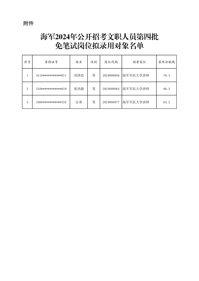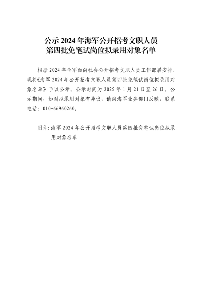 原文標(biāo)題:公示2024年海軍公開(kāi)招考文職人員 第四批免筆試崗位擬錄用對(duì)象名單