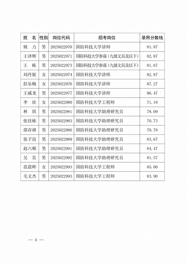 原文標(biāo)題:公示國防科技大學(xué)2025年軍隊(duì)文職人員公開招考免筆試直接面試崗位擬錄用對(duì)象名單