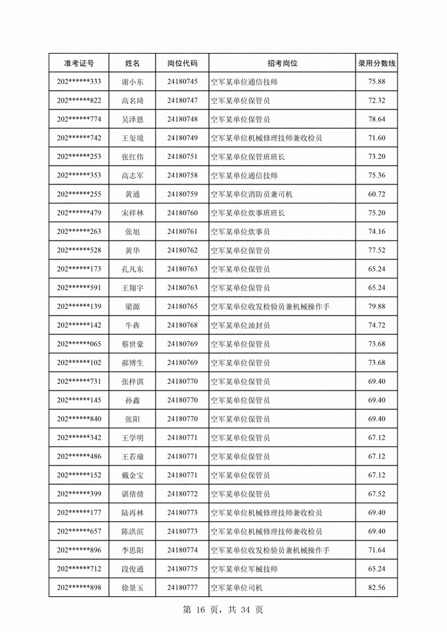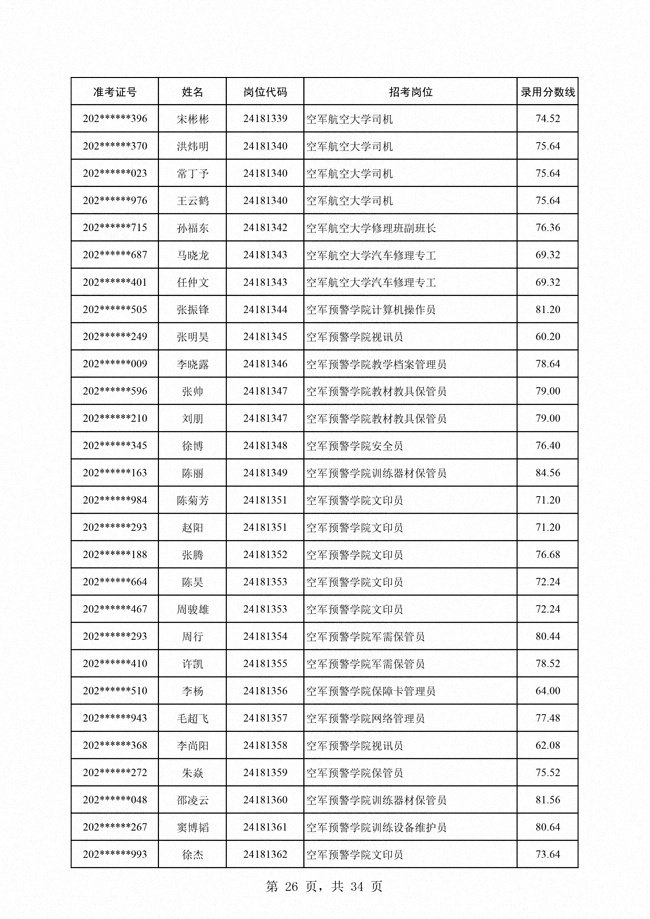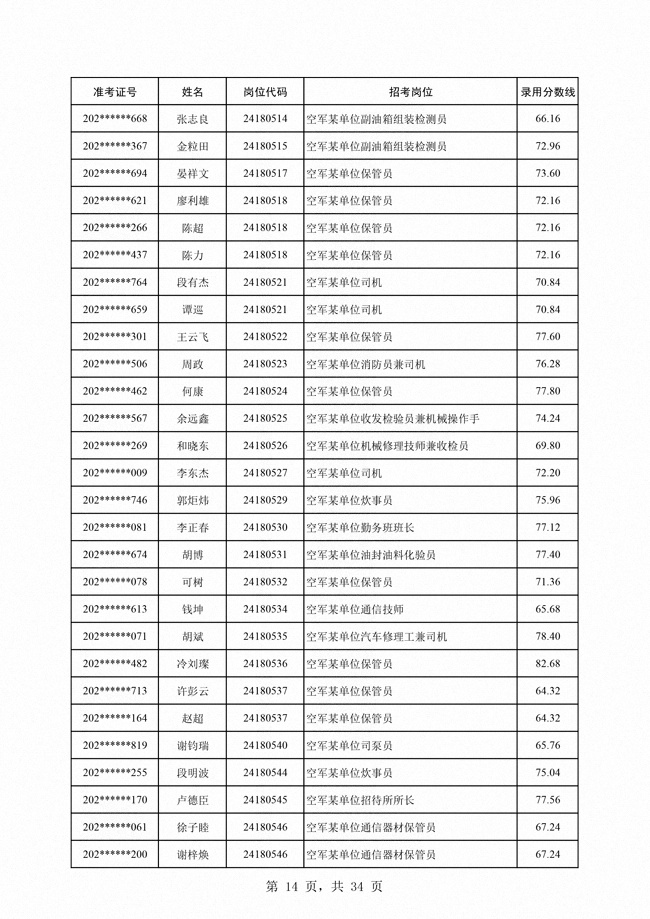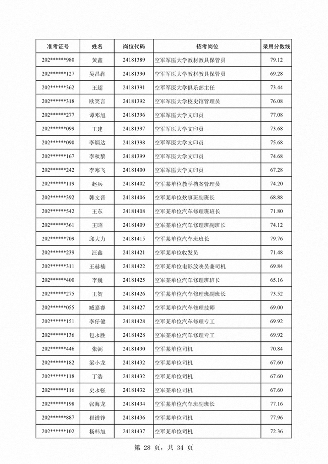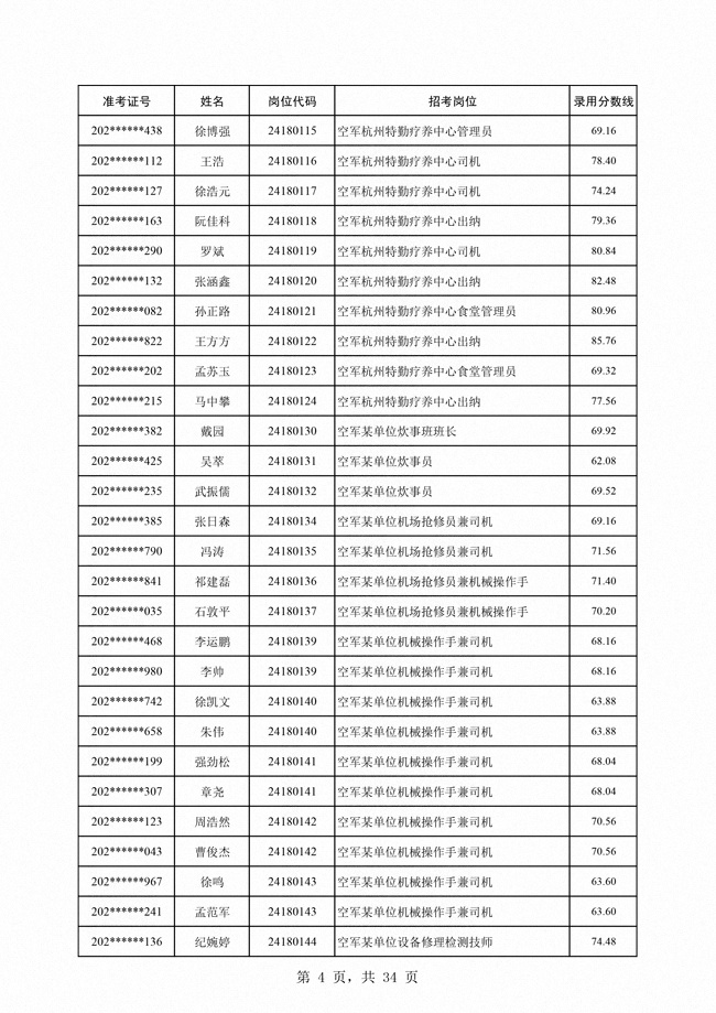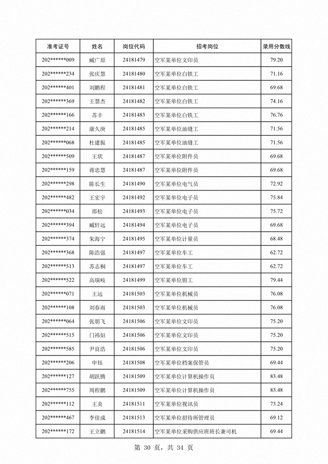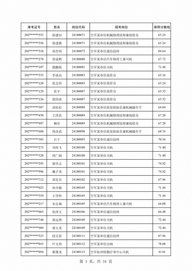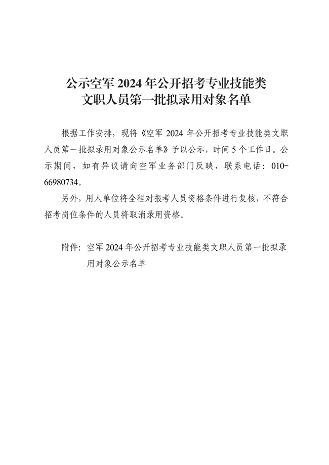 原文標(biāo)題:公示空軍2024年公開招考專業(yè)技能類 文職人員第一批擬錄用對象名單