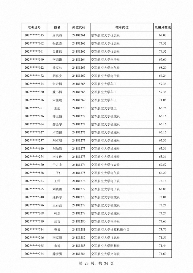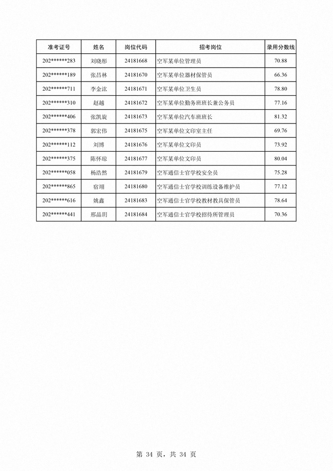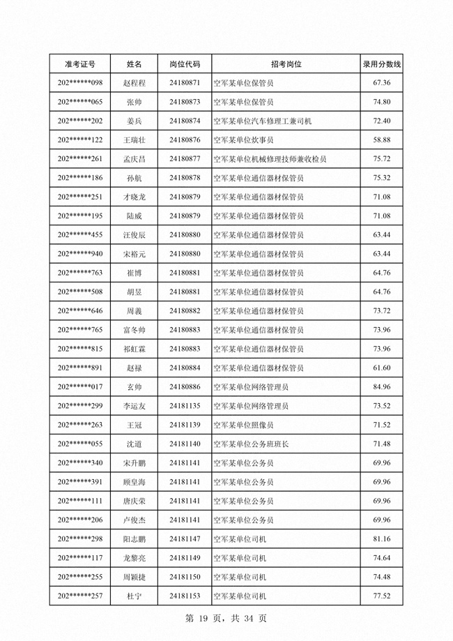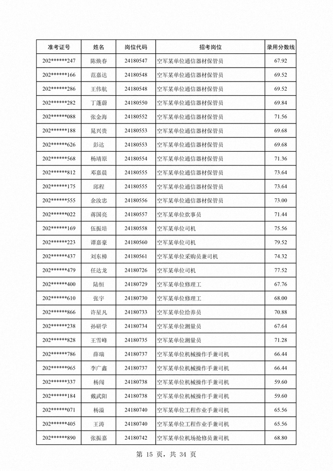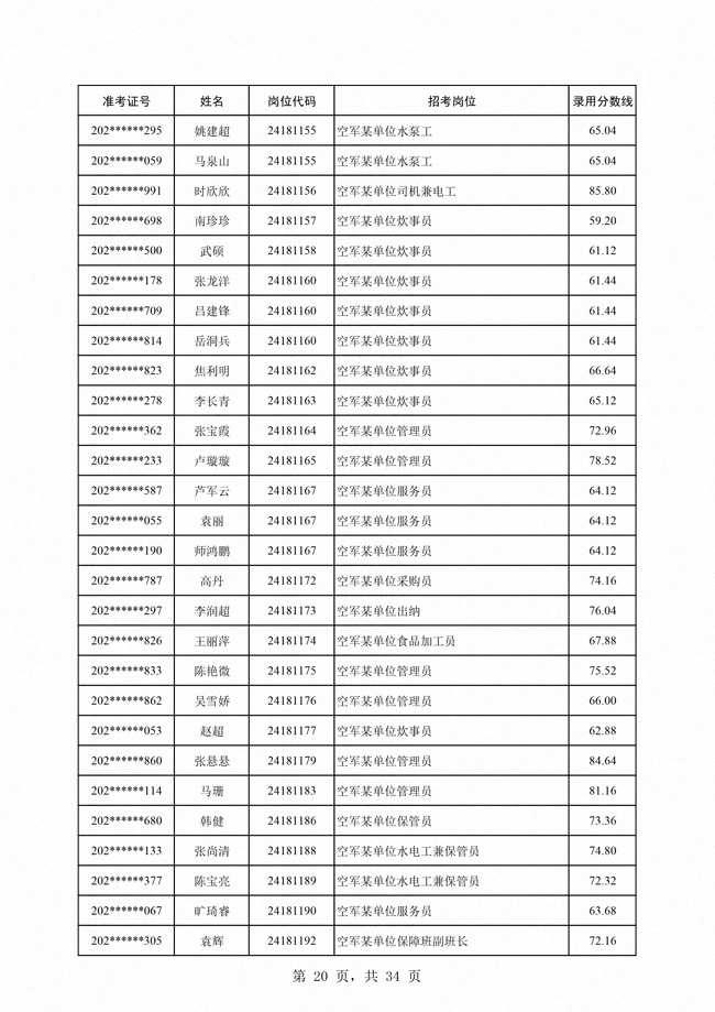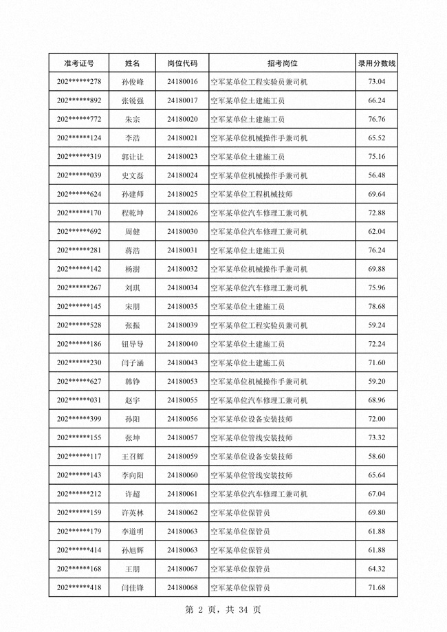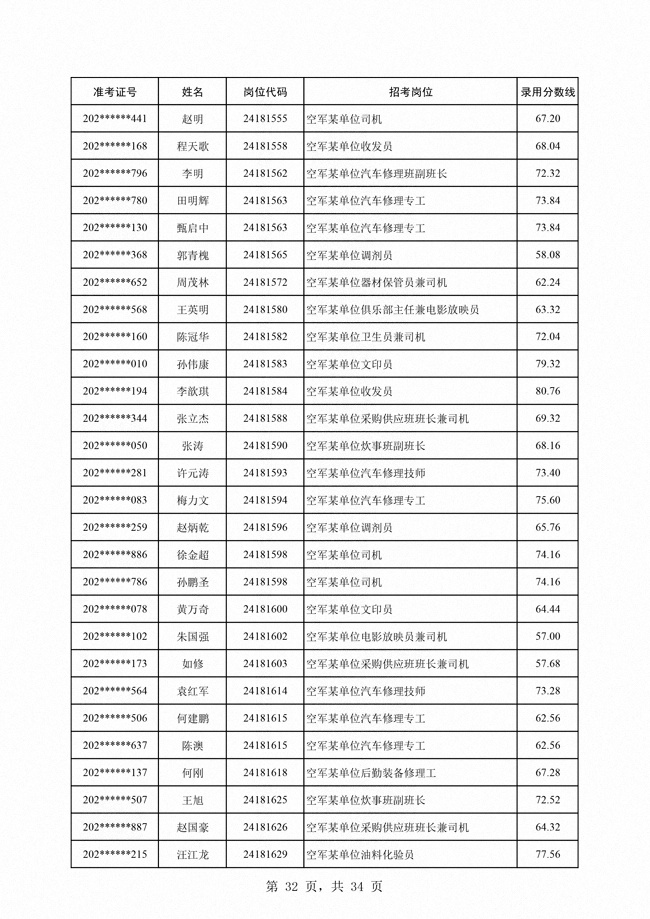 原文標(biāo)題:公示空軍2024年公開招考專業(yè)技能類 文職人員第一批擬錄用對象名單