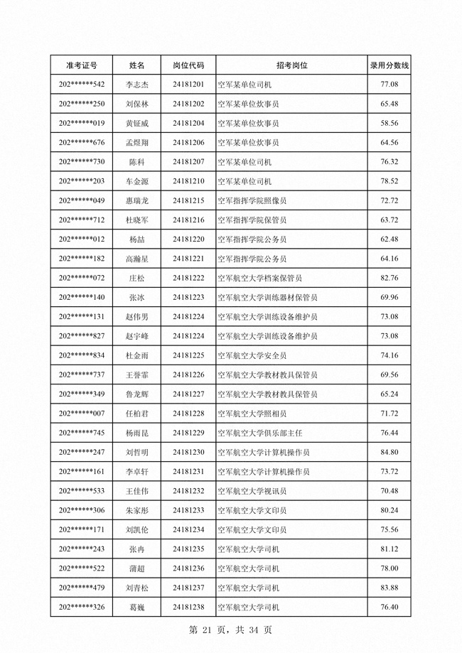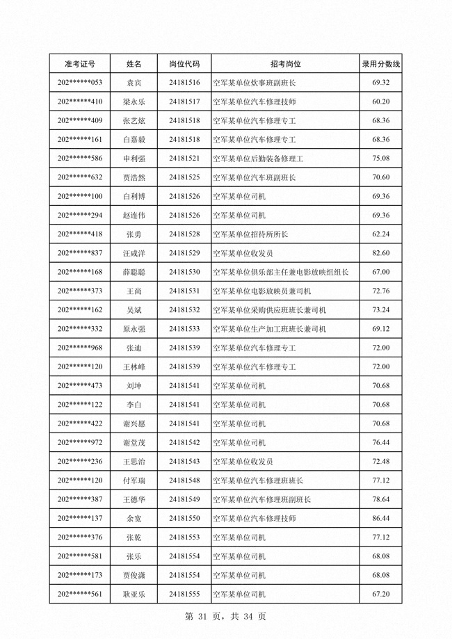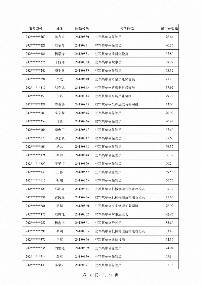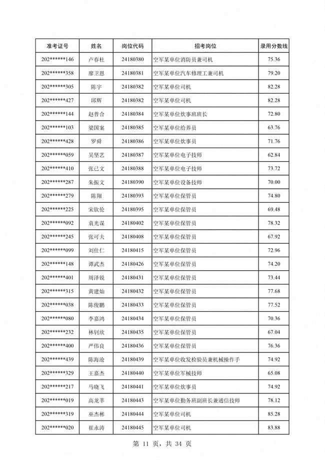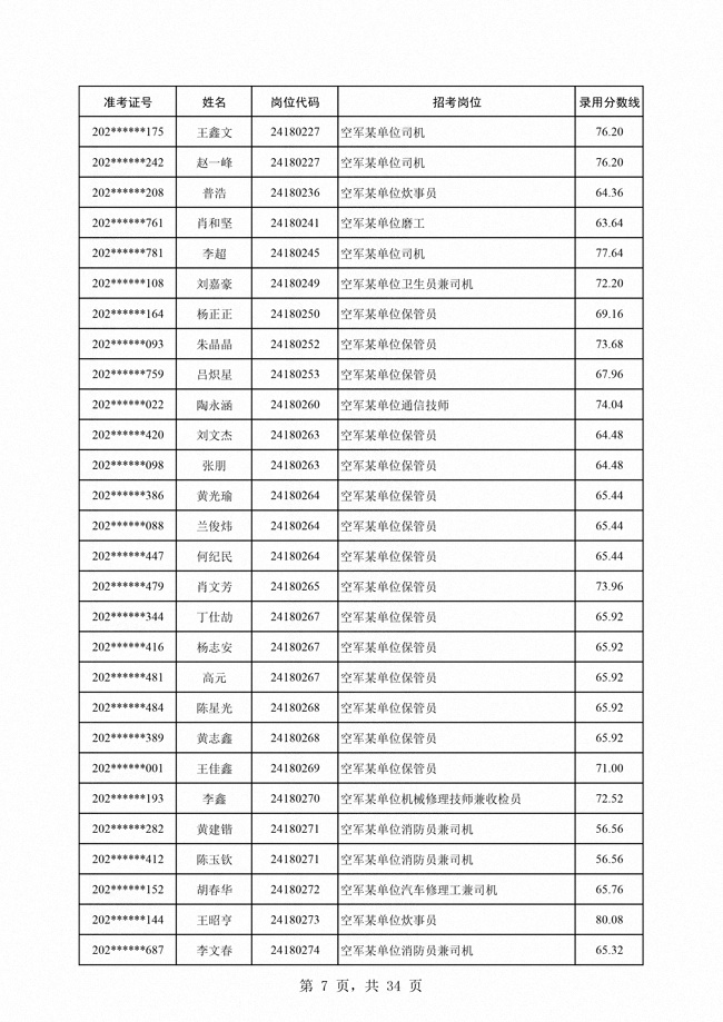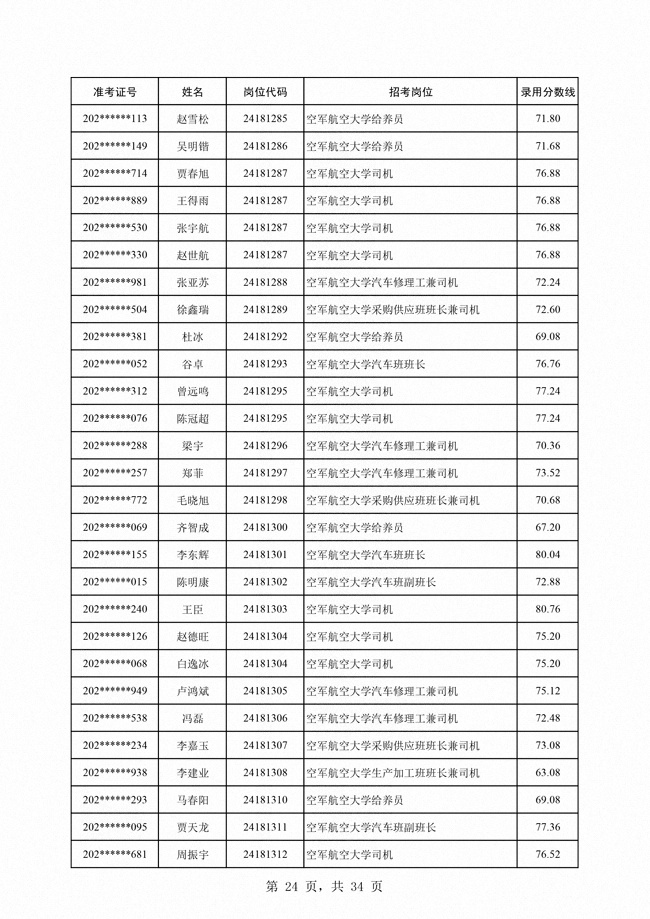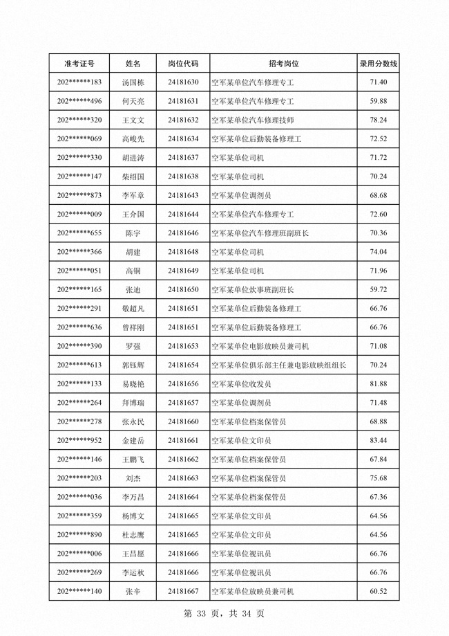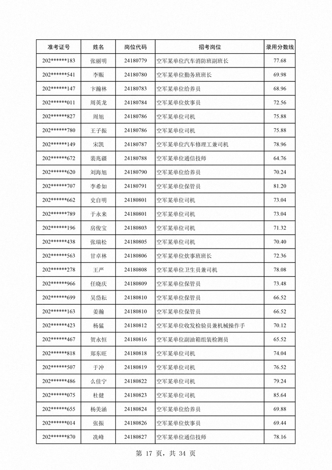 原文標(biāo)題:公示空軍2024年公開招考專業(yè)技能類 文職人員第一批擬錄用對象名單