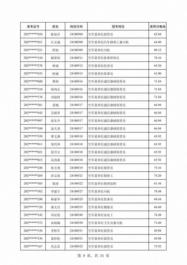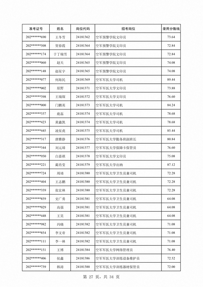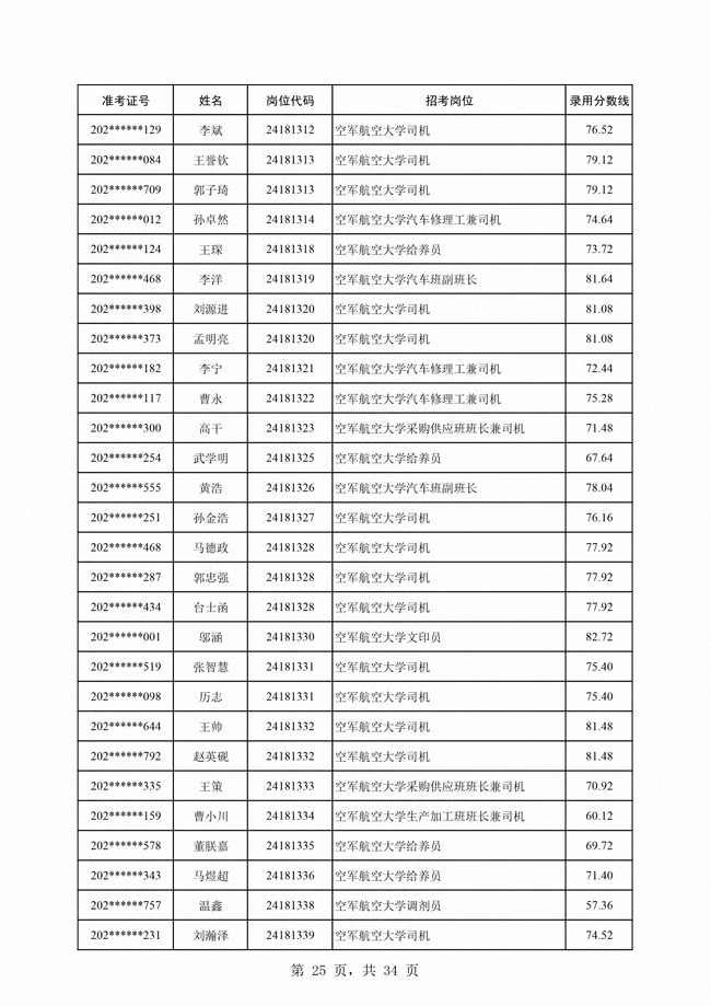 2025年武裝部文職人員擬錄用名單(含上岸分?jǐn)?shù)線) 2025-10-09