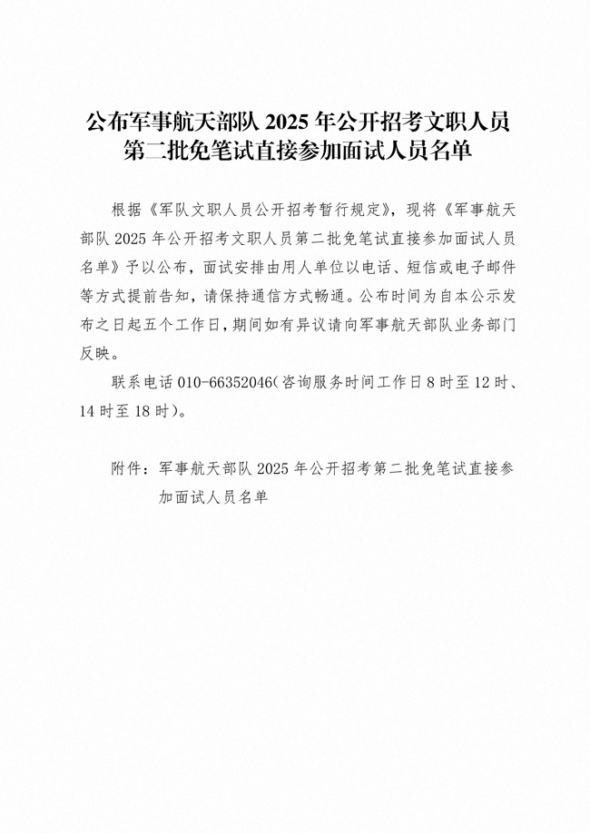 原文標(biāo)題:公布軍事航天部隊(duì)2025年公開招考文職人員第二批免筆試直接參加面試人員名單
