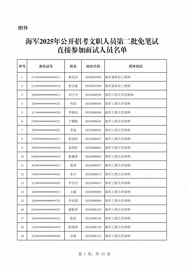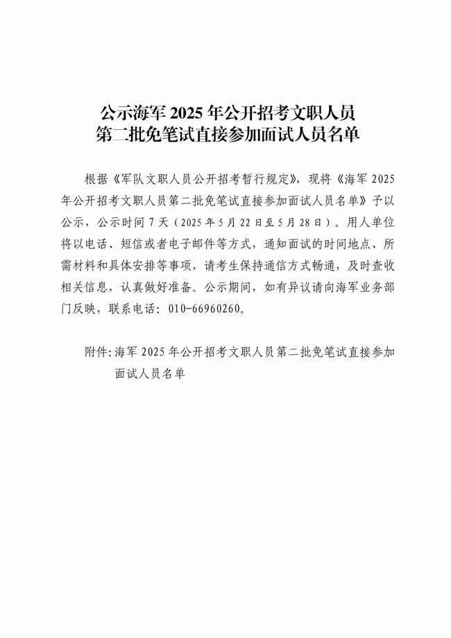原文標(biāo)題:公示海軍2025年公開招考文職人員第二批免筆試直接參加面試人員名單
