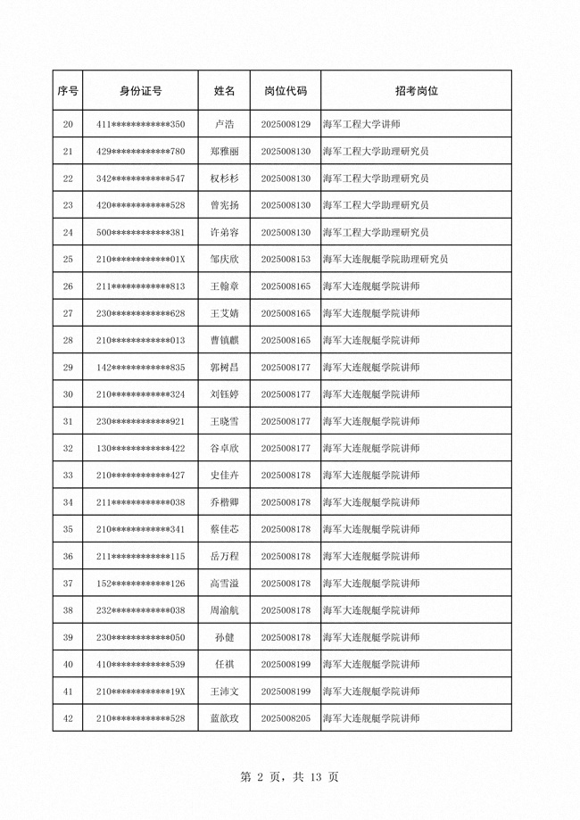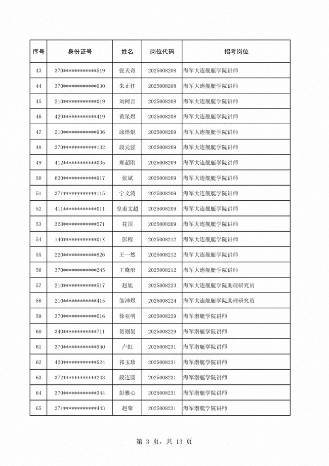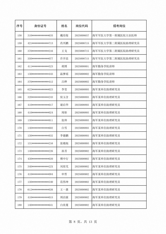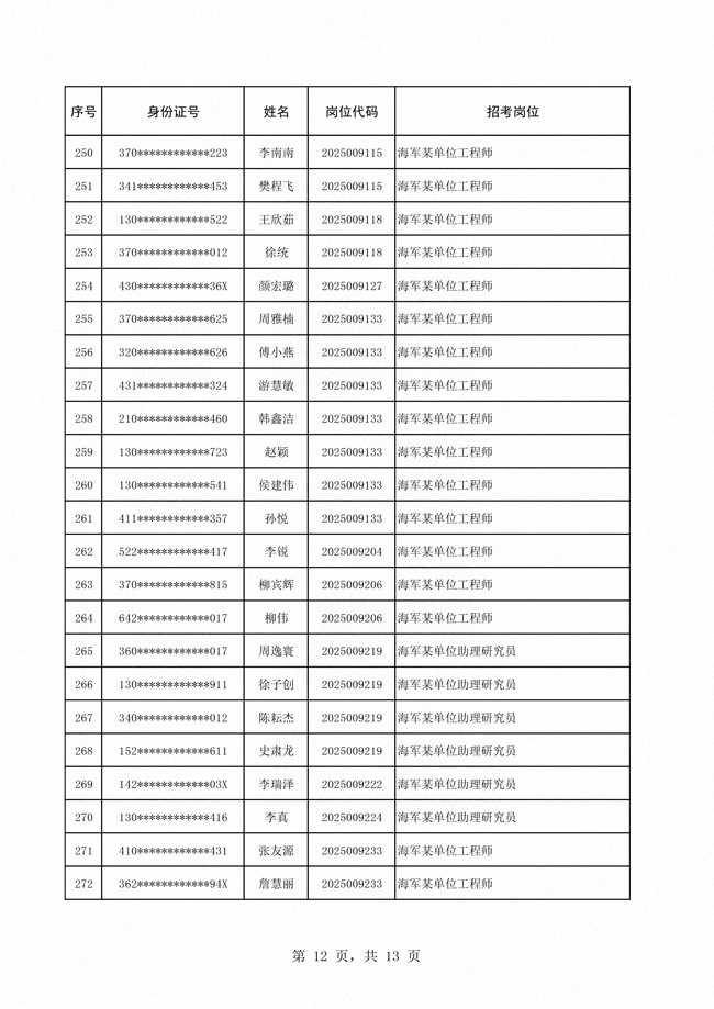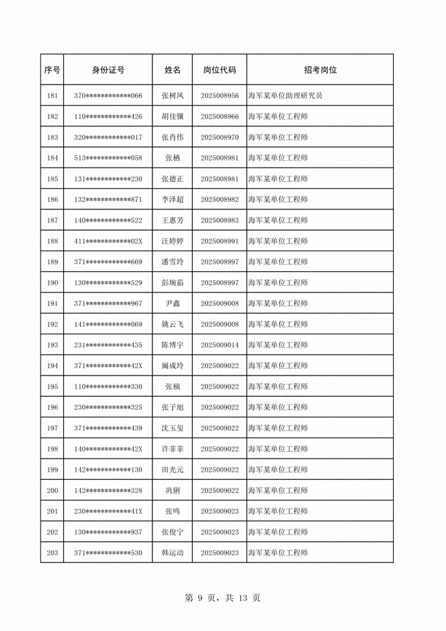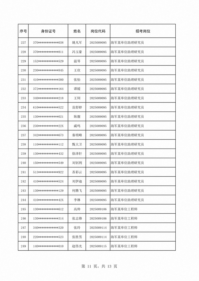 2025年武裝部文職人員擬錄用名單(含上岸分?jǐn)?shù)線) 2025-10-09