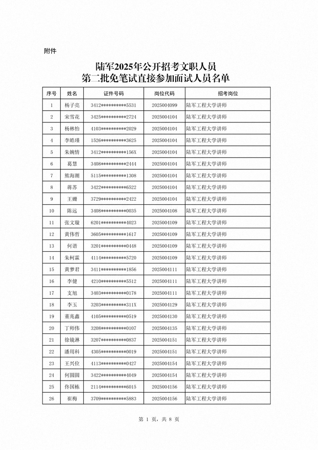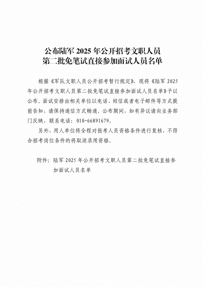原文標(biāo)題:公布陸軍2025年公開招考文職人員第二批免筆試直接參加面試人員名單