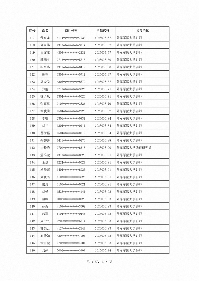 2025年武裝部文職人員擬錄用名單(含上岸分數(shù)線) 2025-10-09