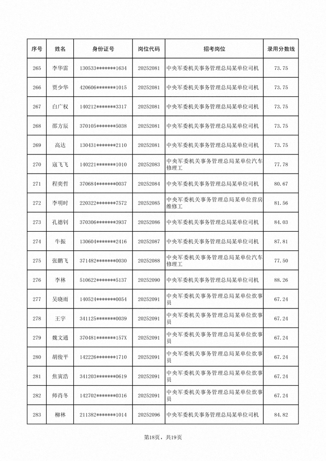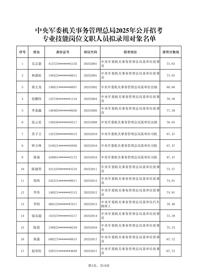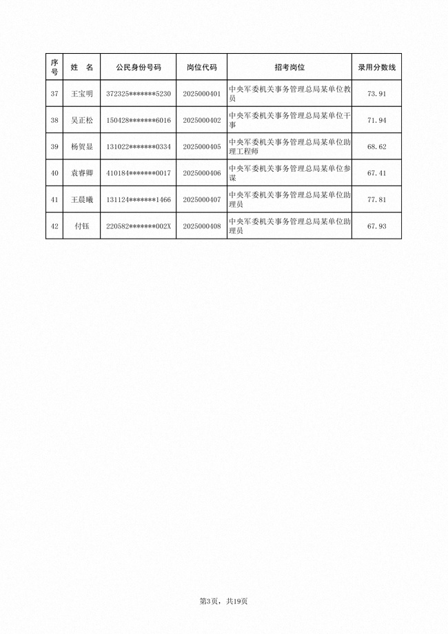 原文標(biāo)題:公示中央軍委機(jī)關(guān)事務(wù)管理總局2025年公開招考文職人員擬錄用對(duì)象名單