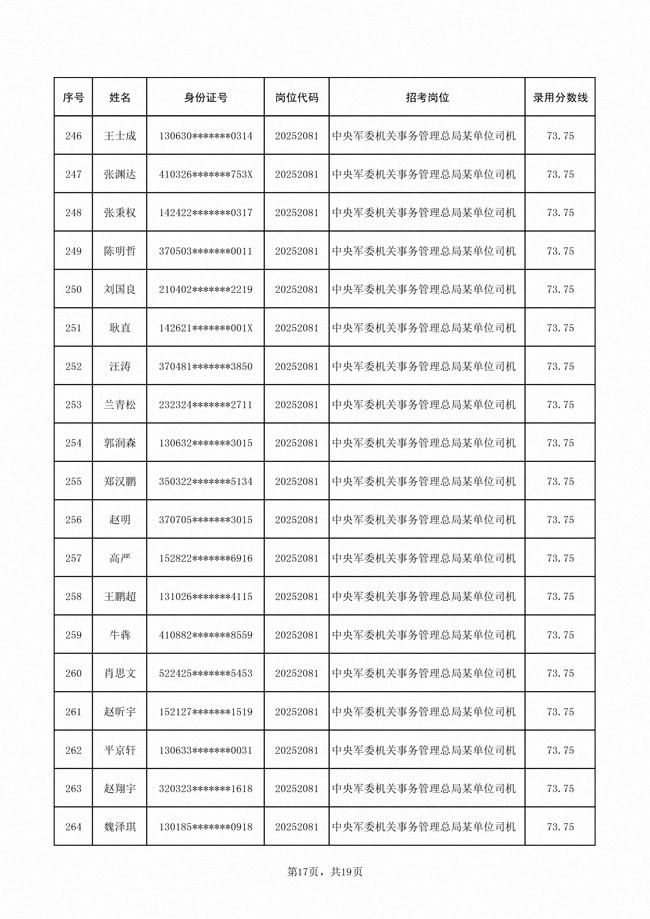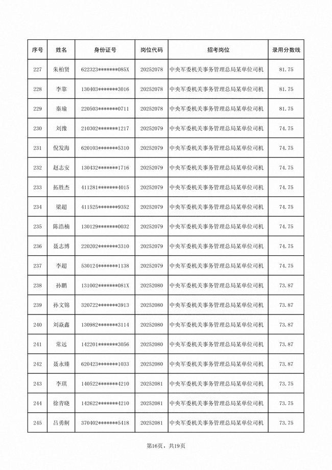 2025年武裝部文職人員擬錄用名單(含上岸分?jǐn)?shù)線) 2025-10-09