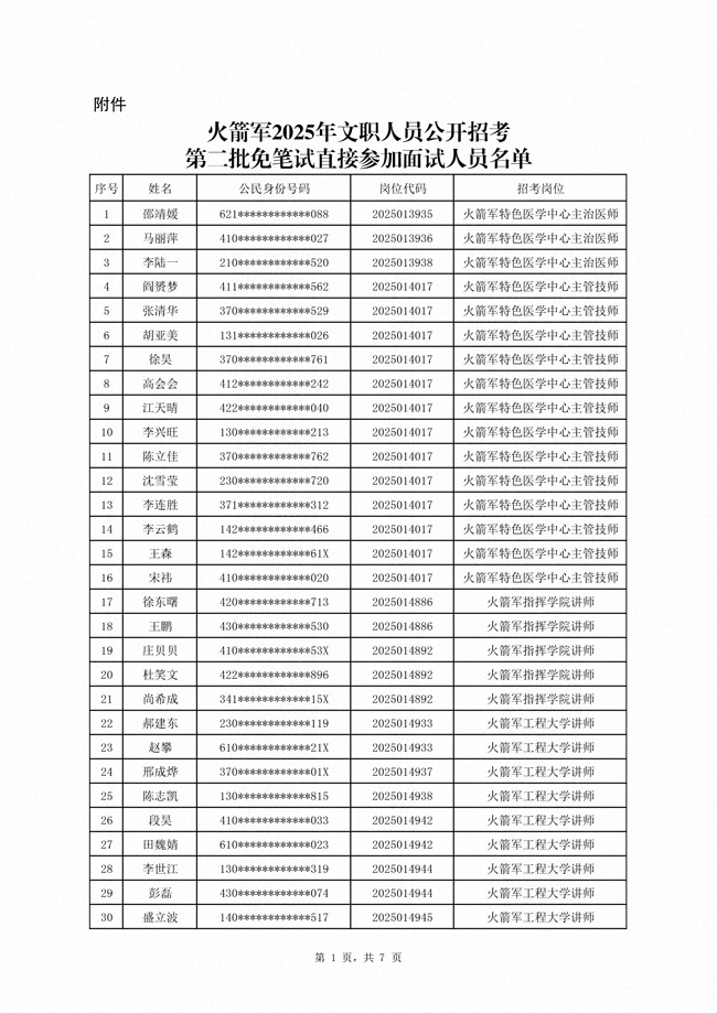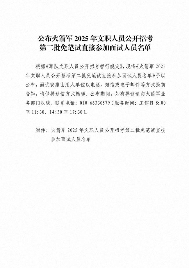 原文標(biāo)題:公布火箭軍2025年文職人員公開招考第二批免筆試直接參加面試人員名單