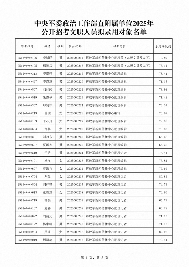原文標(biāo)題:公示中央軍委政治工作部直附屬單位2025年面向社會(huì)公開招考文職人員擬錄用對(duì)象名單