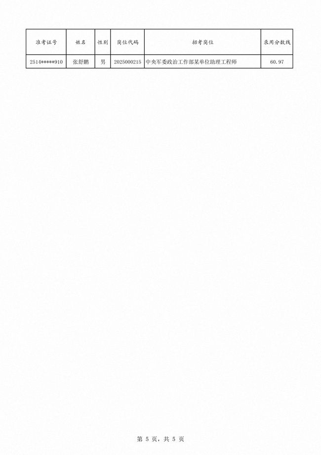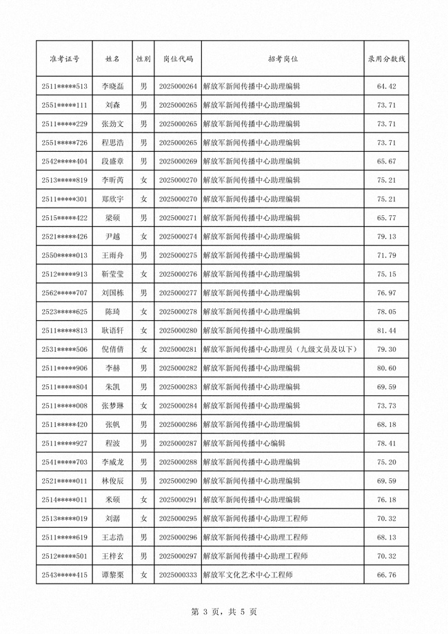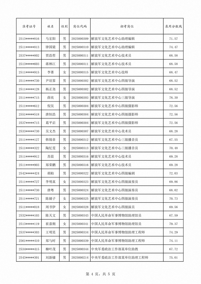 2025年武裝部文職人員擬錄用名單(含上岸分?jǐn)?shù)線) 2025-10-09
