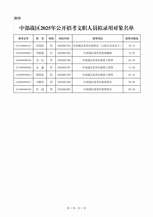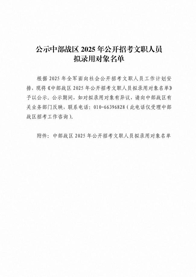 原文標(biāo)題:公示中部戰(zhàn)區(qū)2025年公開(kāi)招考文職人員擬錄用對(duì)象名單