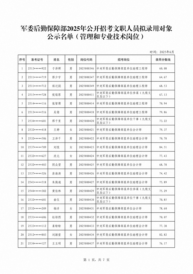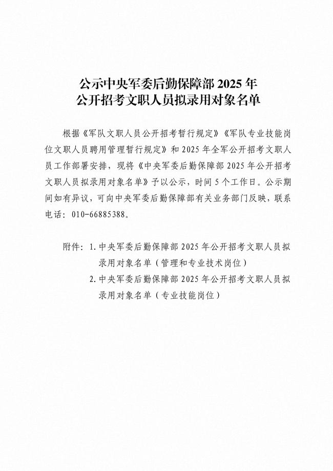 原文標(biāo)題:公示中央軍委后勤保障部2025年公開招考文職人員擬錄用對象名單