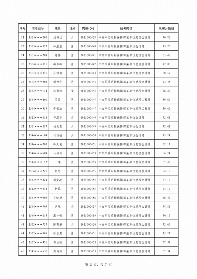 2025年武裝部文職人員擬錄用名單(含上岸分?jǐn)?shù)線) 2025-10-09
