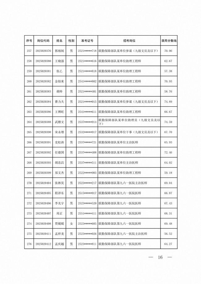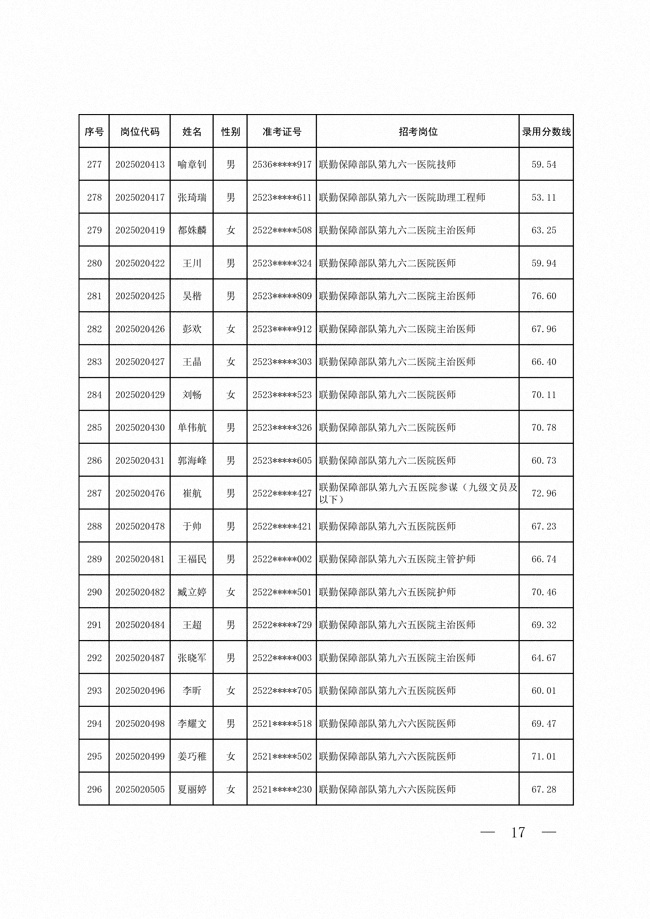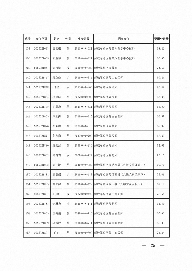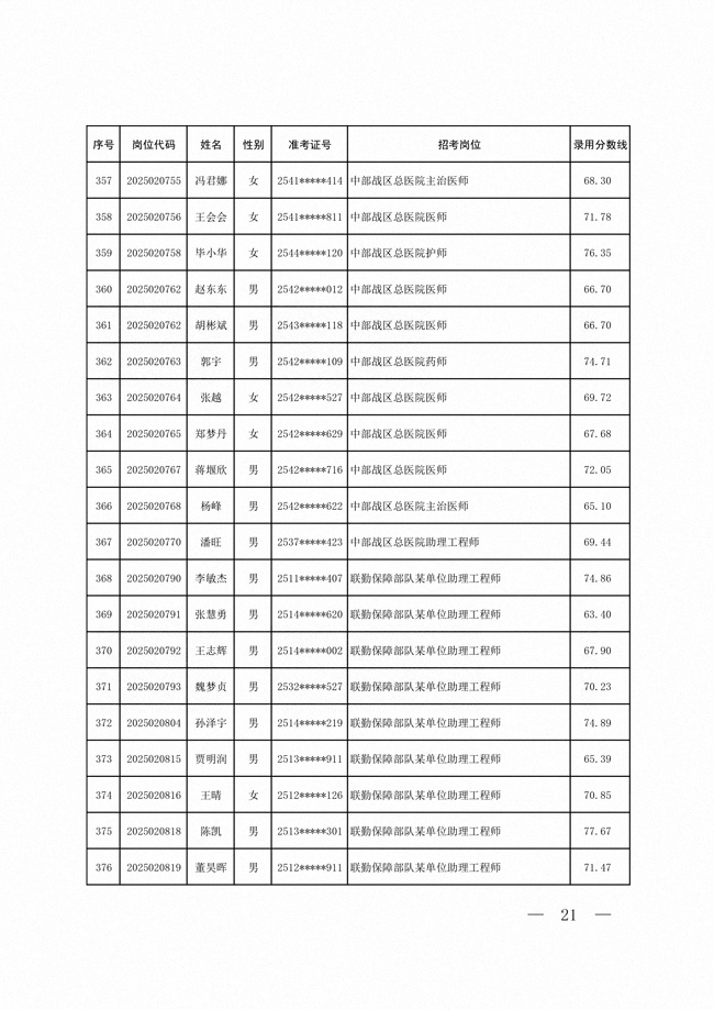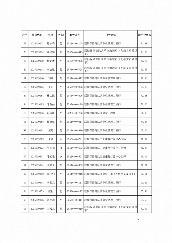 2025年武裝部文職人員擬錄用名單(含上岸分?jǐn)?shù)線) 2025-10-09