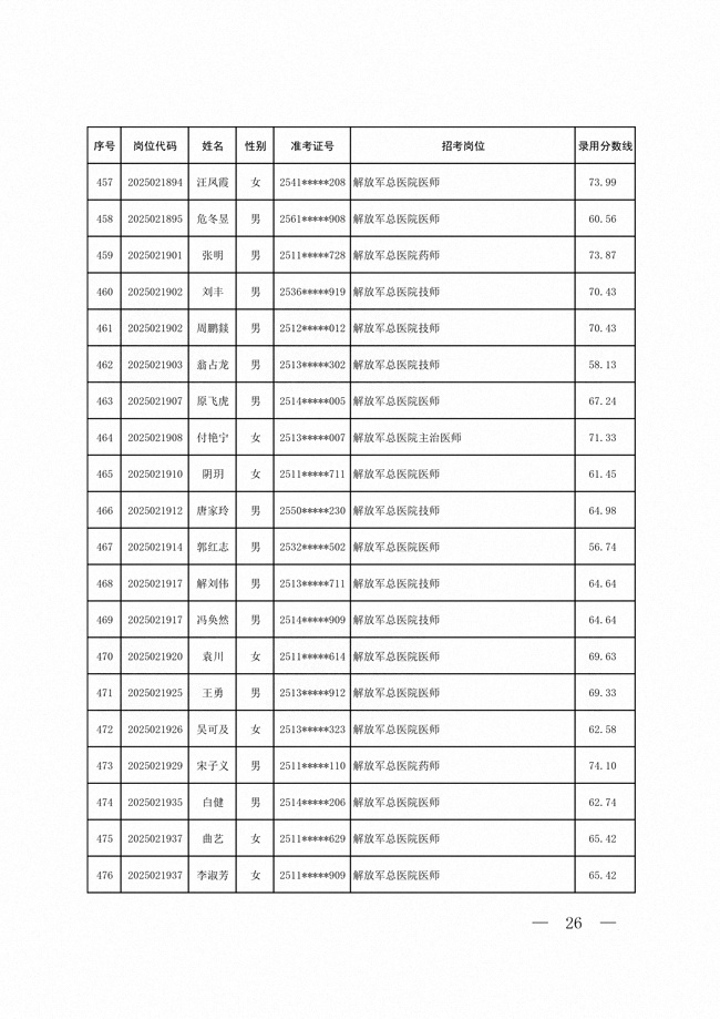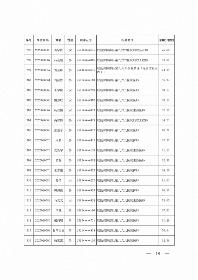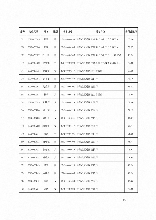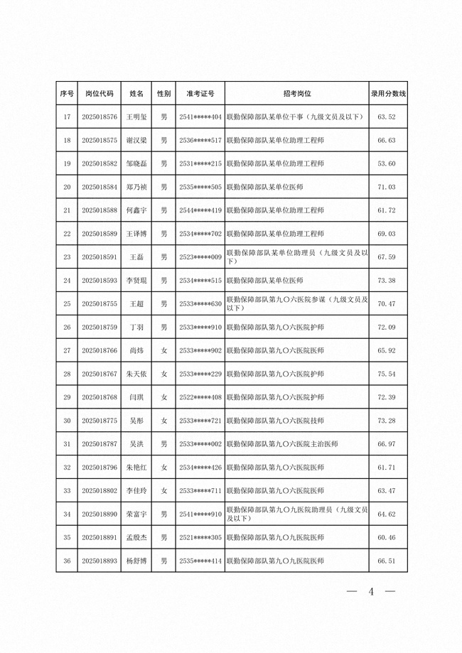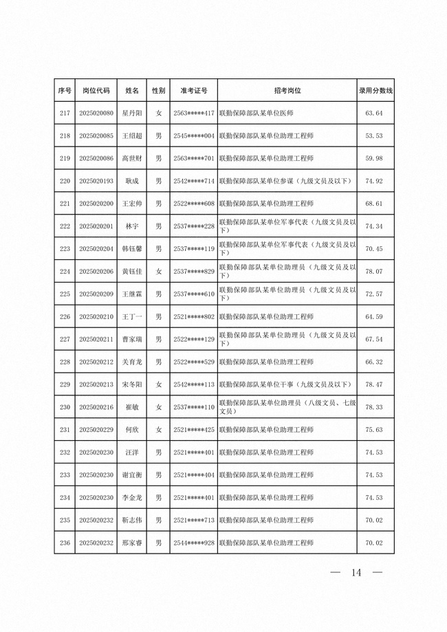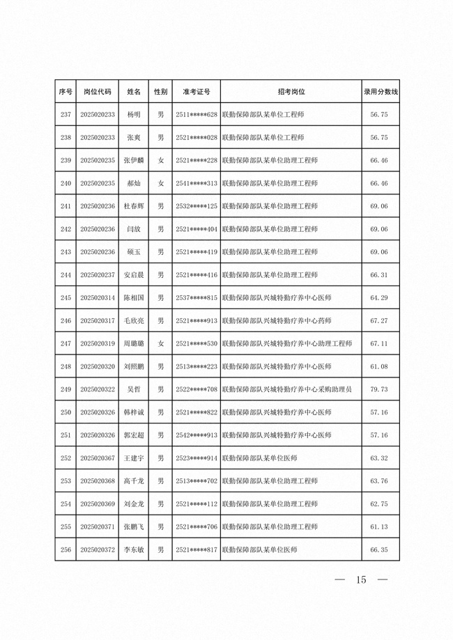 2025年武裝部文職人員擬錄用名單(含上岸分?jǐn)?shù)線) 2025-10-09
