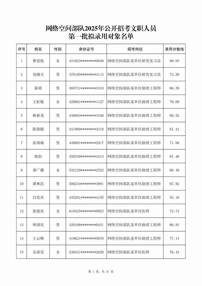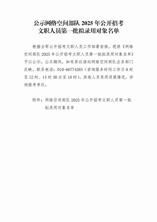 原文標(biāo)題:公示網(wǎng)絡(luò)空間部隊2025年公開招考文職人員第一批擬錄用對象名單