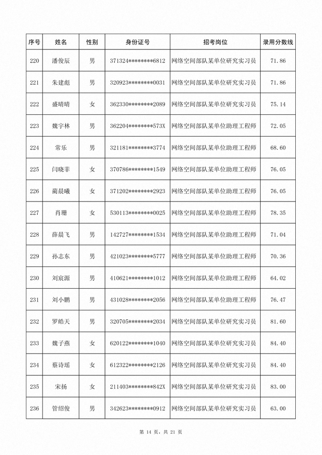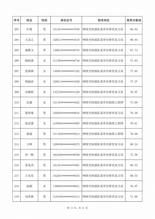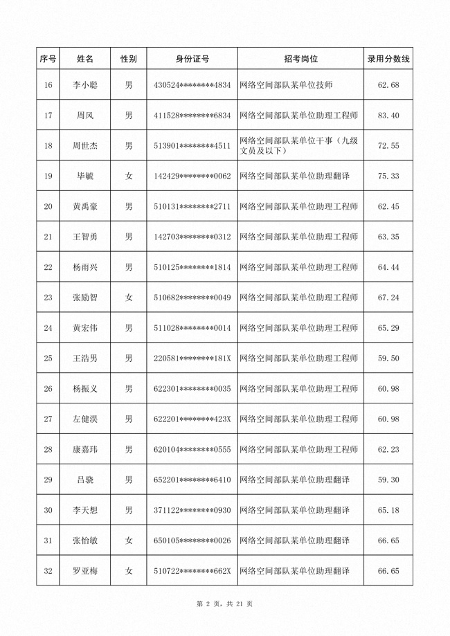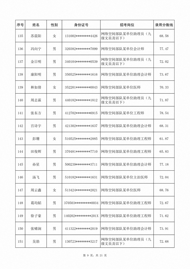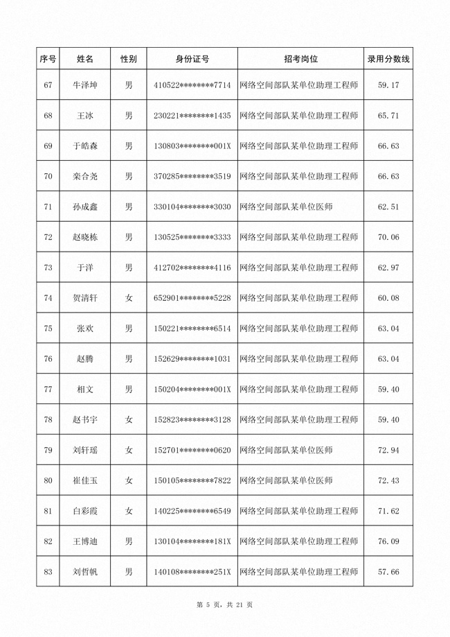 2025年武裝部文職人員擬錄用名單(含上岸分數(shù)線) 2025-10-09