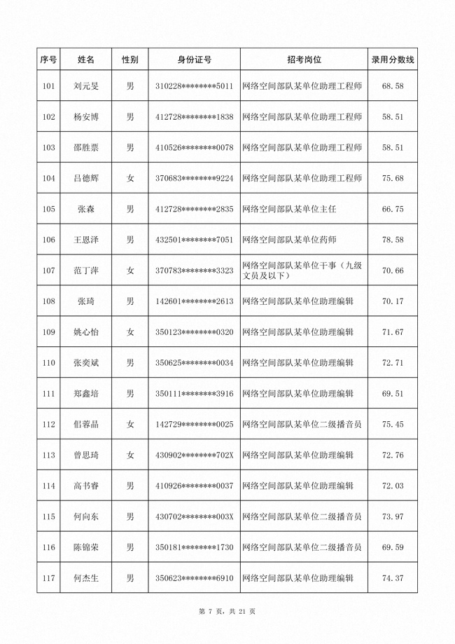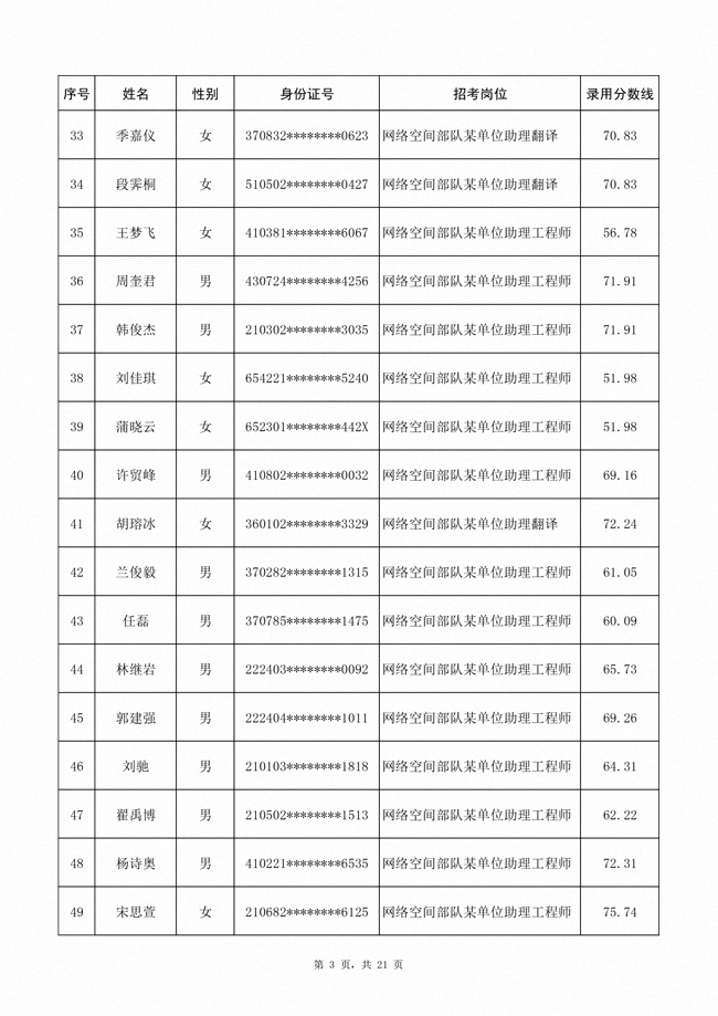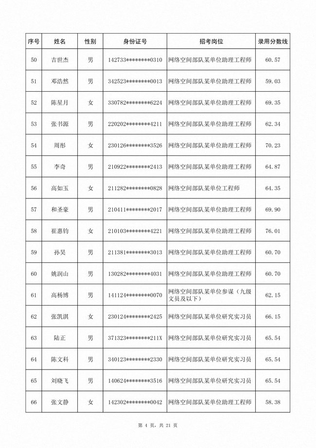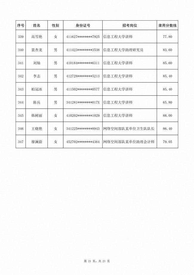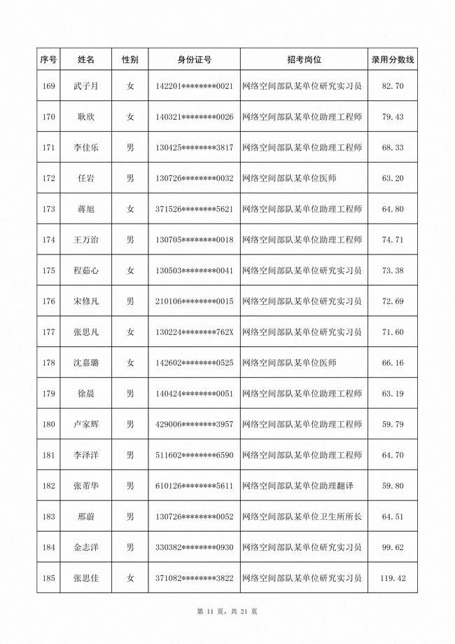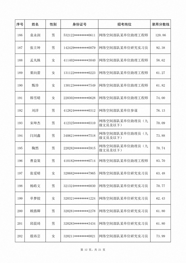 2025年武裝部文職人員擬錄用名單(含上岸分數(shù)線) 2025-10-09