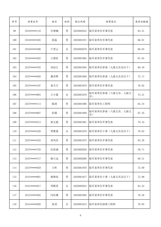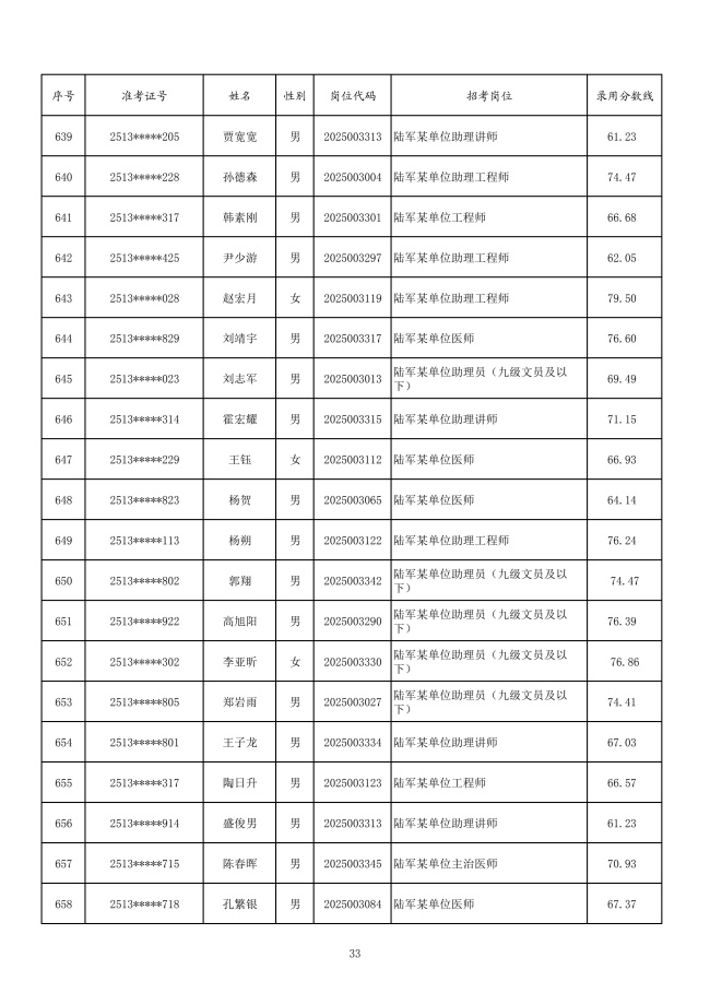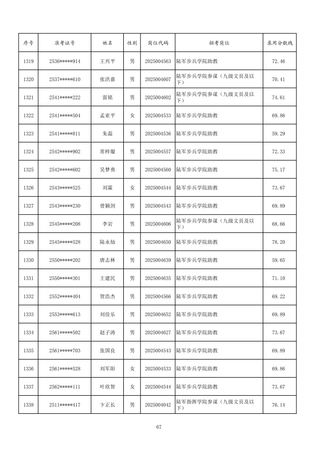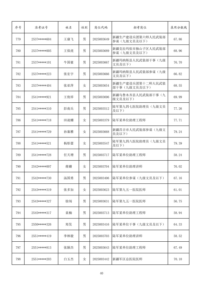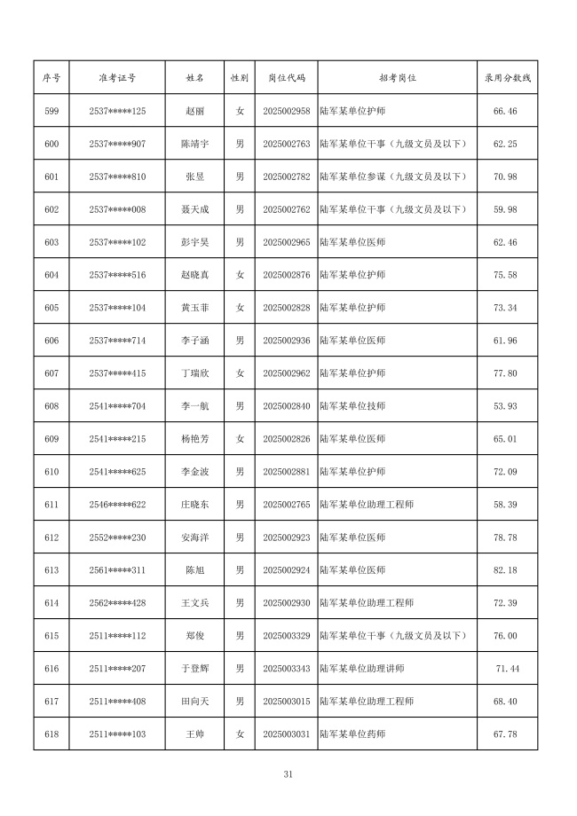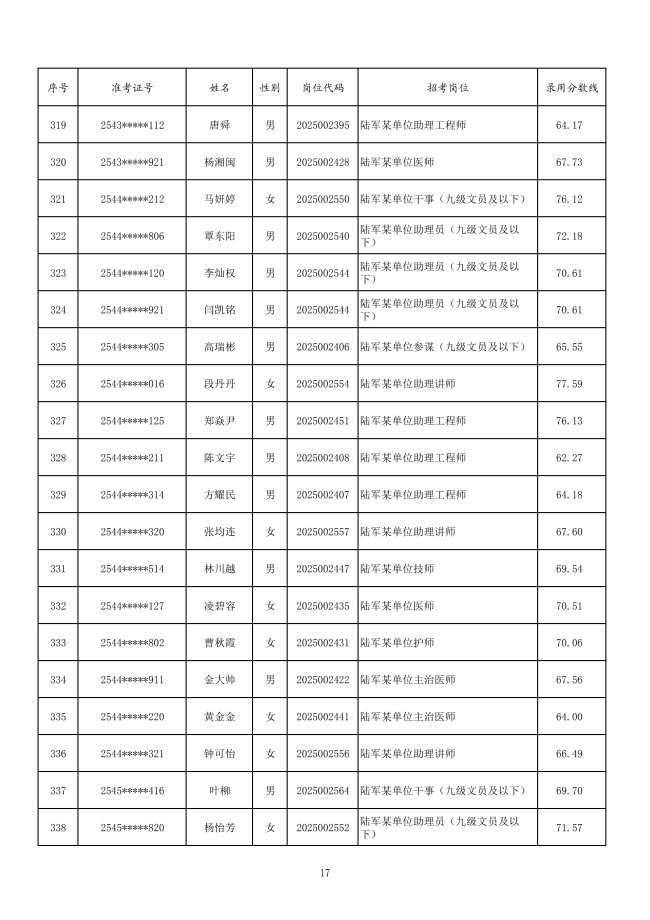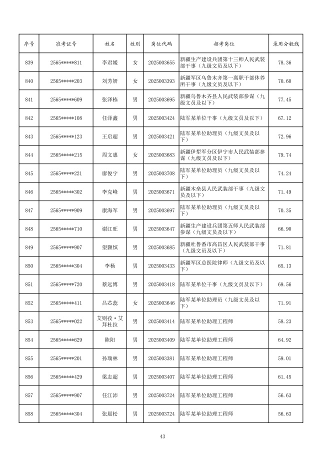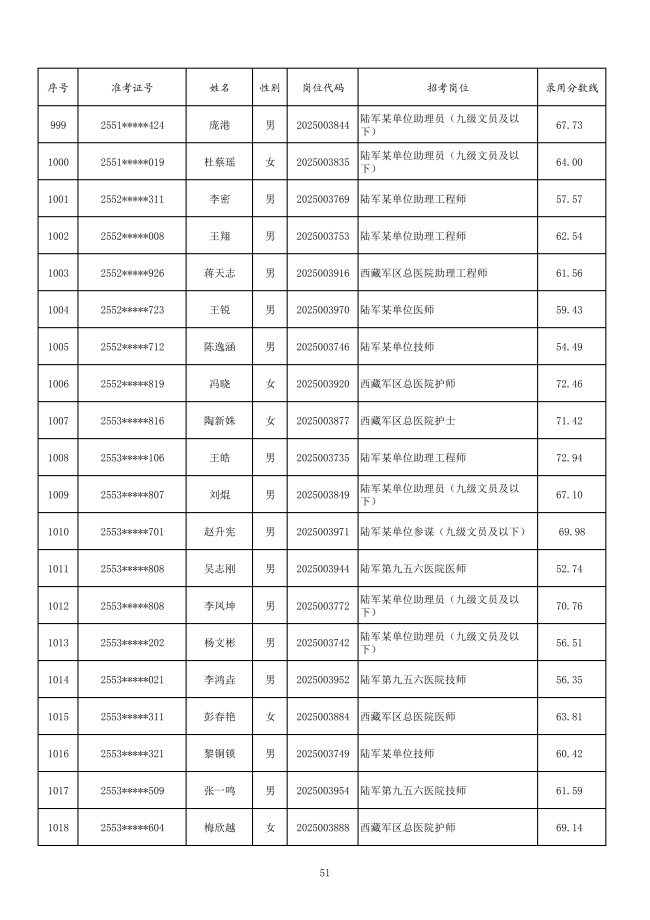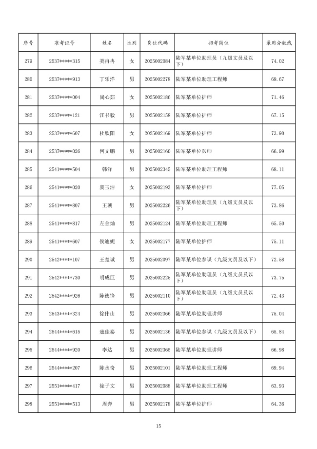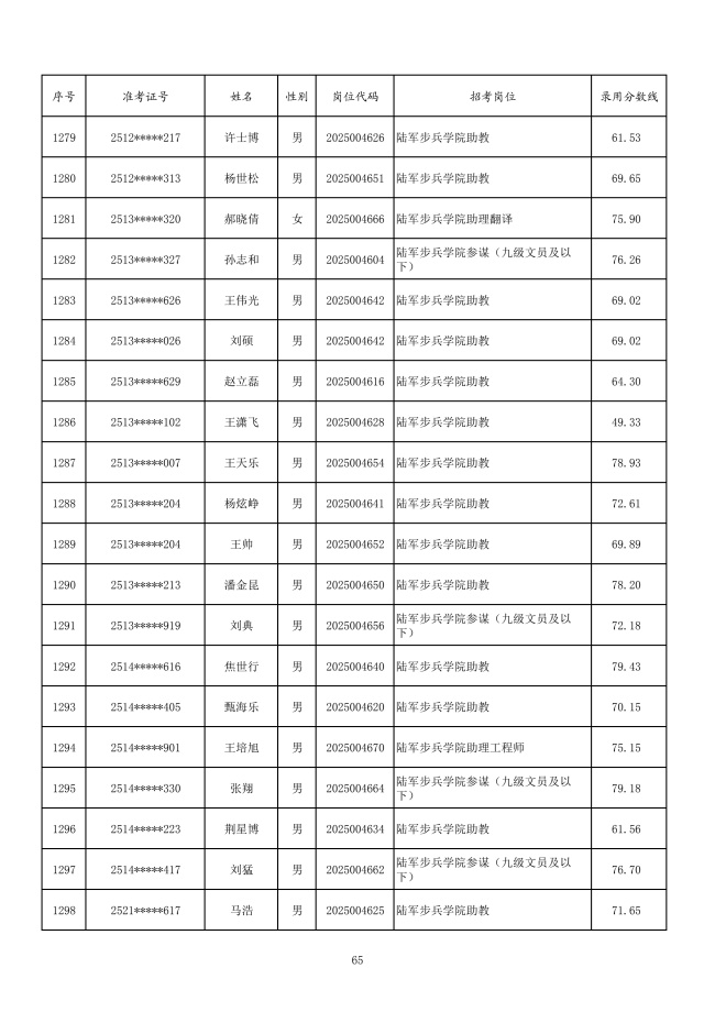 2025年武裝部文職人員擬錄用名單(含上岸分?jǐn)?shù)線) 2025-10-09
