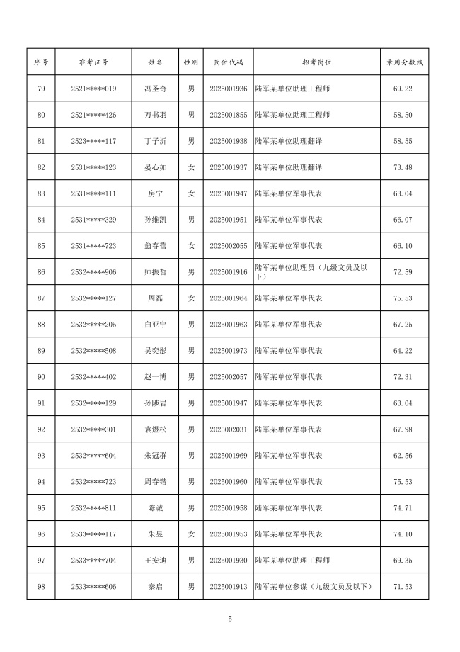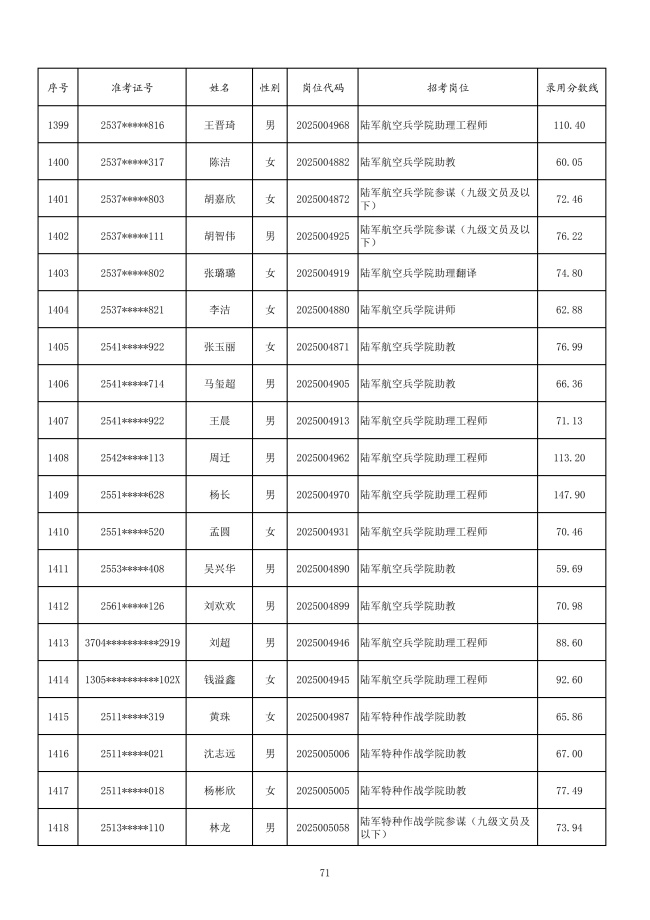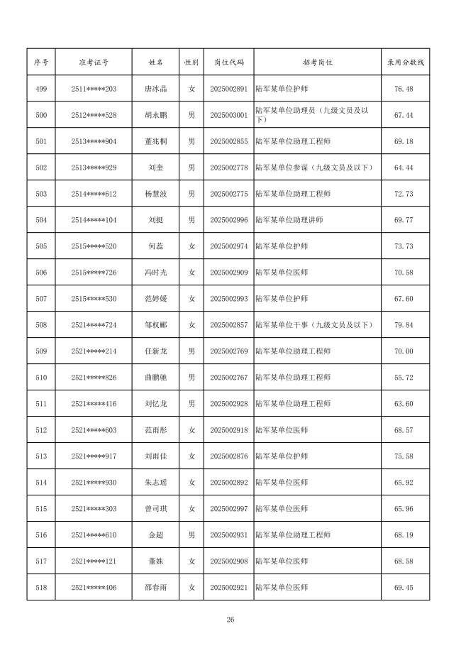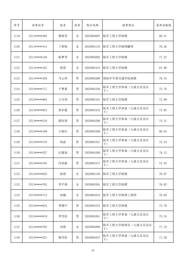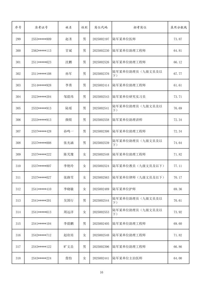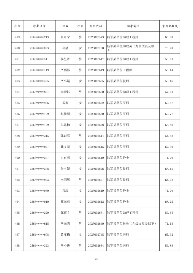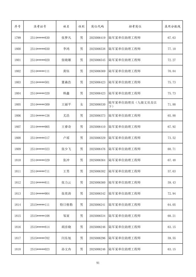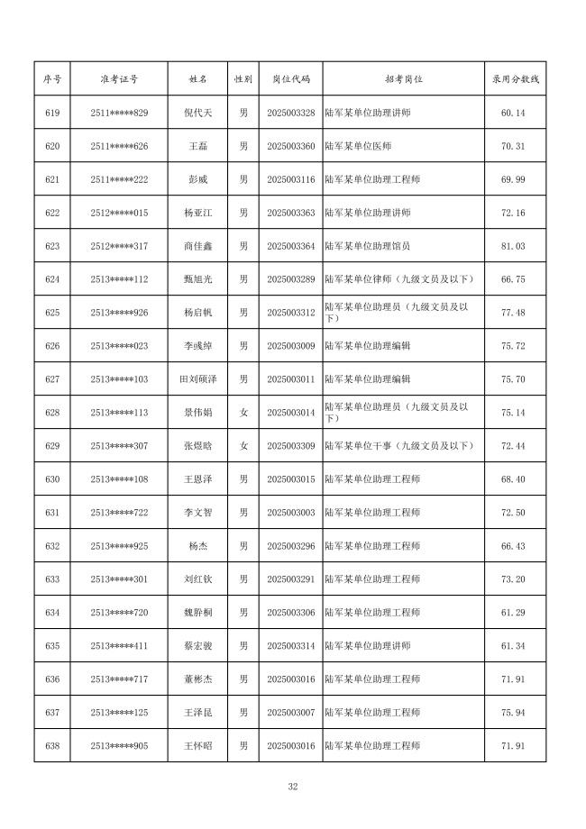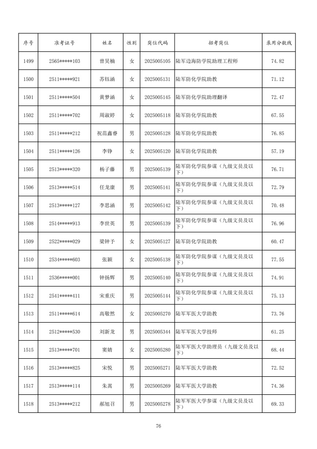 2025年武裝部文職人員擬錄用名單(含上岸分?jǐn)?shù)線) 2025-10-09
