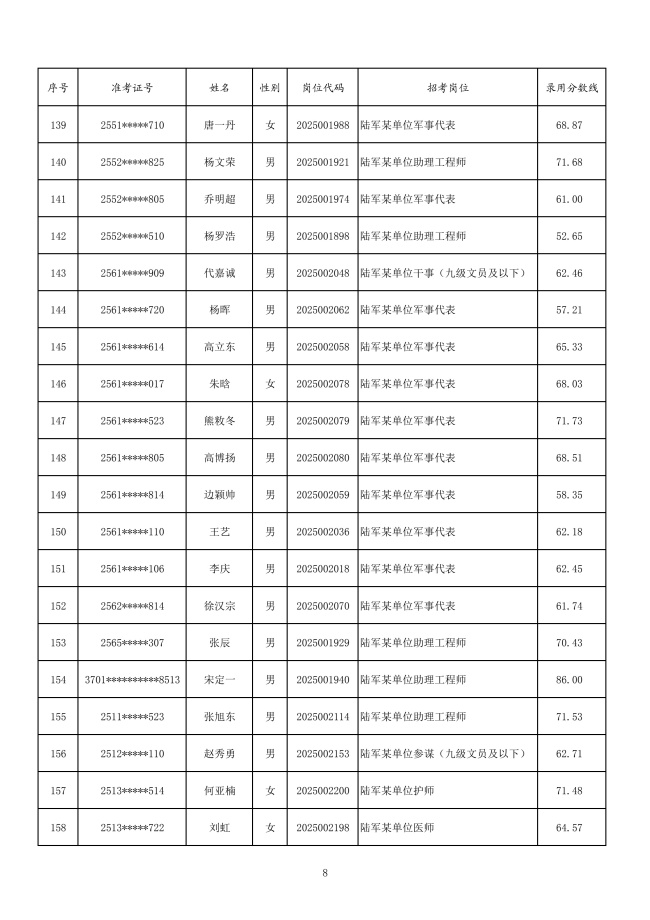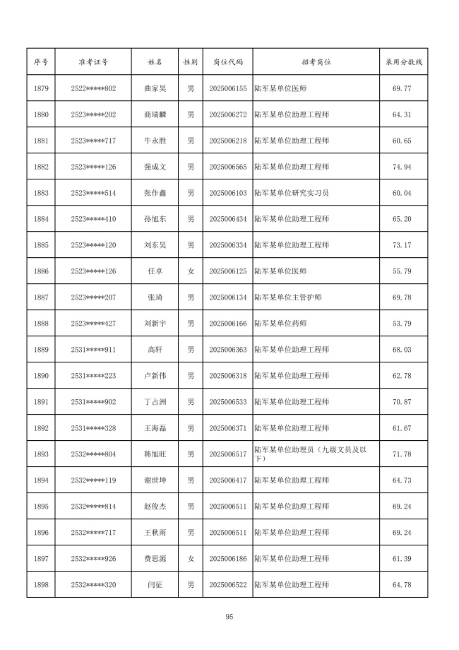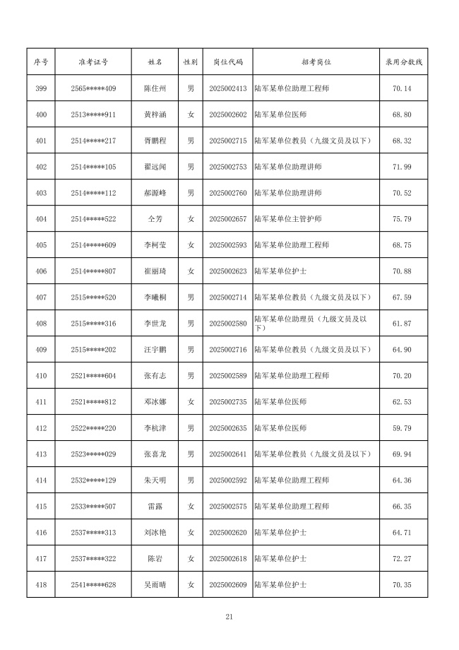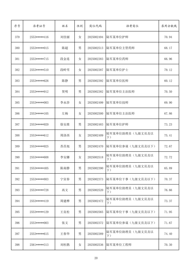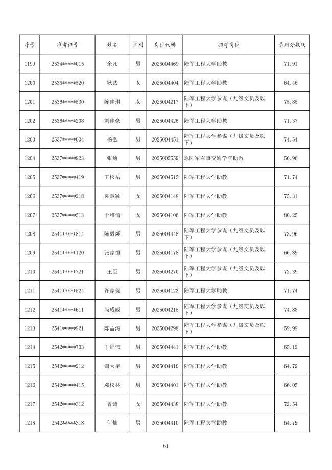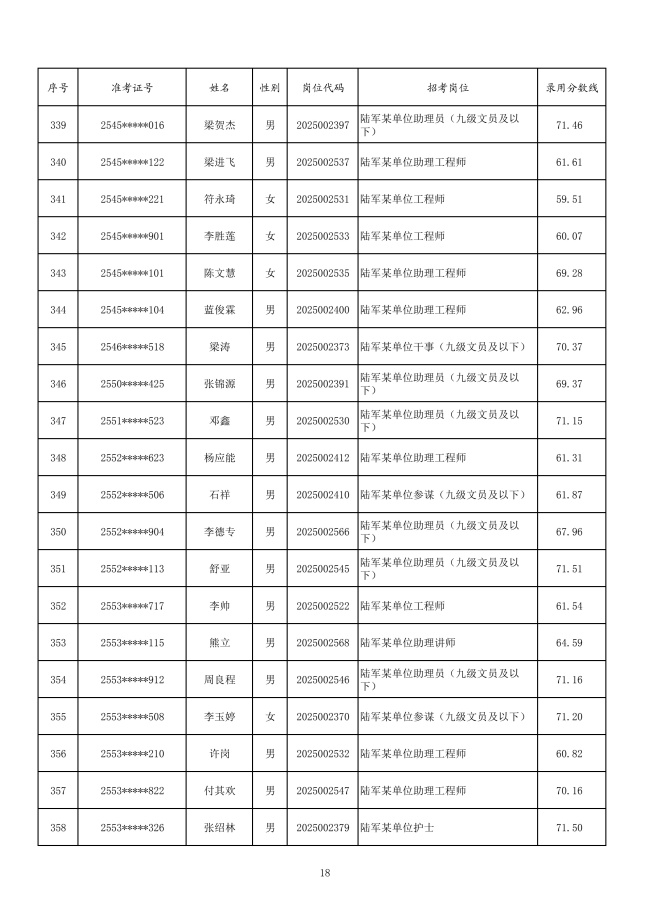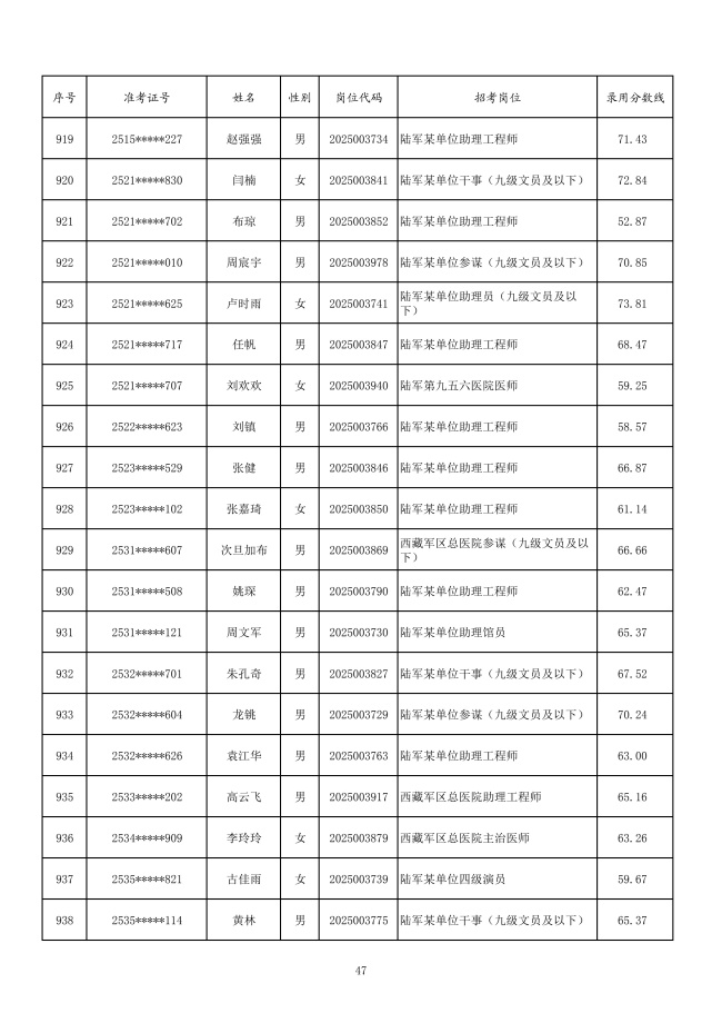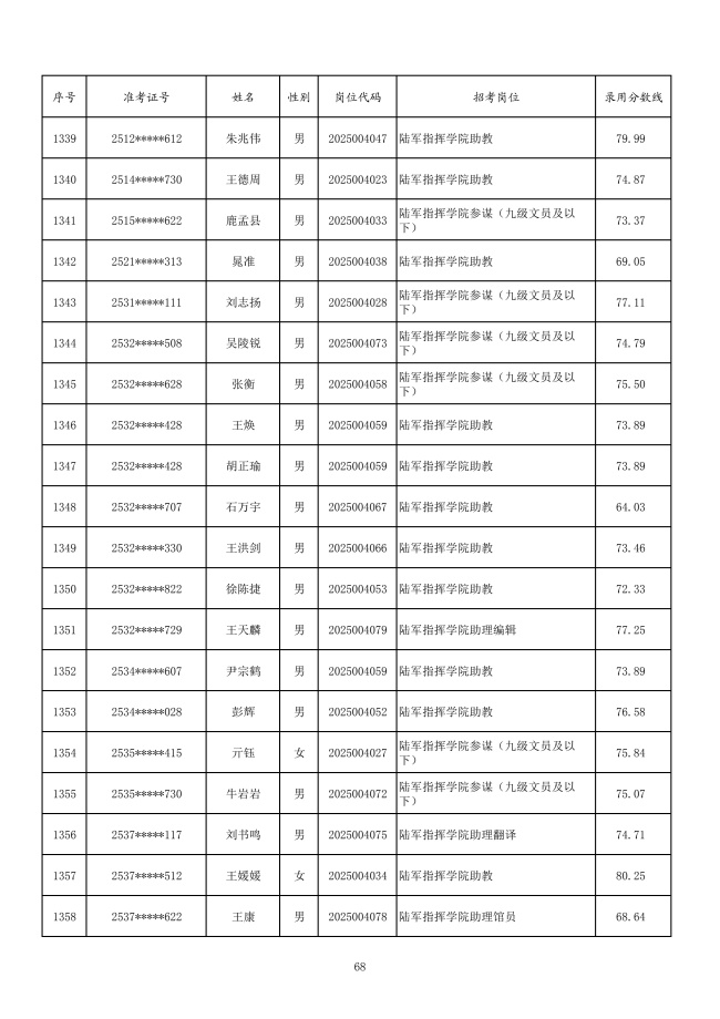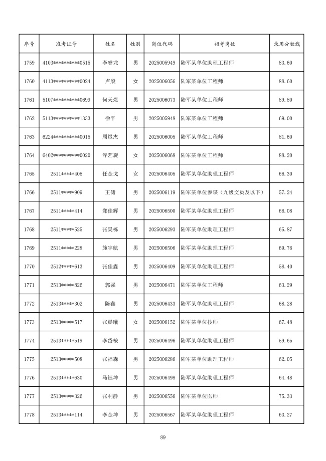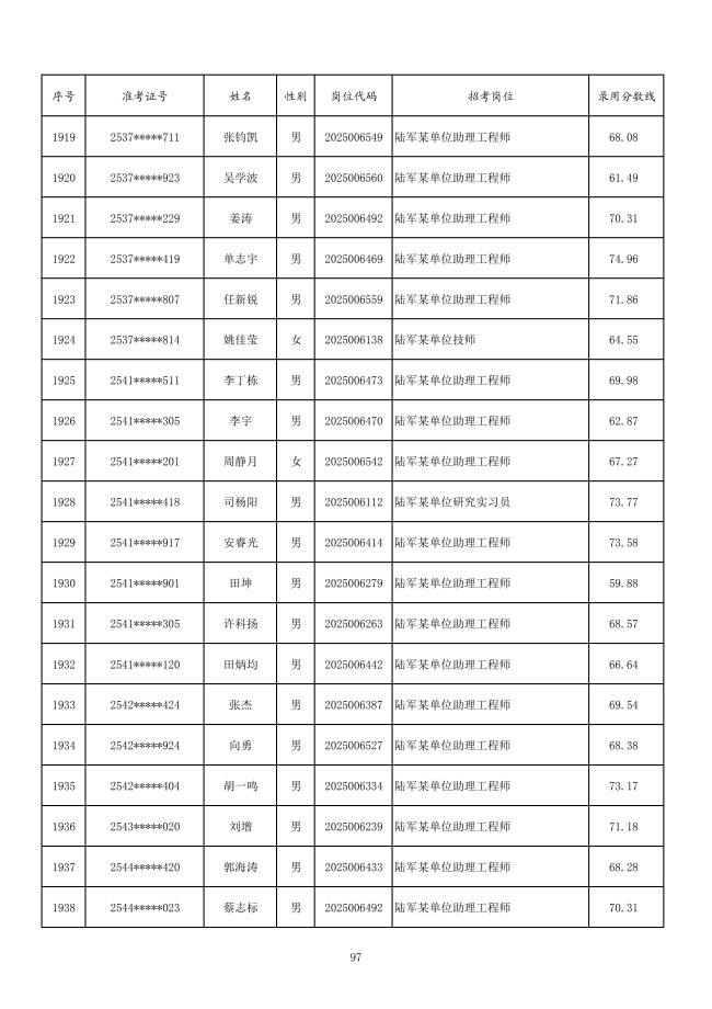 2025年武裝部文職人員擬錄用名單(含上岸分?jǐn)?shù)線) 2025-10-09
