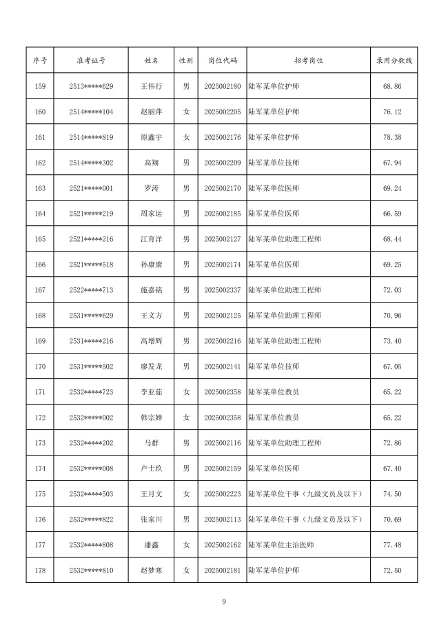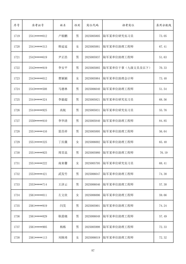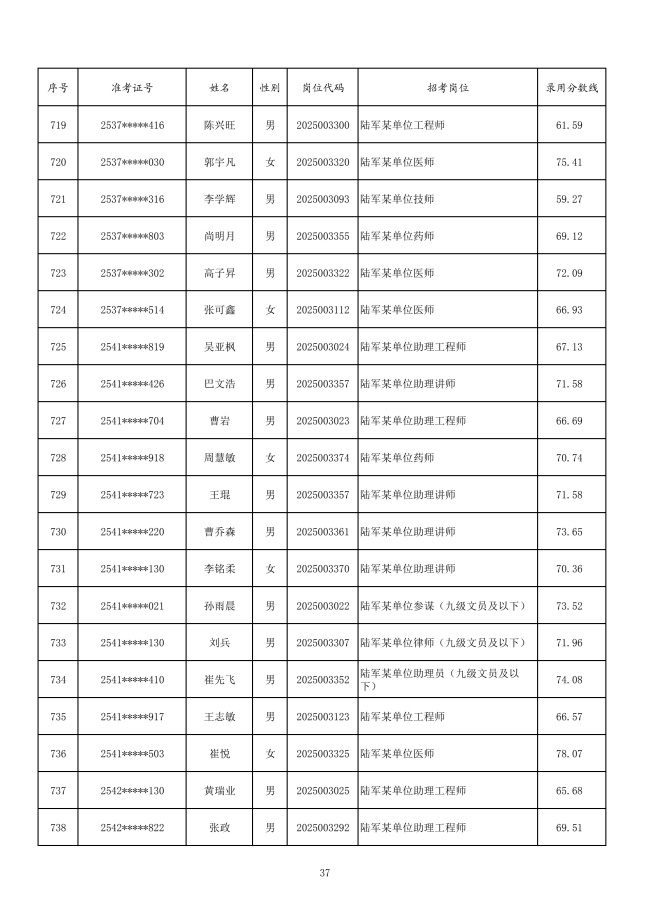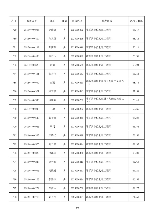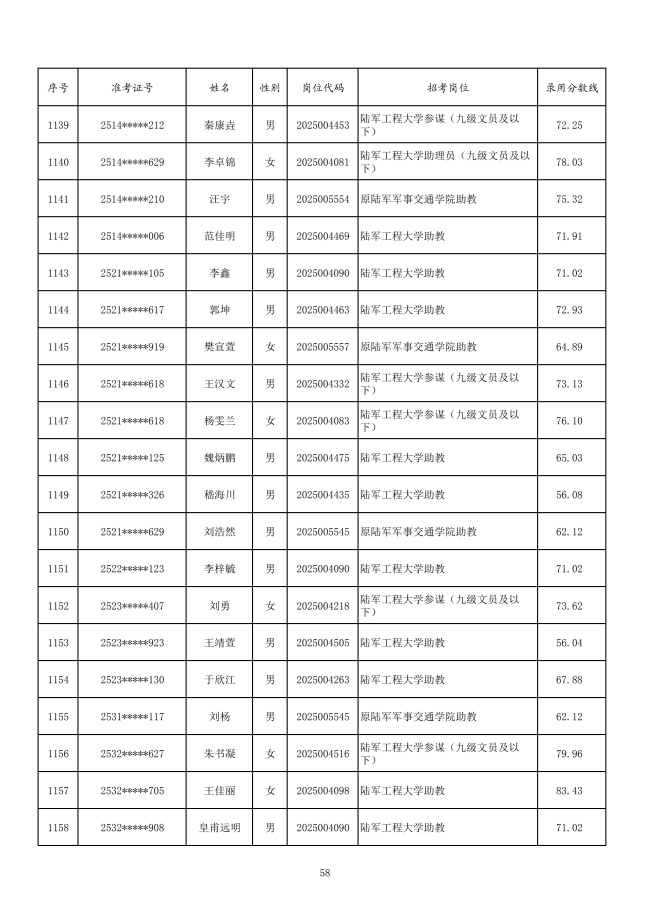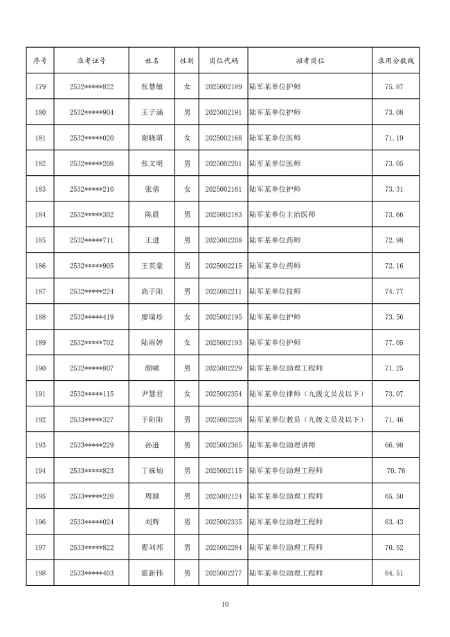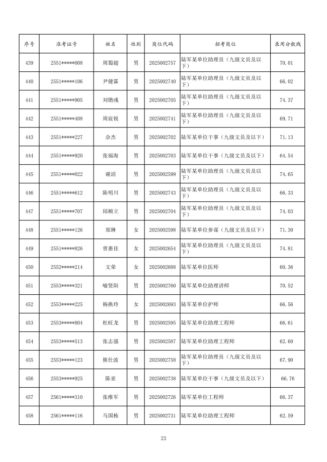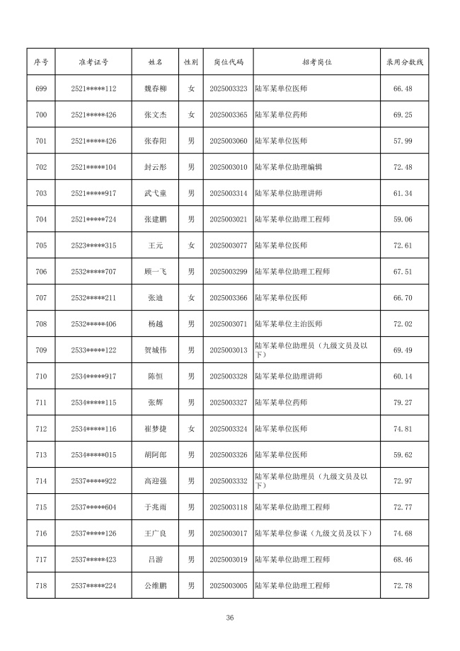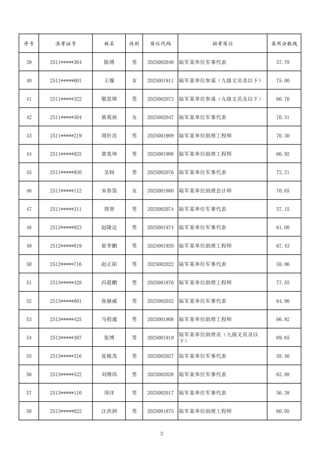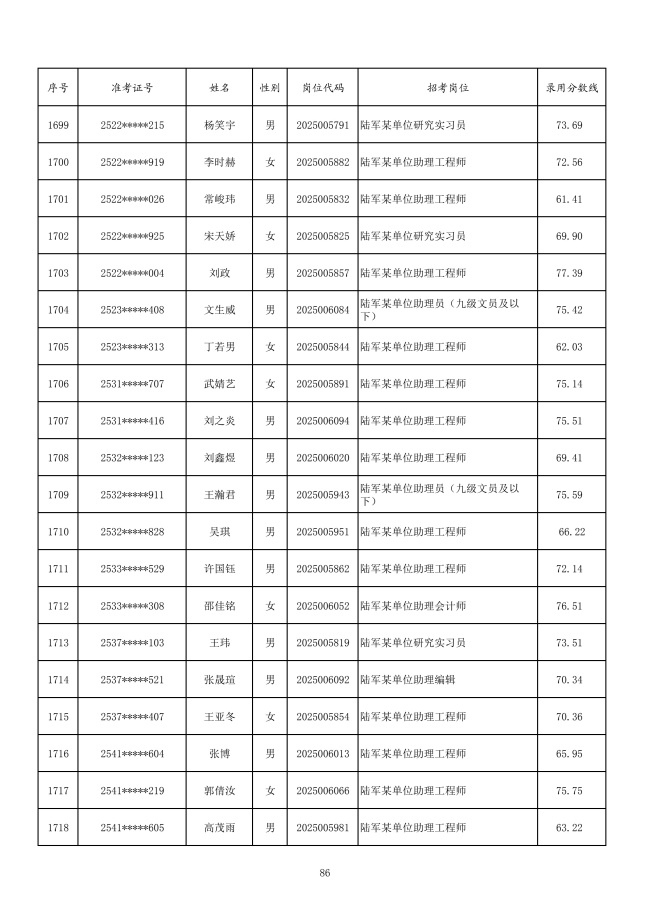 2025年武裝部文職人員擬錄用名單(含上岸分?jǐn)?shù)線) 2025-10-09