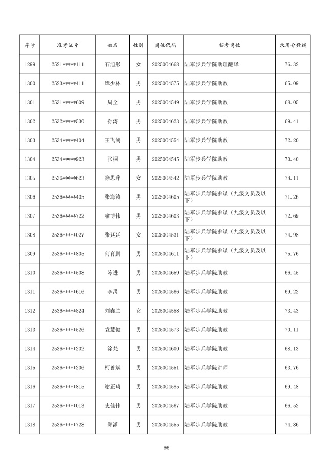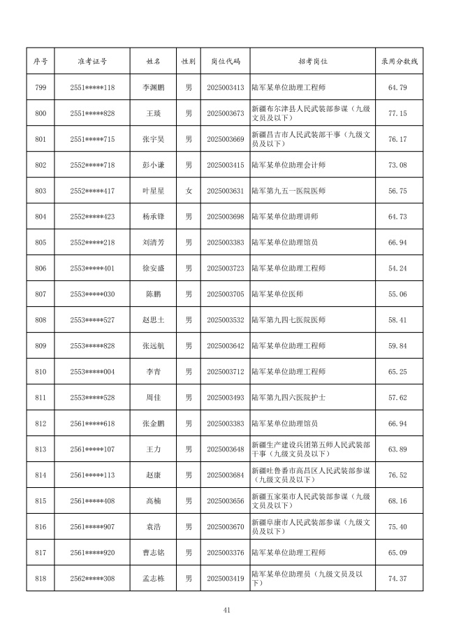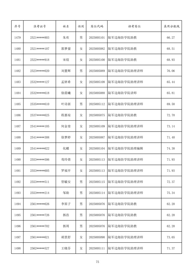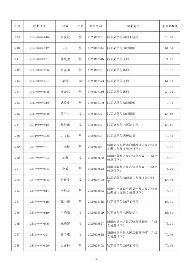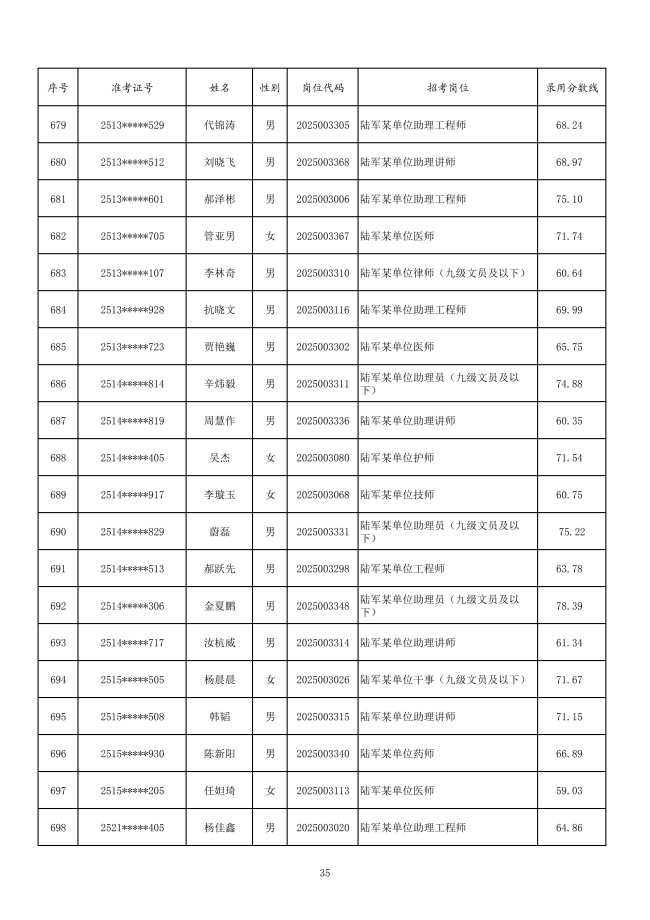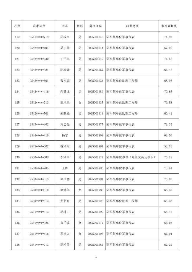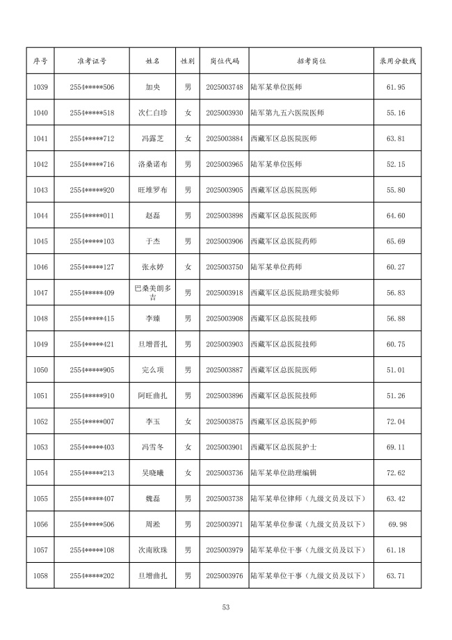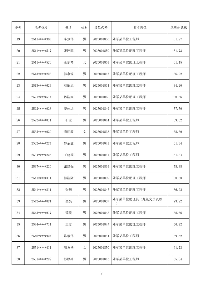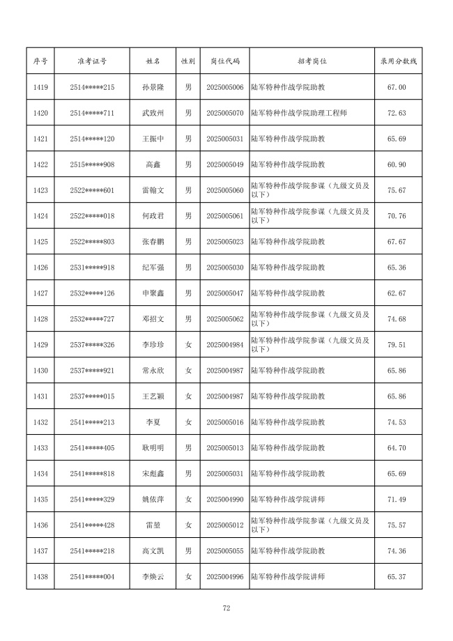 2025年武裝部文職人員擬錄用名單(含上岸分?jǐn)?shù)線) 2025-10-09