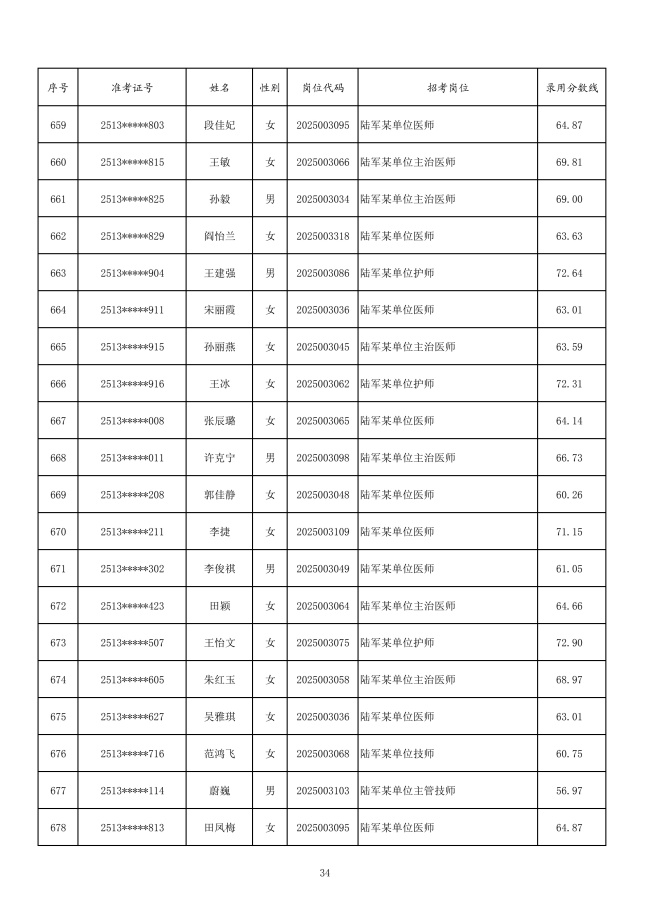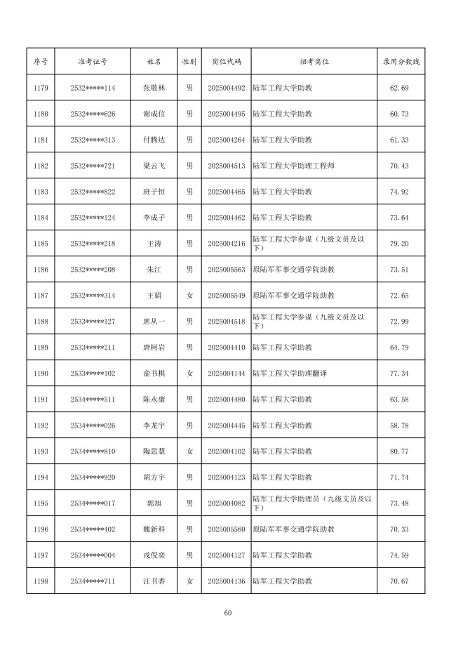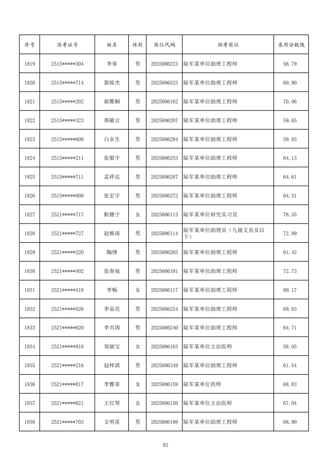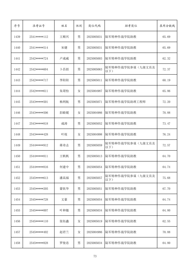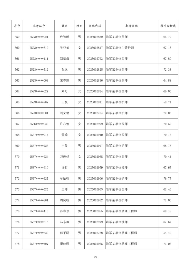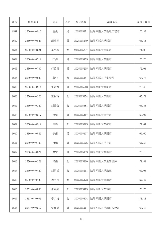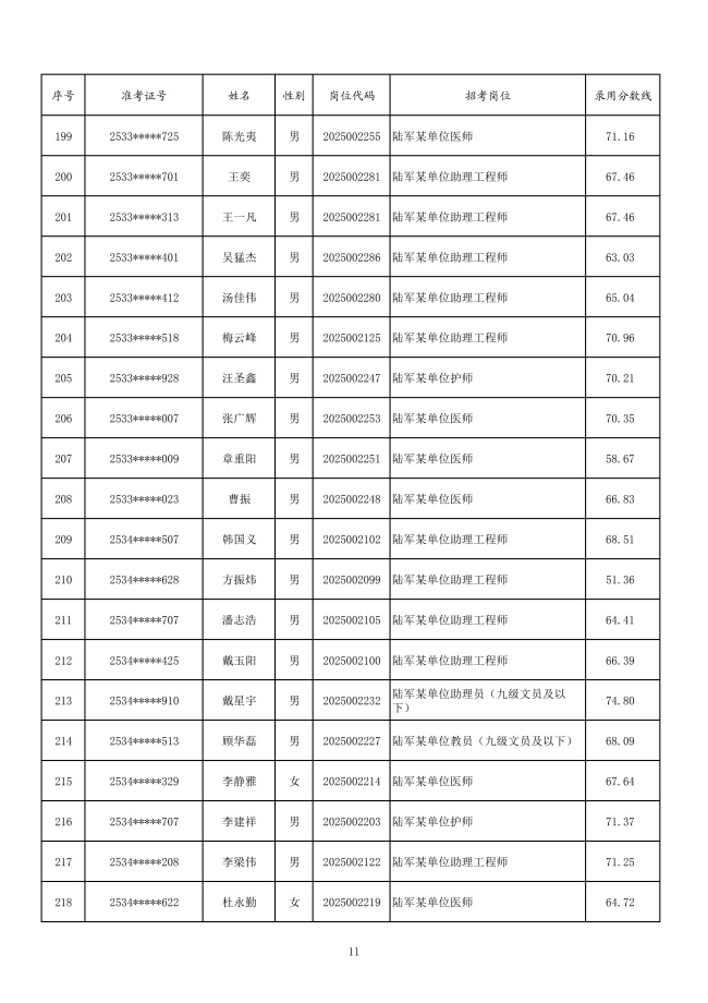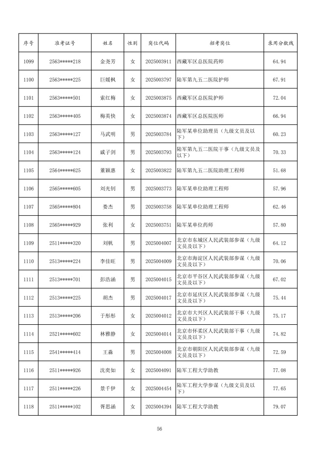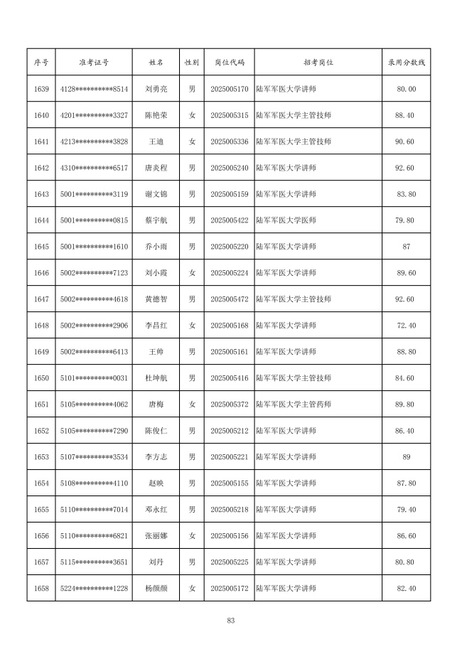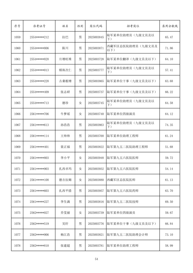 2025年武裝部文職人員擬錄用名單(含上岸分?jǐn)?shù)線) 2025-10-09