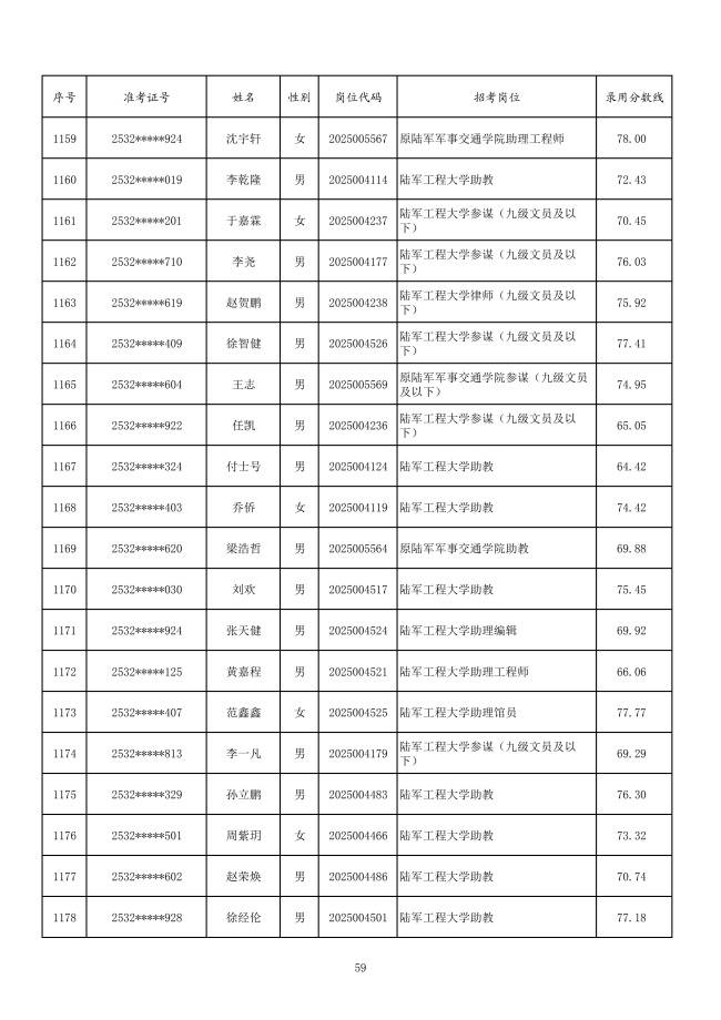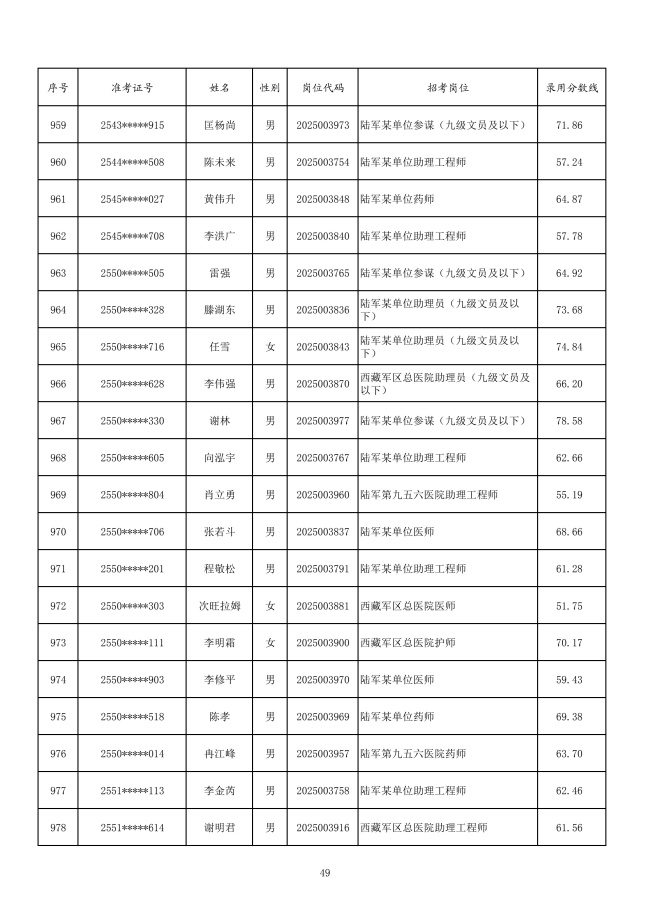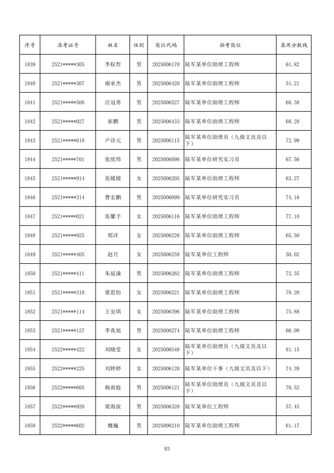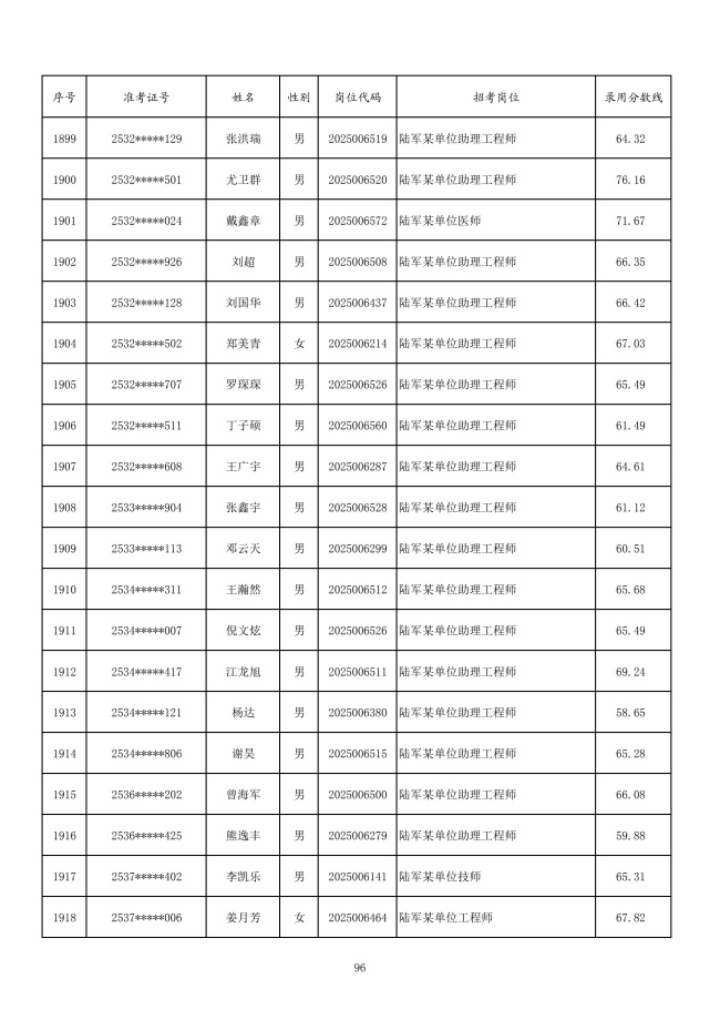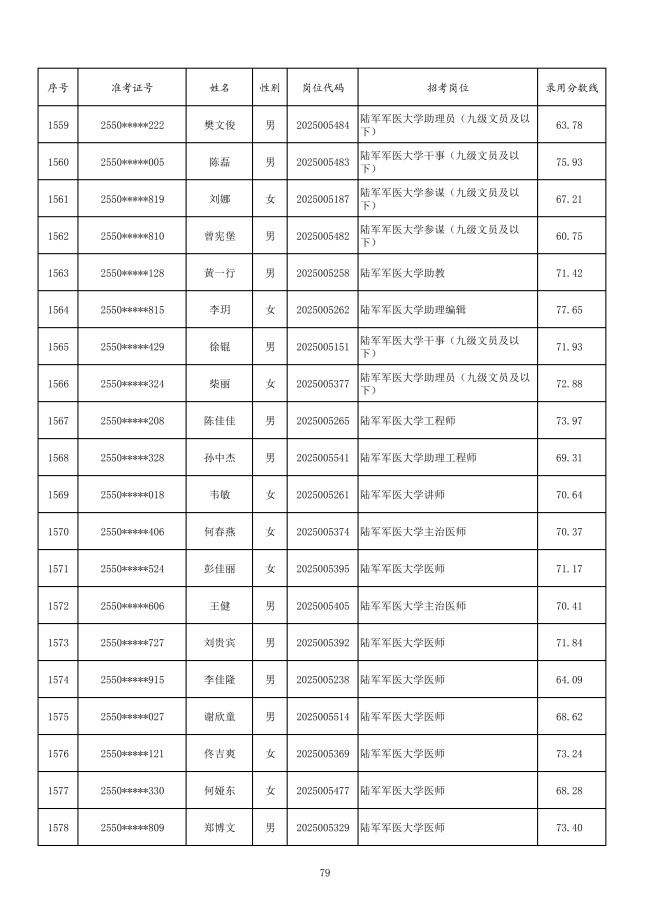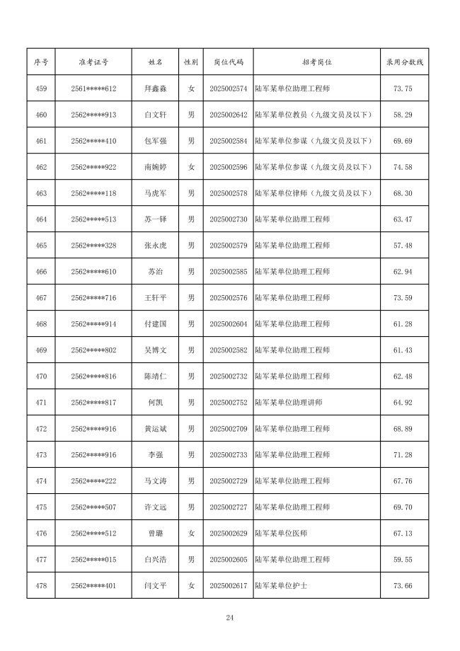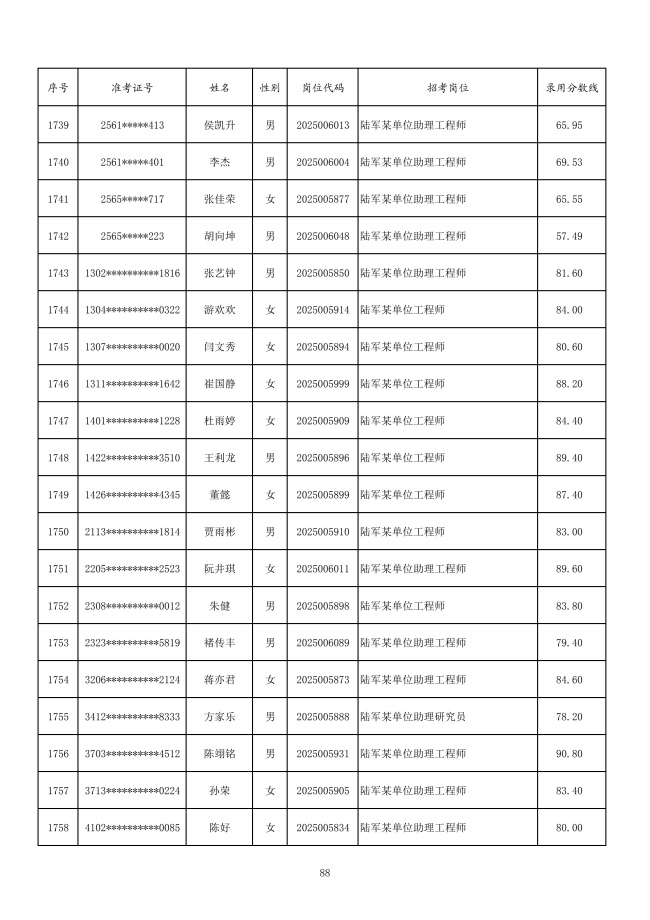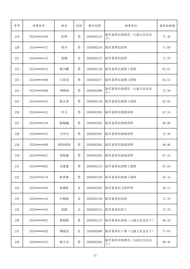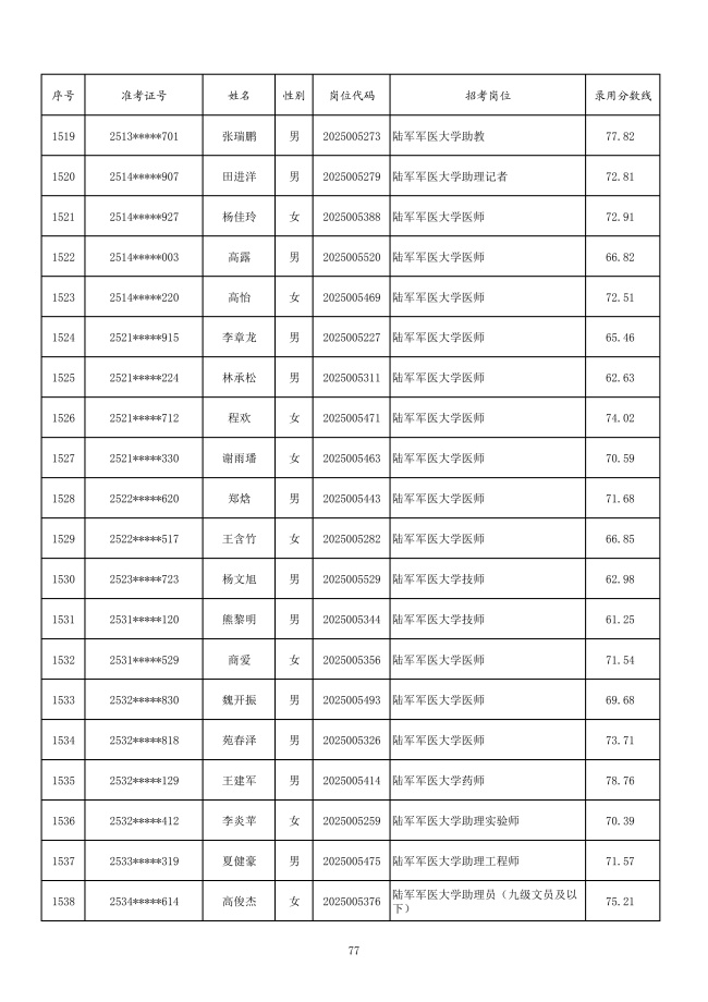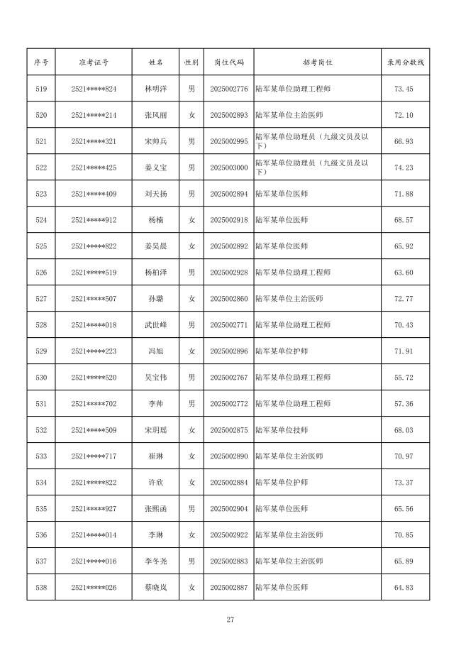 2025年武裝部文職人員擬錄用名單(含上岸分?jǐn)?shù)線) 2025-10-09