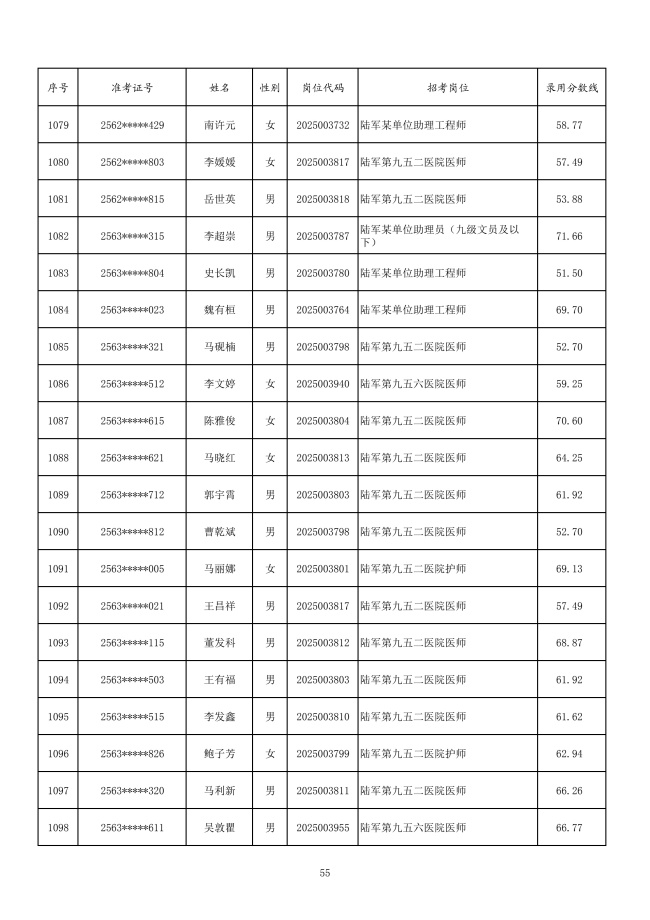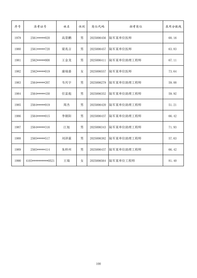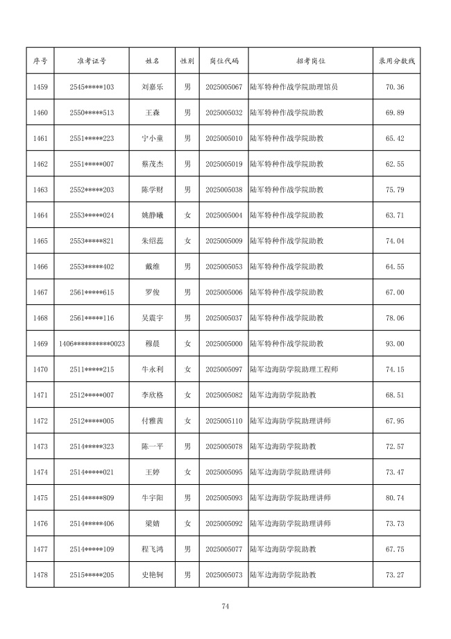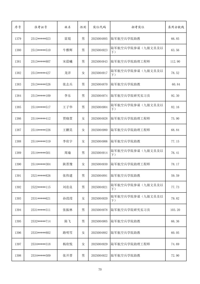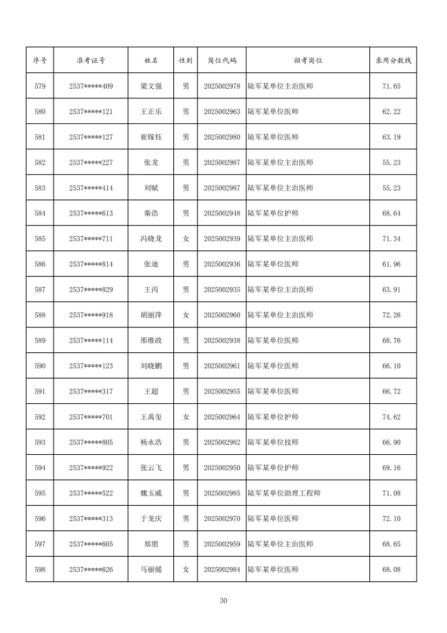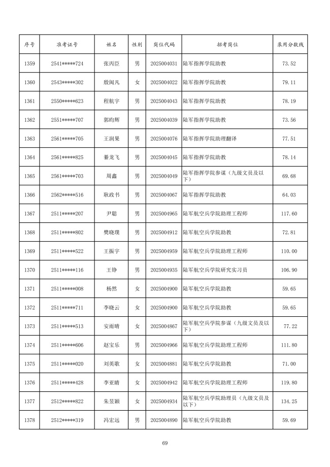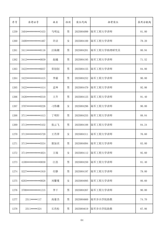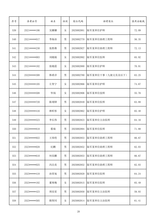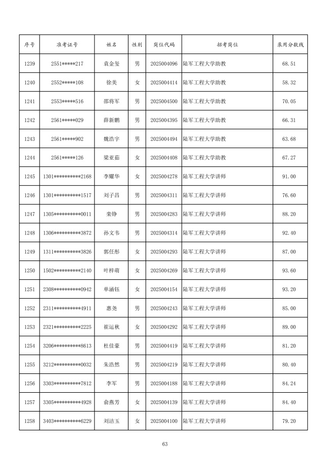 2025年武裝部文職人員擬錄用名單(含上岸分?jǐn)?shù)線) 2025-10-09