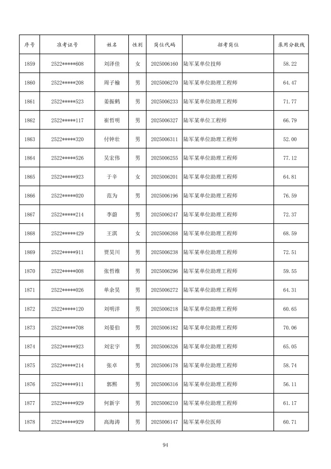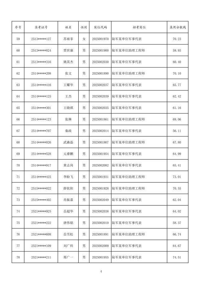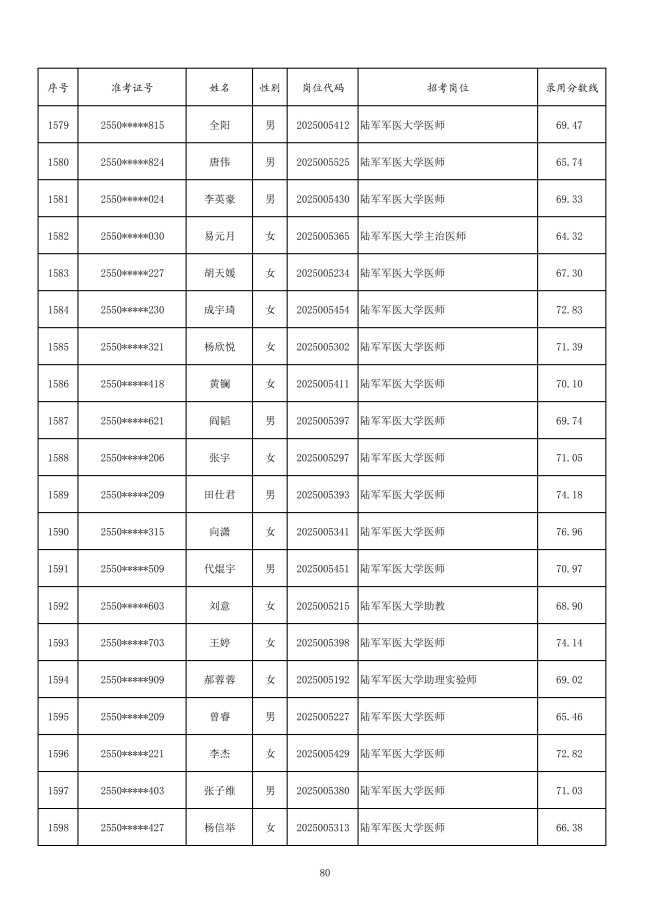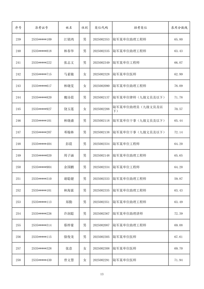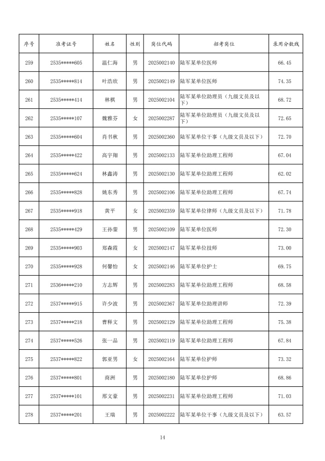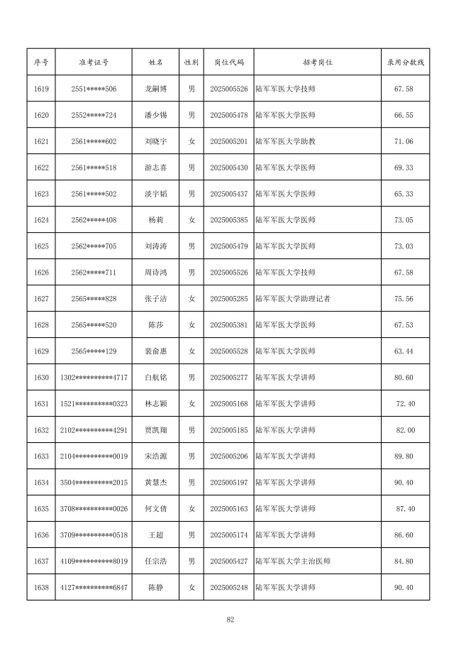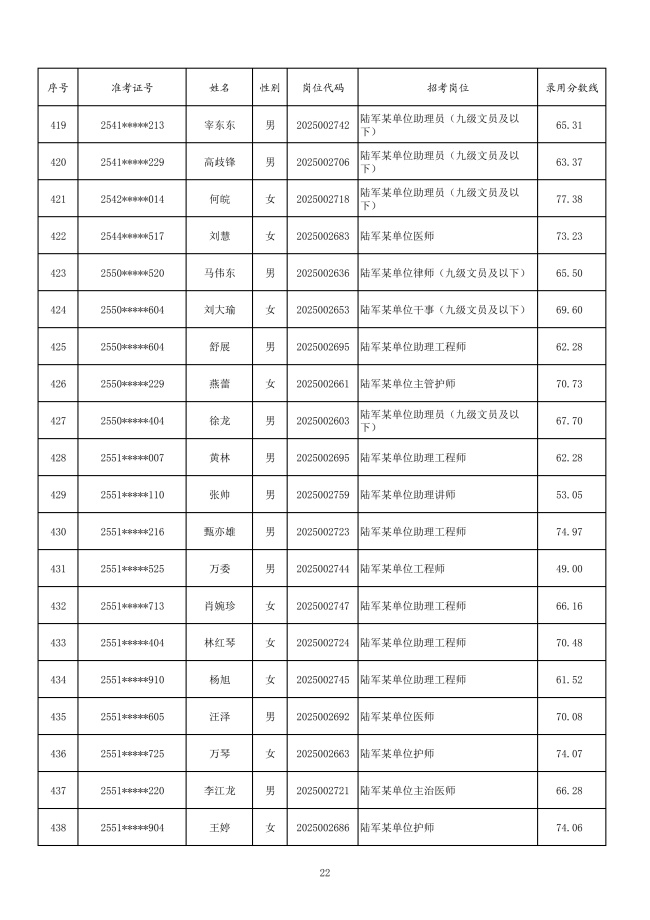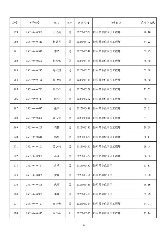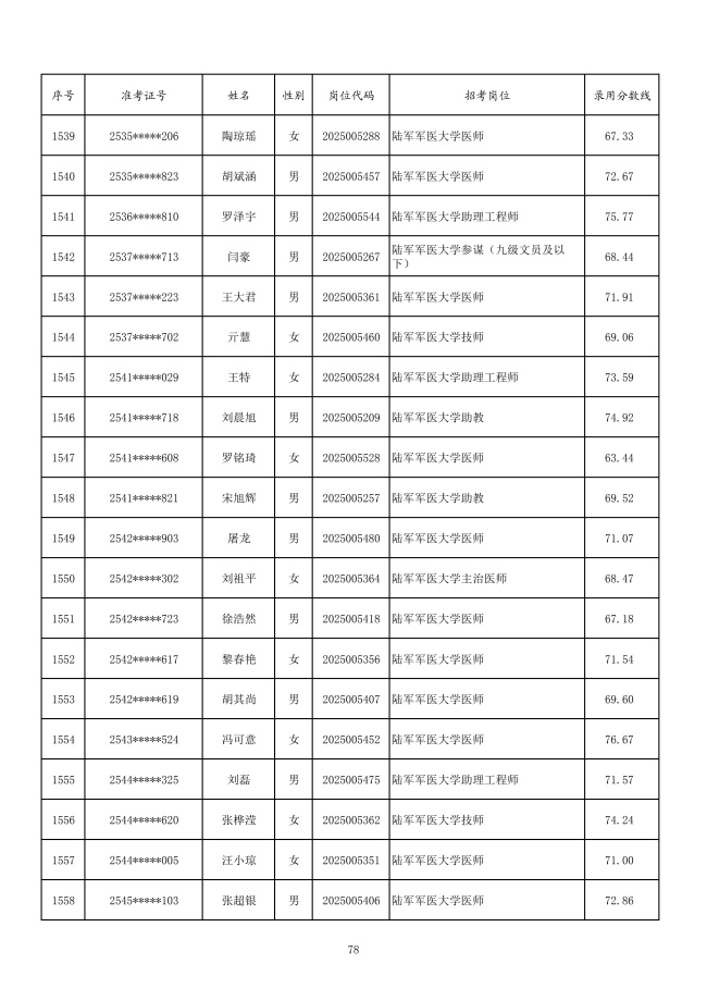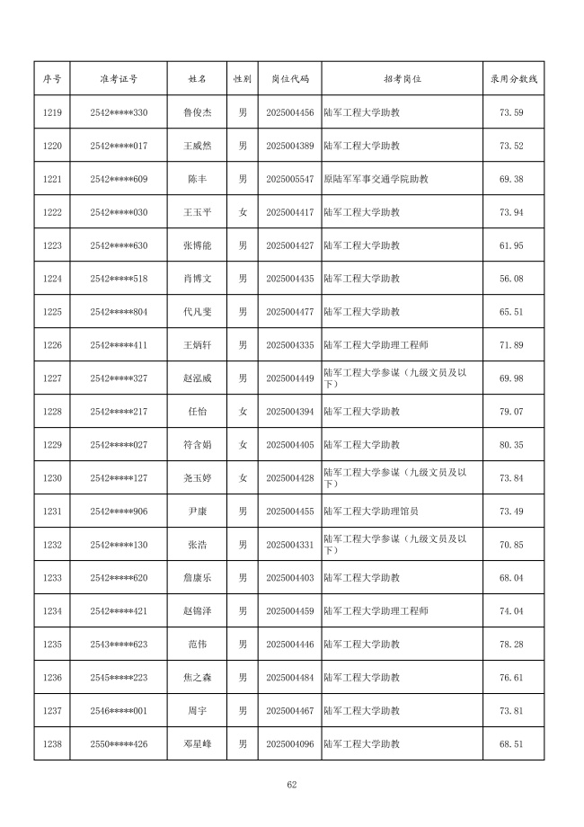 2025年武裝部文職人員擬錄用名單(含上岸分?jǐn)?shù)線) 2025-10-09