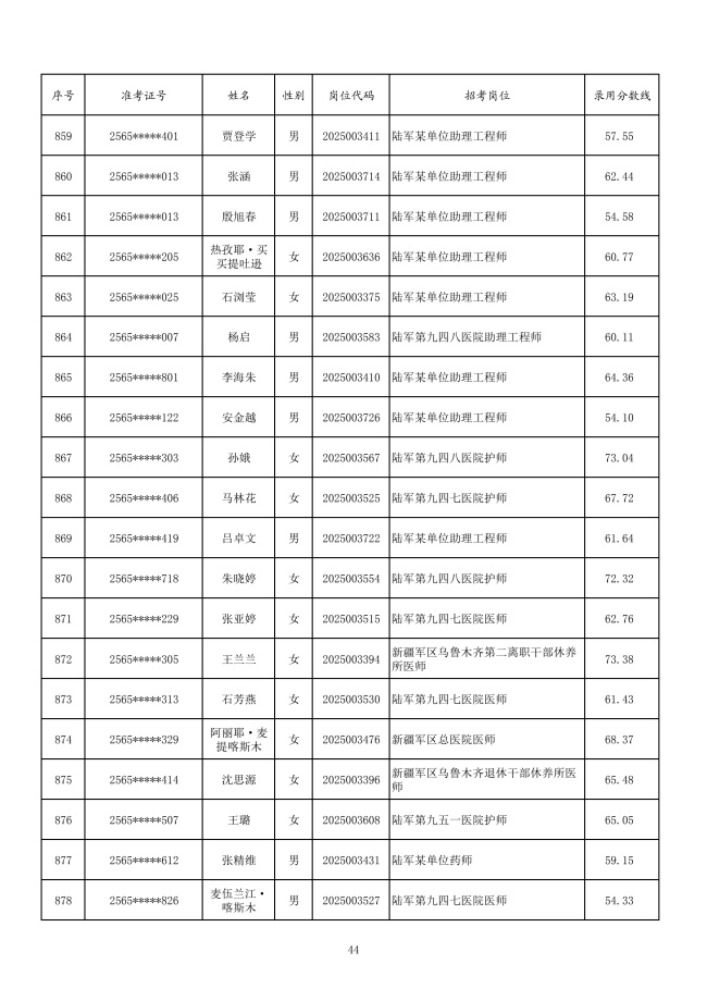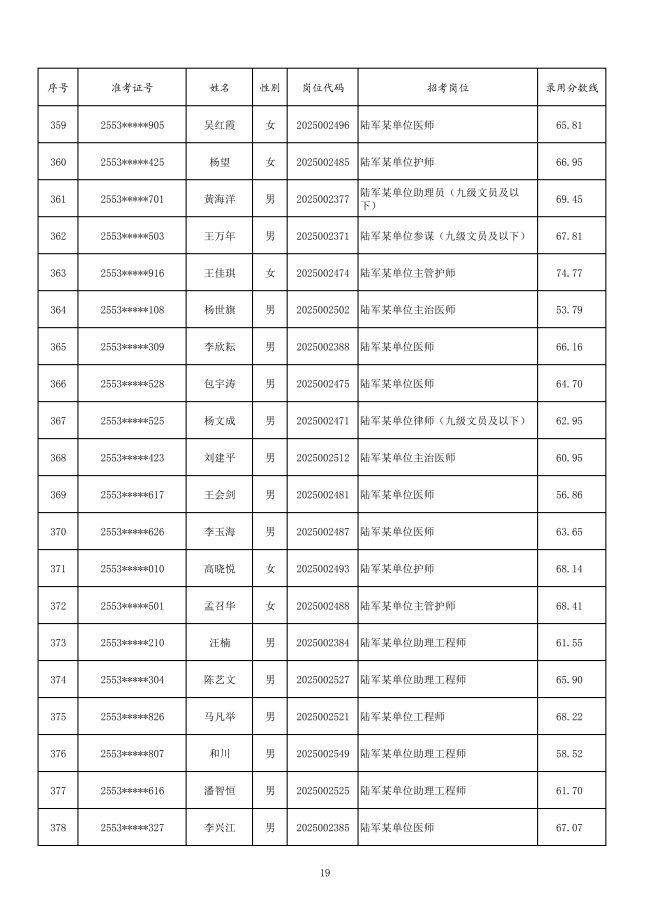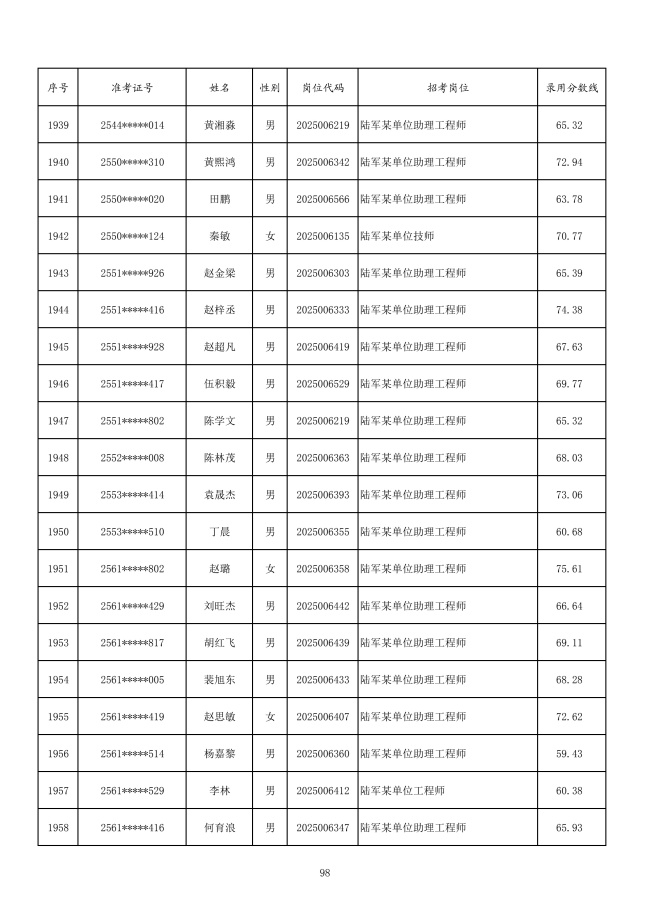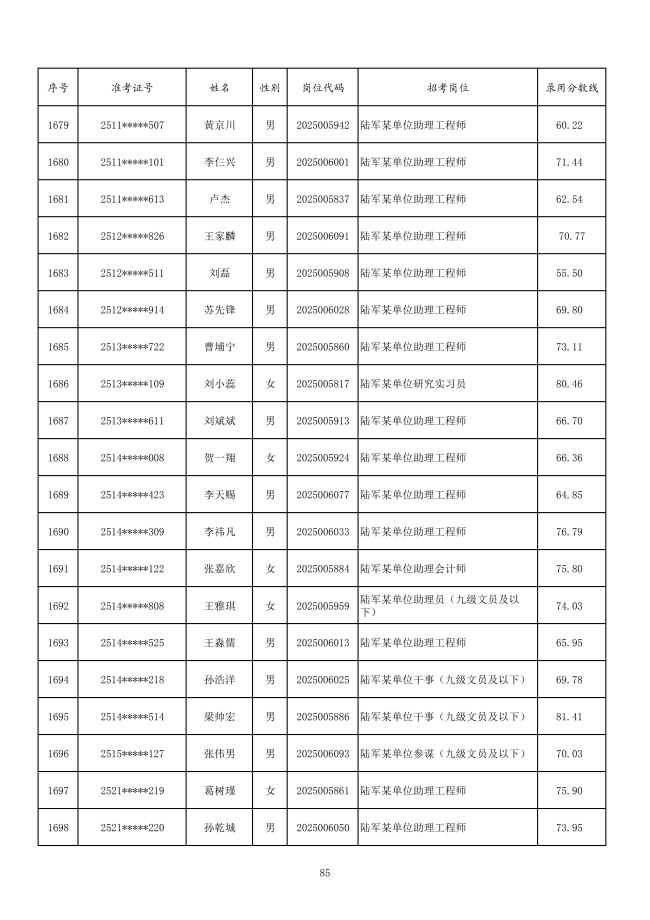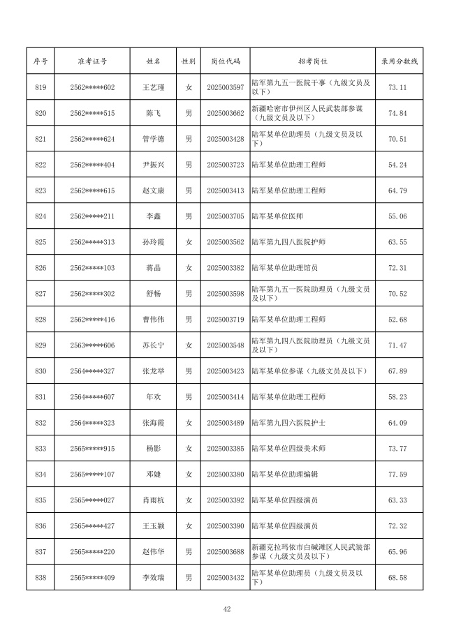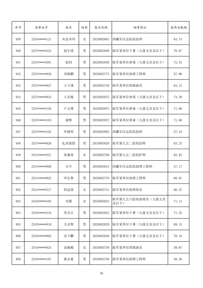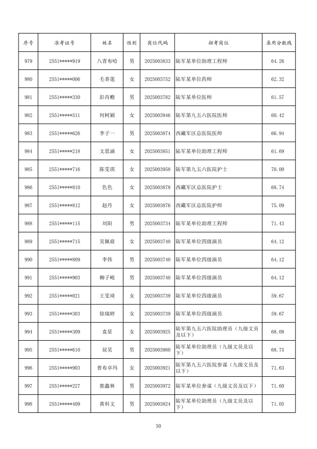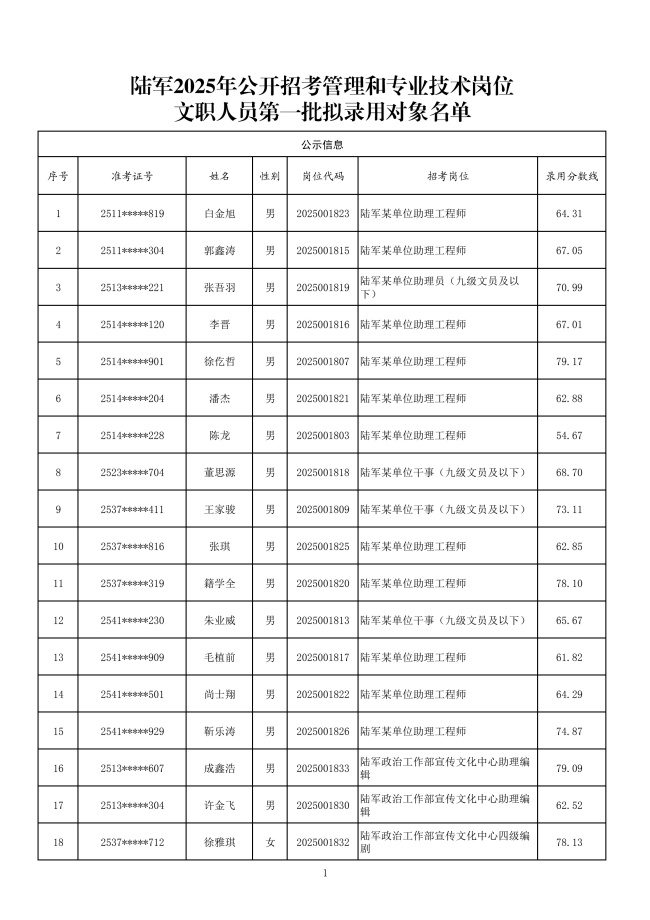 原文標(biāo)題:公示陸軍2025年公開招考管理和專業(yè)技術(shù)崗位文職人員第一批擬錄用對(duì)象名單