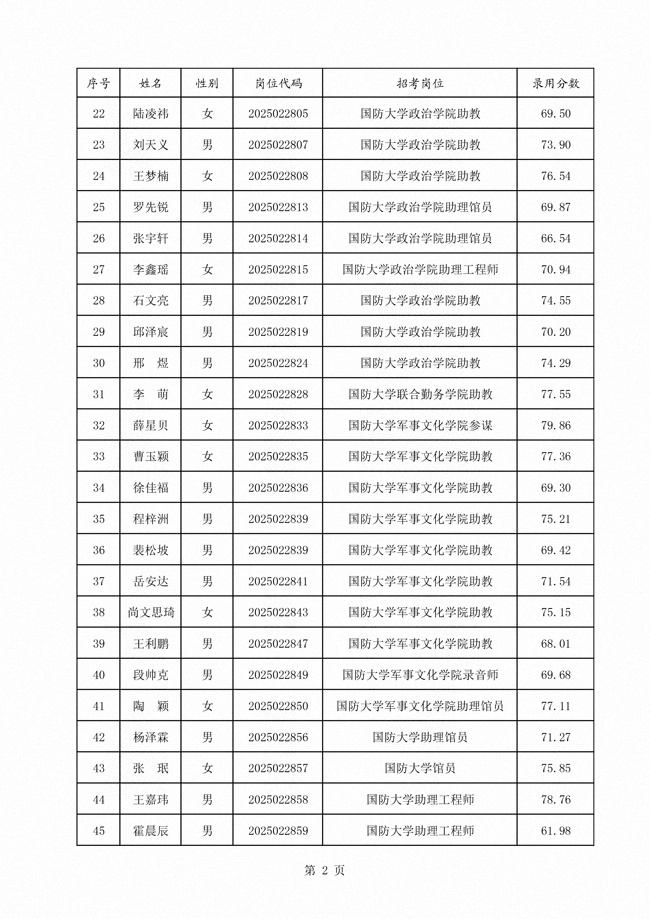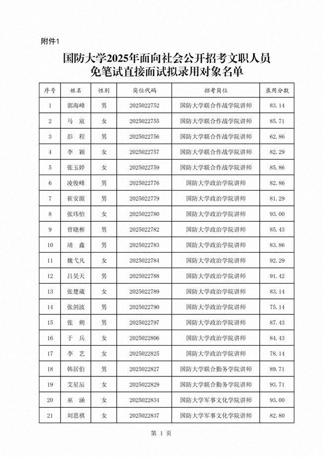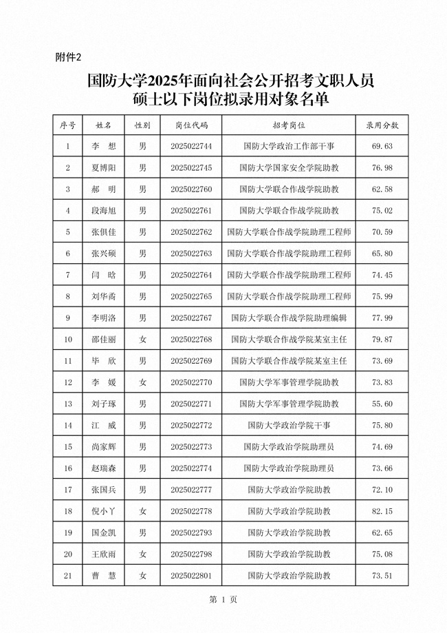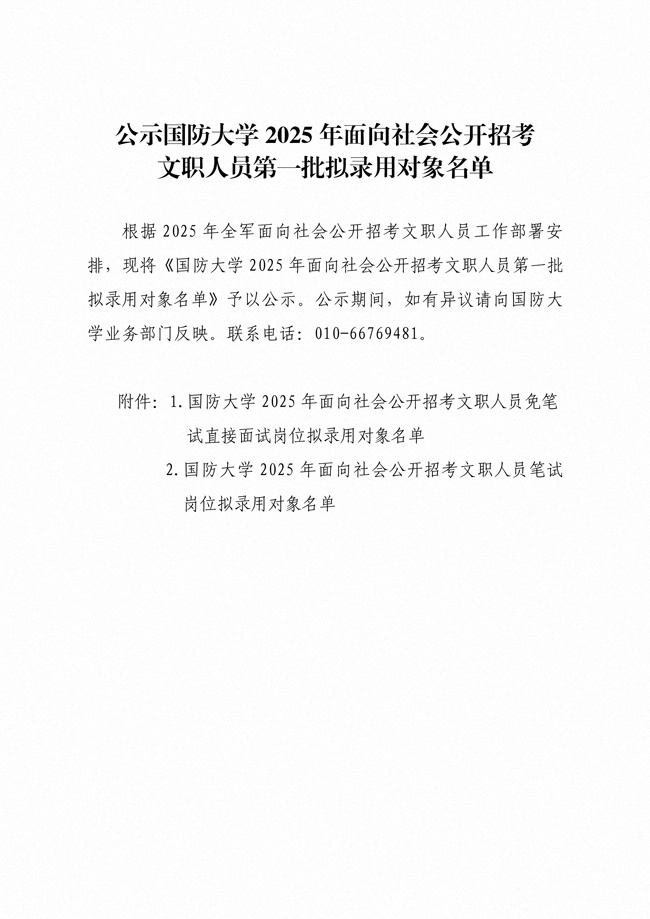 原文標(biāo)題:公示國防大學(xué)2025年面向社會(huì)公開招考文職人員第一批擬錄用對象名單