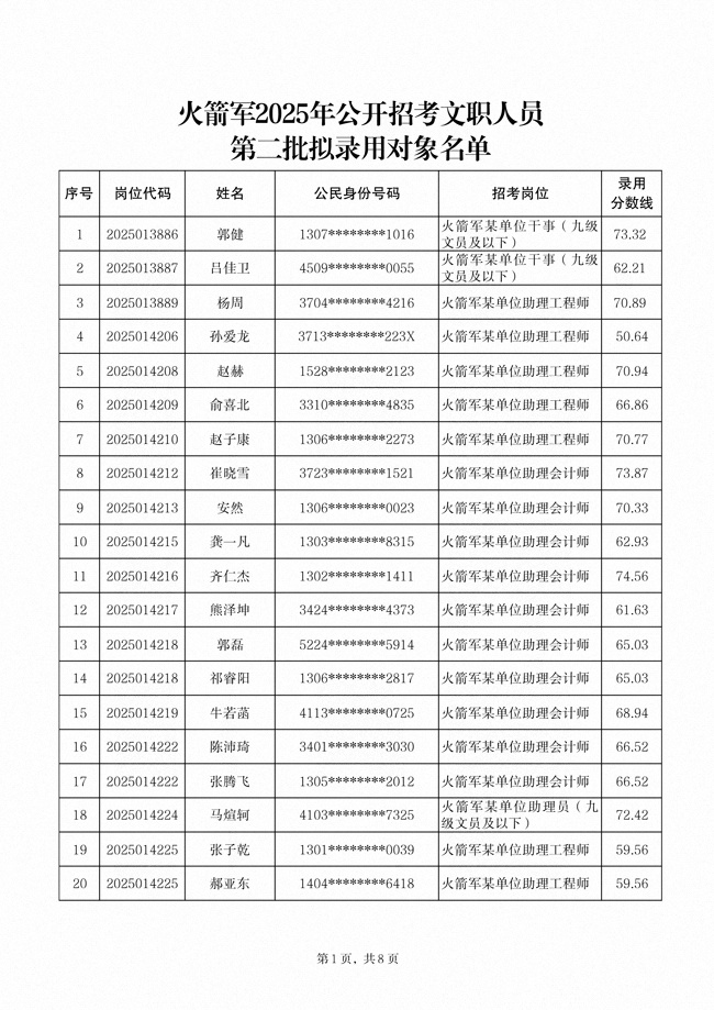 原文標(biāo)題:公示火箭軍2025年公開招考文職人員第二批擬錄用對象名單