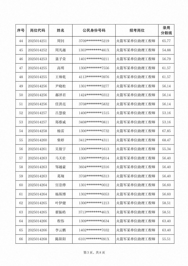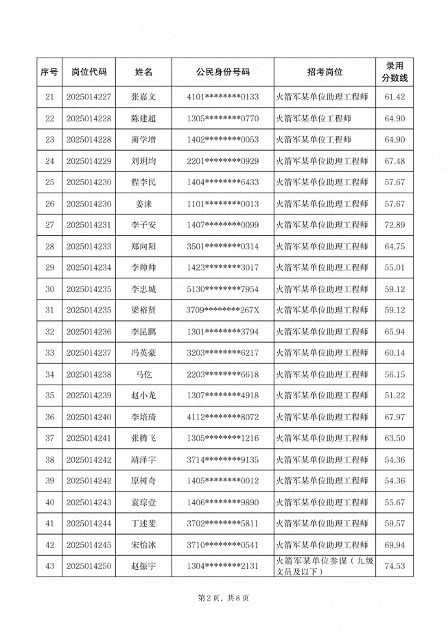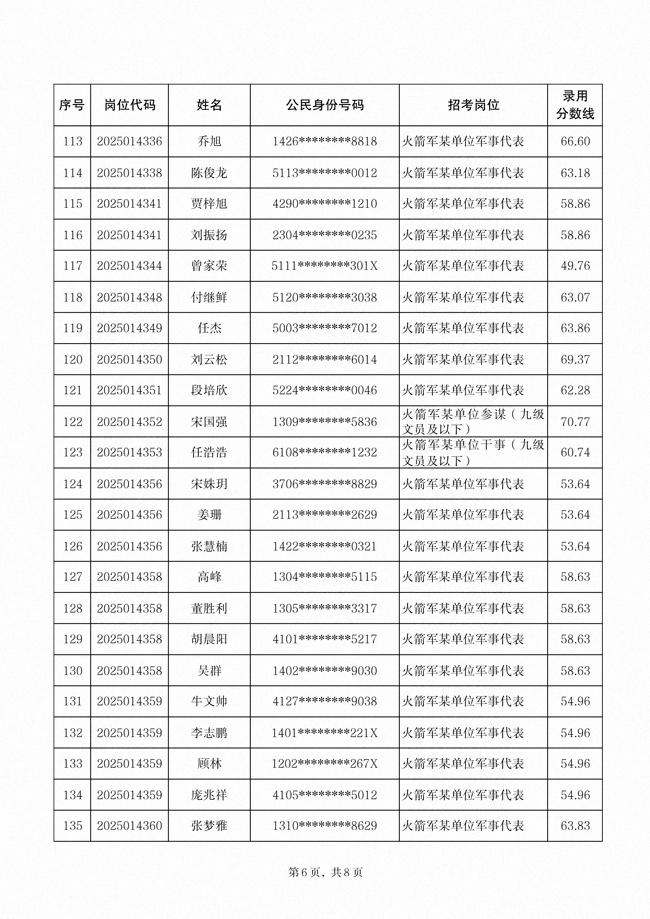 2025年武裝部文職人員擬錄用名單(含上岸分?jǐn)?shù)線) 2025-10-09