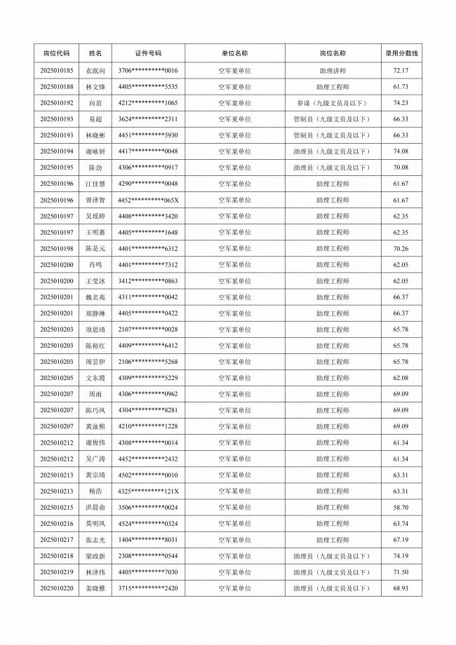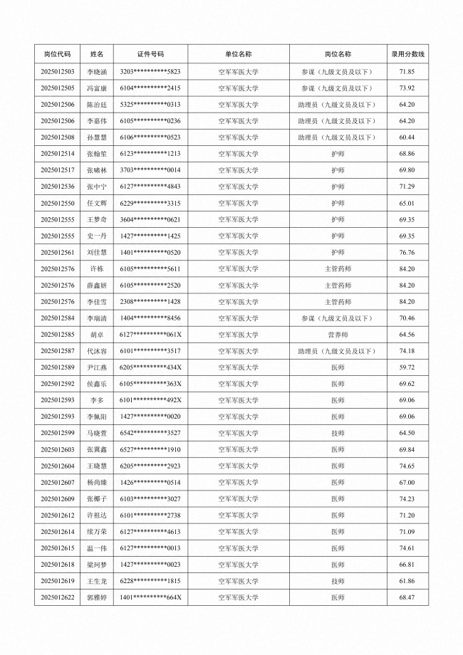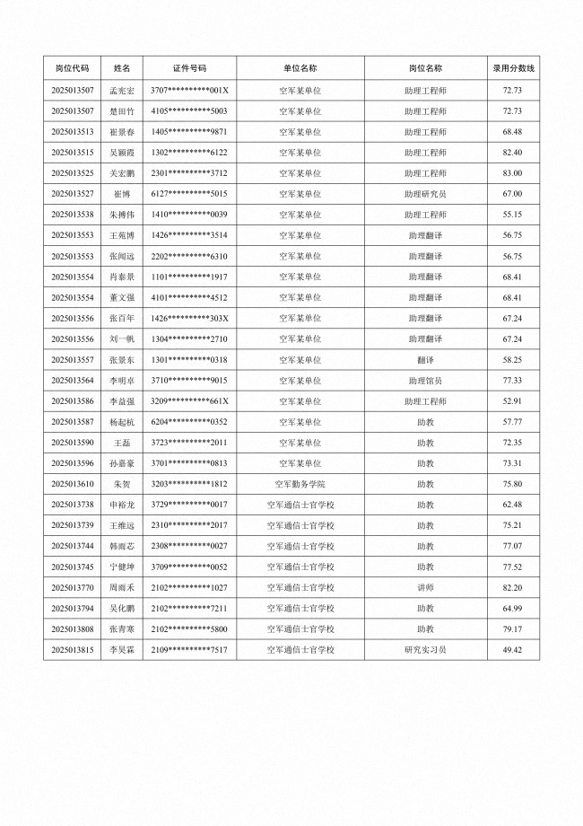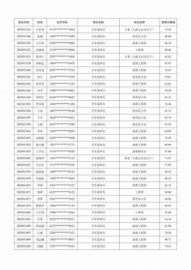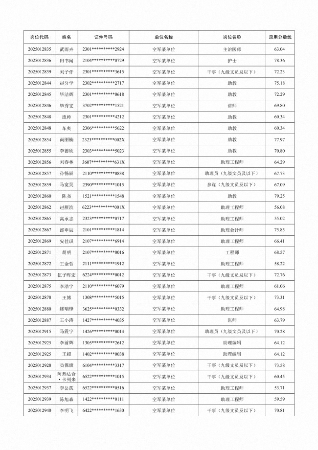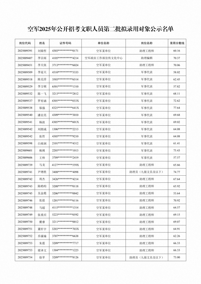 原文標(biāo)題:公示空軍2025年公開(kāi)招考文職人員第二批擬錄用對(duì)象名單