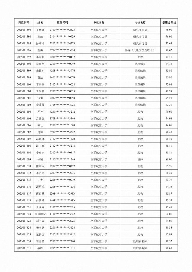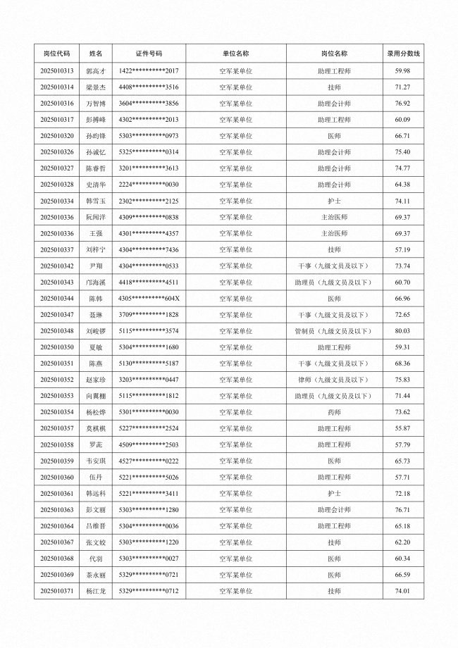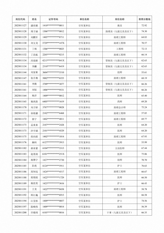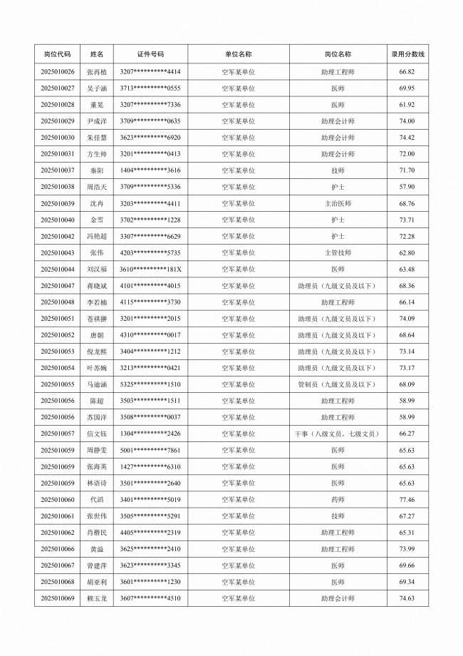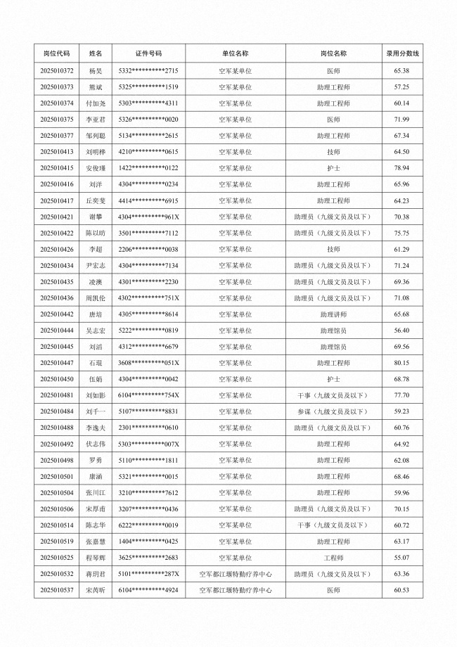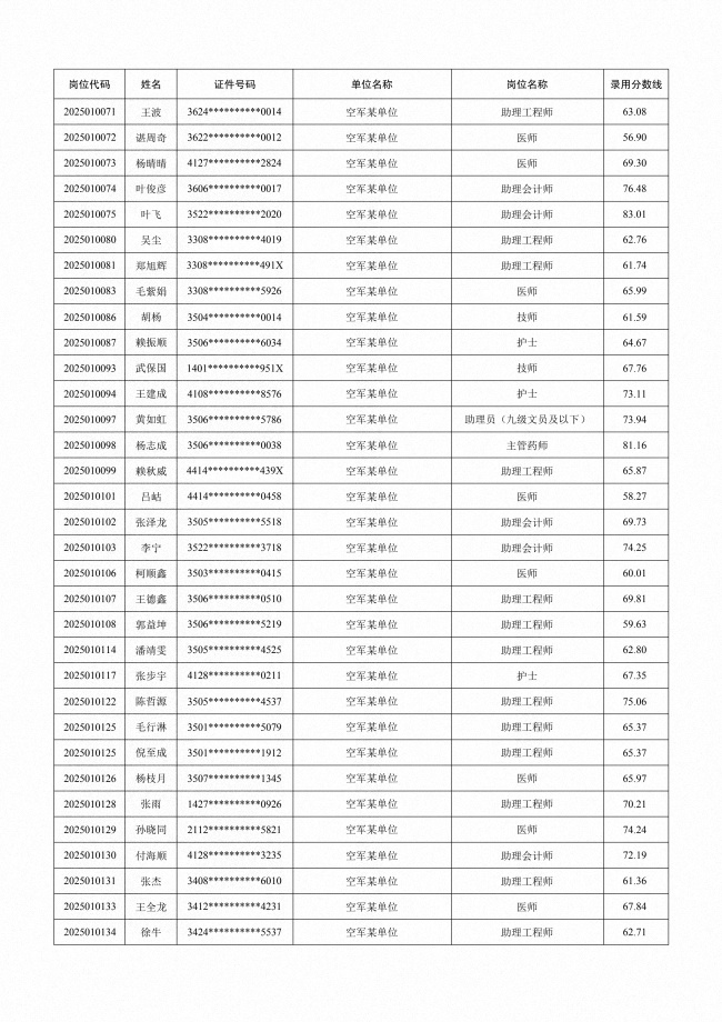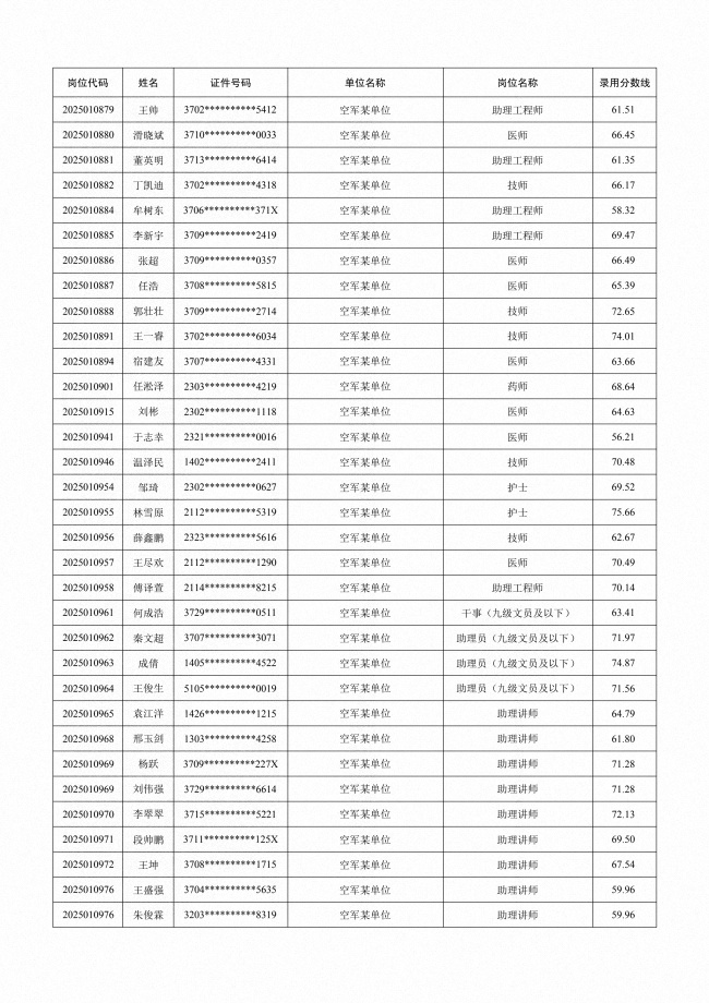 原文標(biāo)題:公示空軍2025年公開(kāi)招考文職人員第二批擬錄用對(duì)象名單