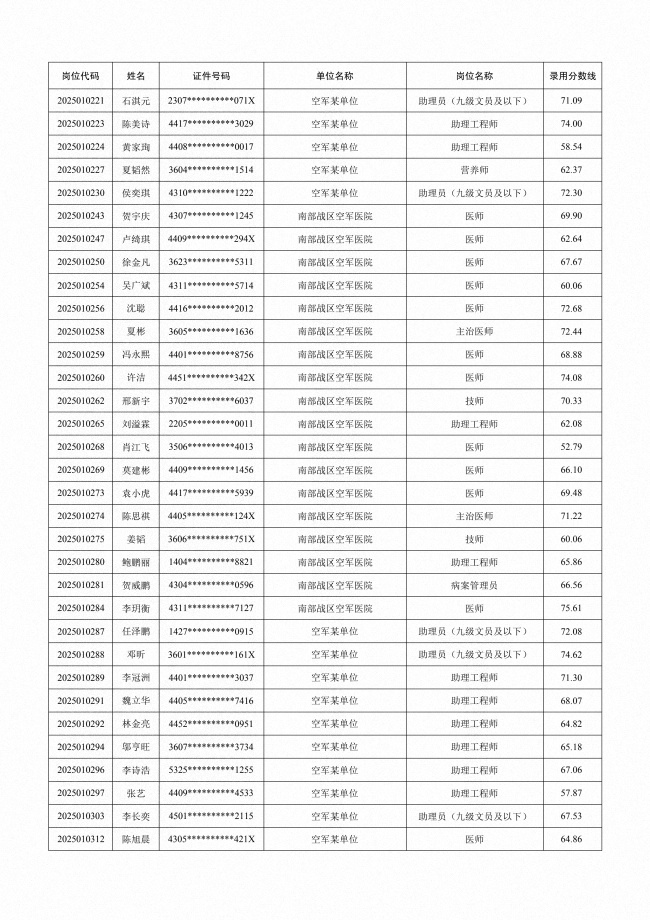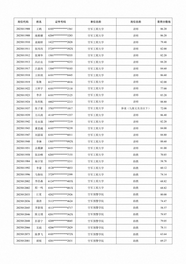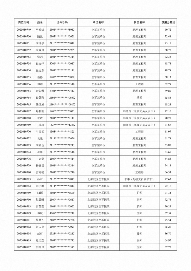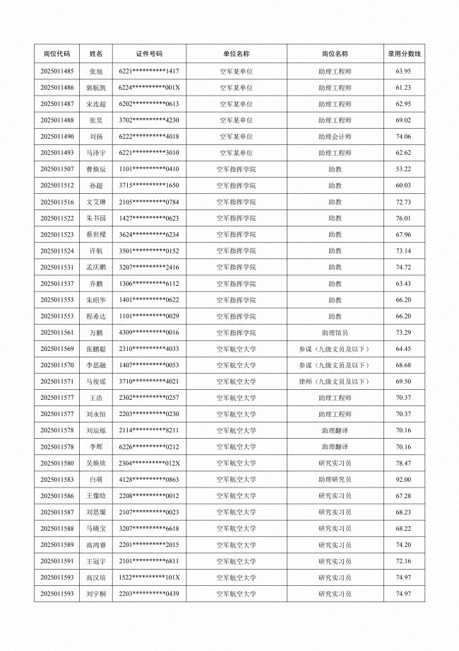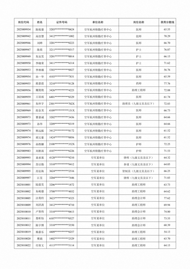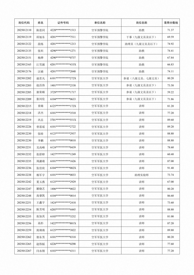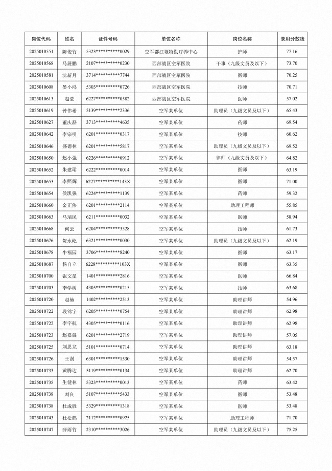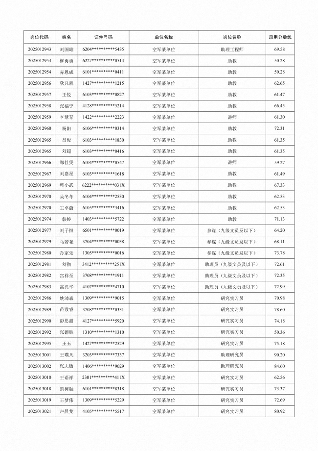 2025年武裝部文職人員擬錄用名單(含上岸分?jǐn)?shù)線) 2025-10-09