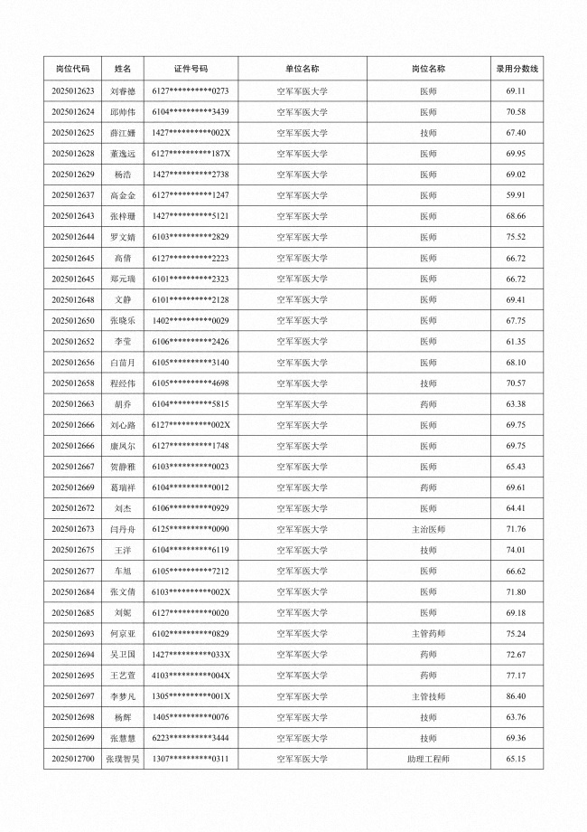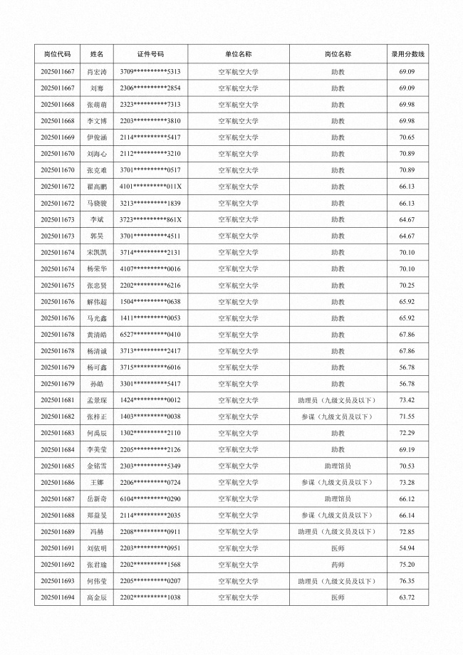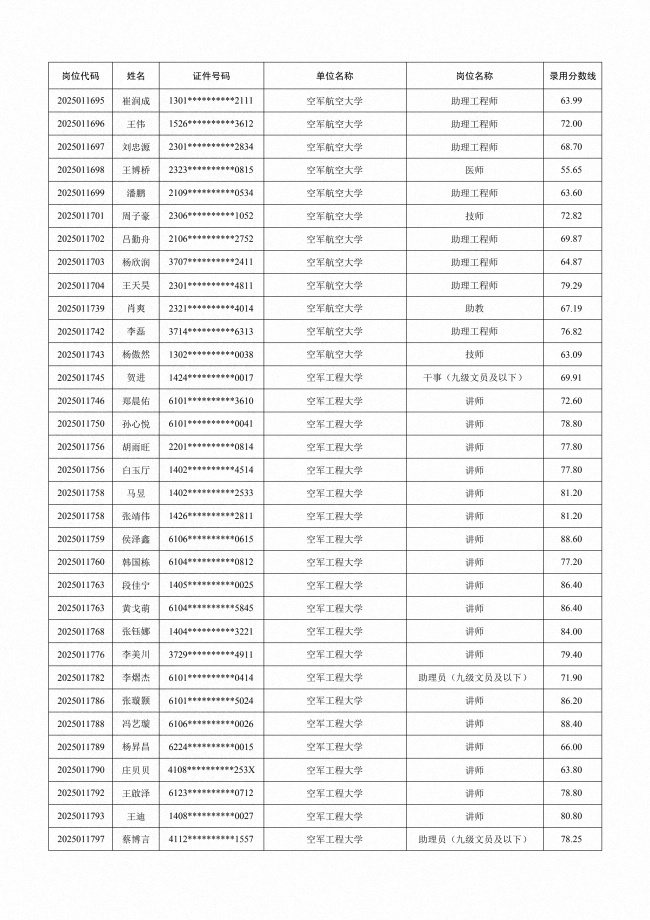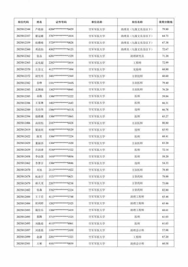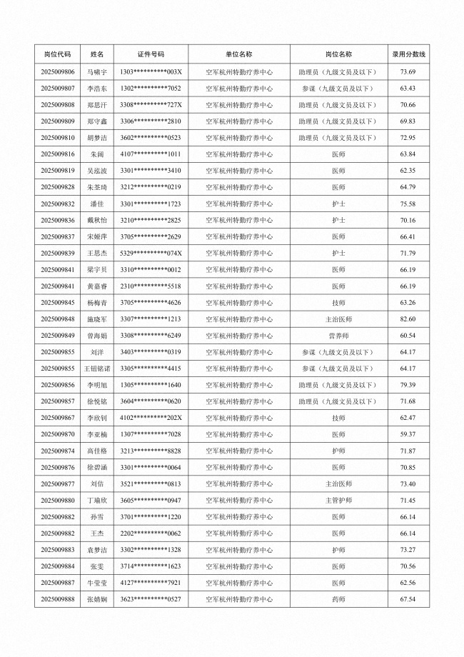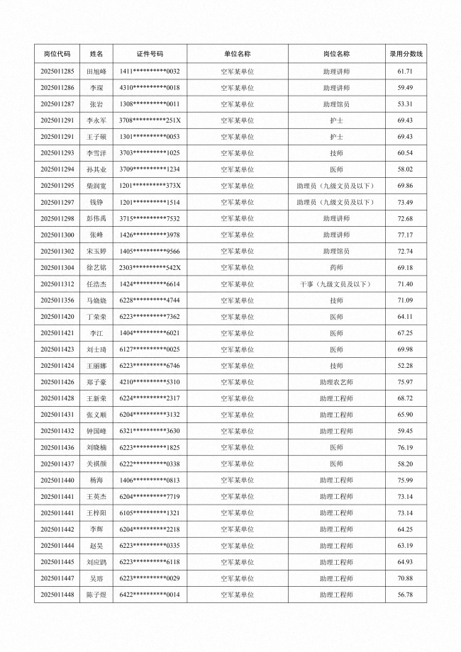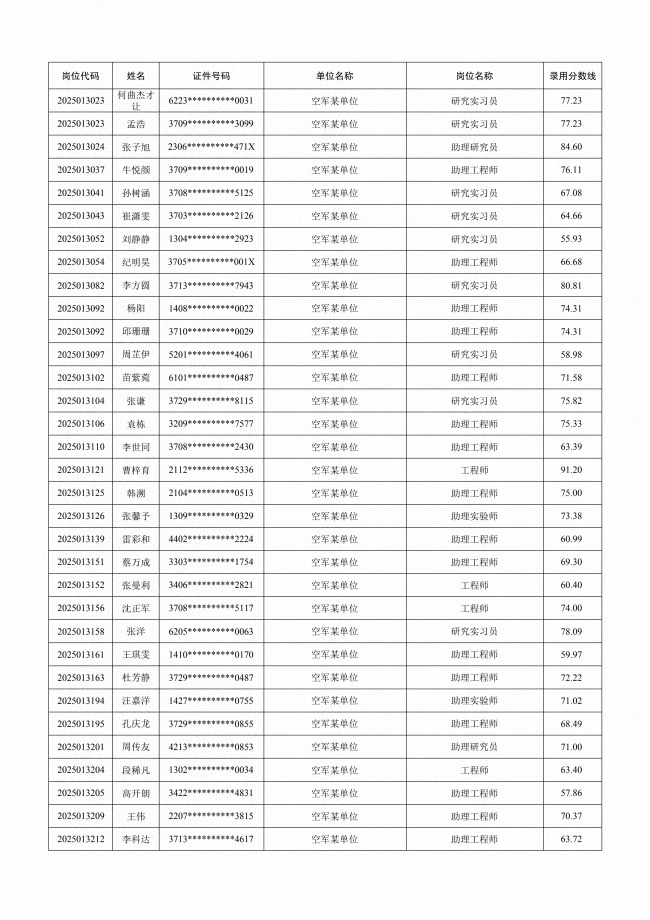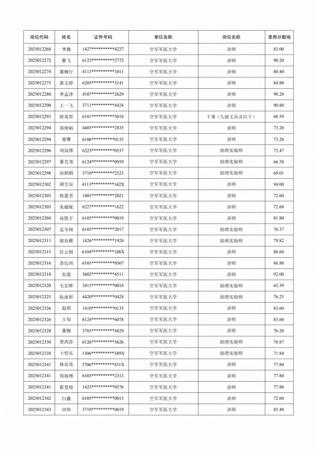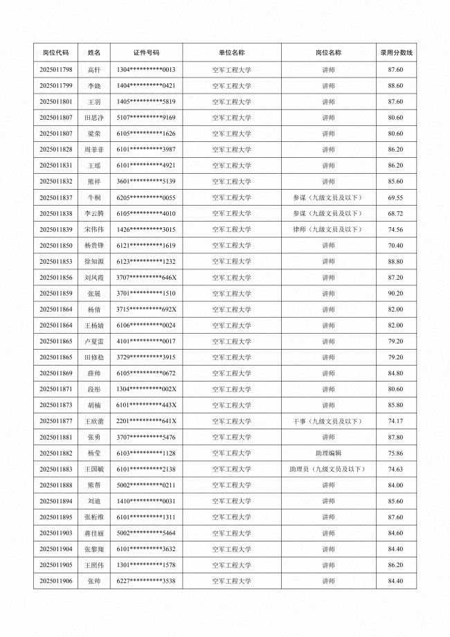 2025年武裝部文職人員擬錄用名單(含上岸分?jǐn)?shù)線) 2025-10-09