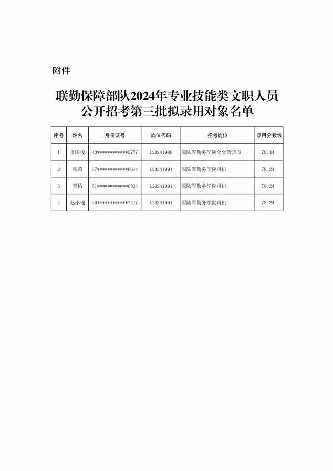 原文標(biāo)題:公示聯(lián)勤保障部隊2024年專業(yè)技能類文職人員公開招考第三批擬錄用對象名單