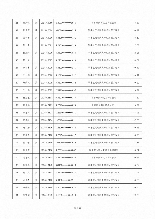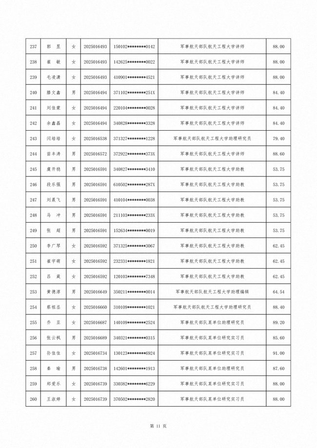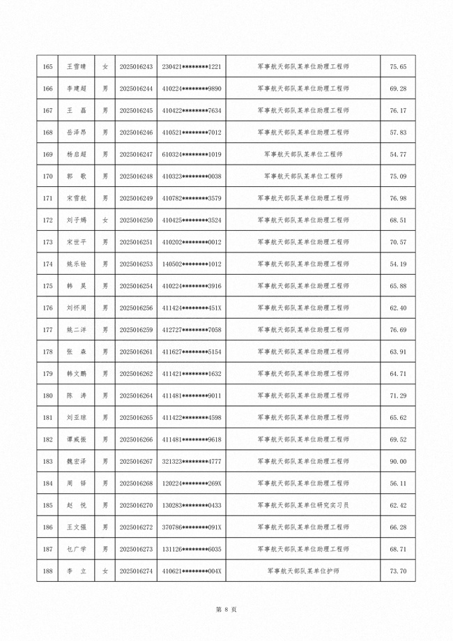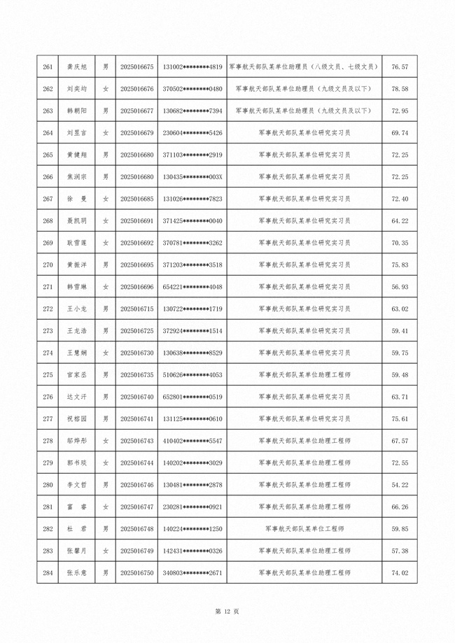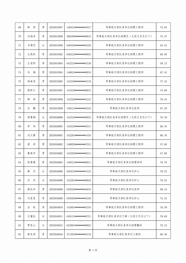 原文標(biāo)題:公示軍事航天部隊2025年文職人員公開招考第二批擬錄用對象名單
