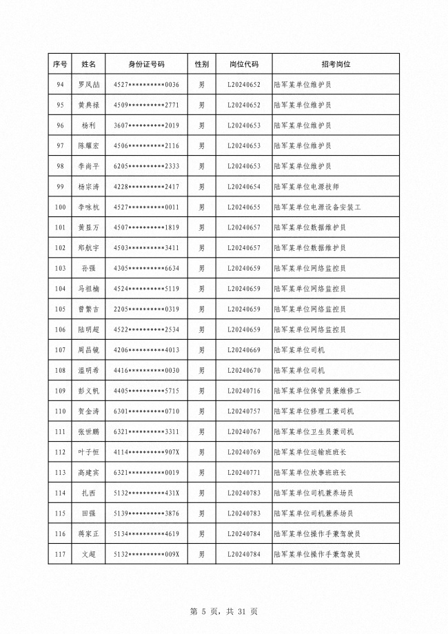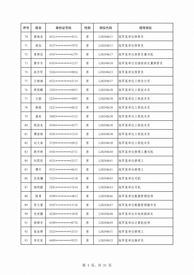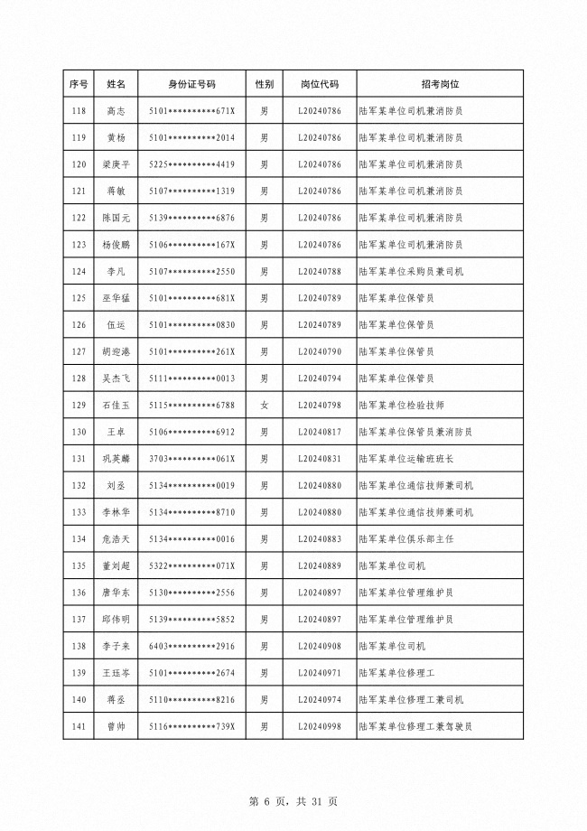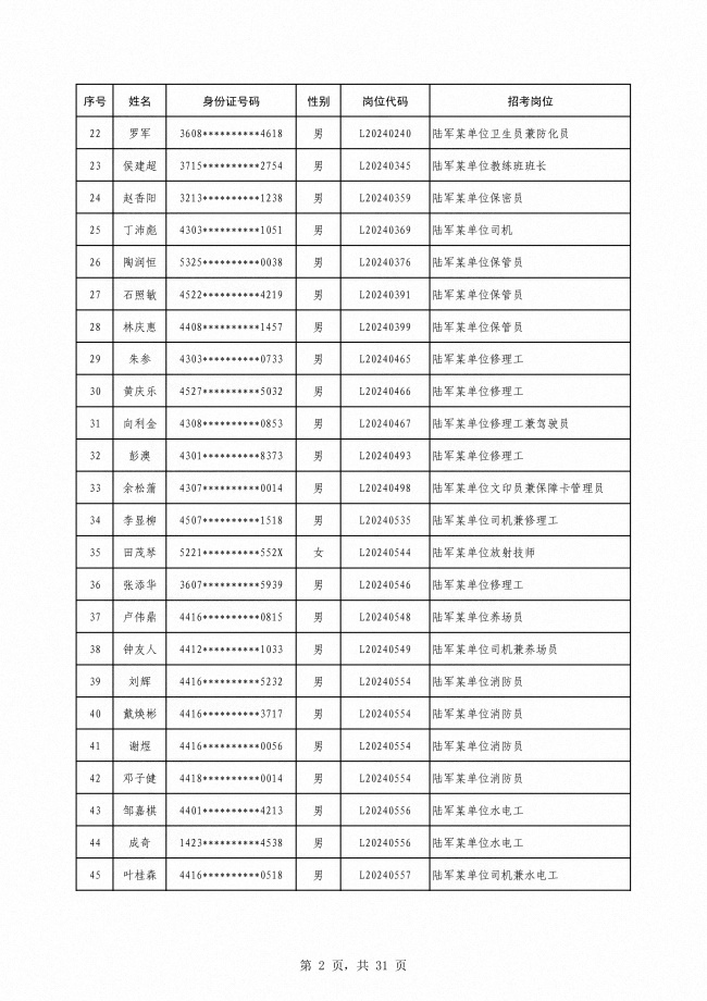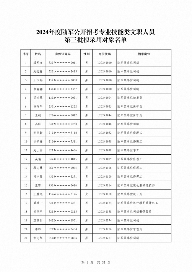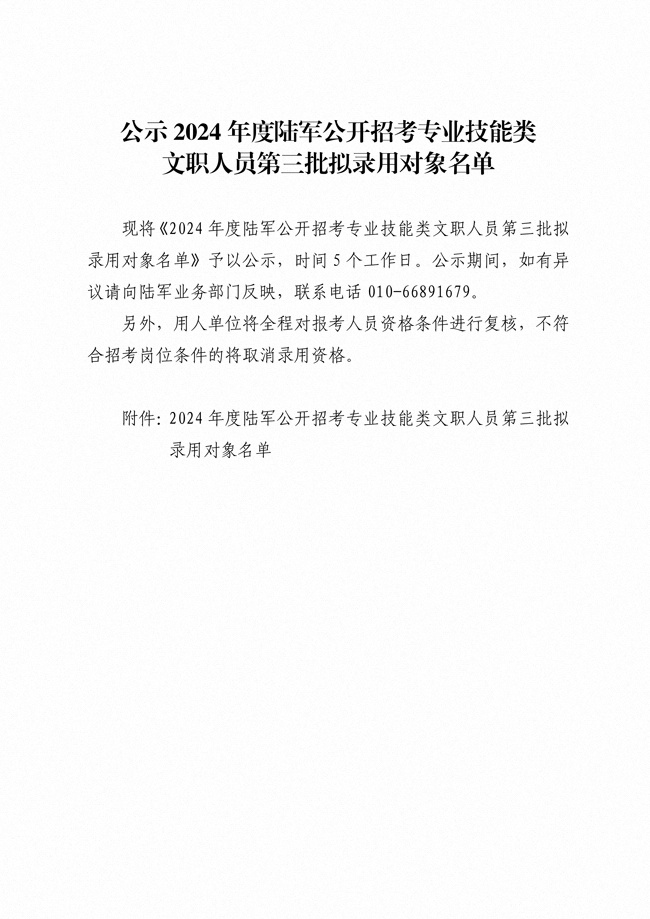 原文標(biāo)題:公示2024年度陸軍公開招考專業(yè)技能類文職人員第三批擬錄用對(duì)象名單