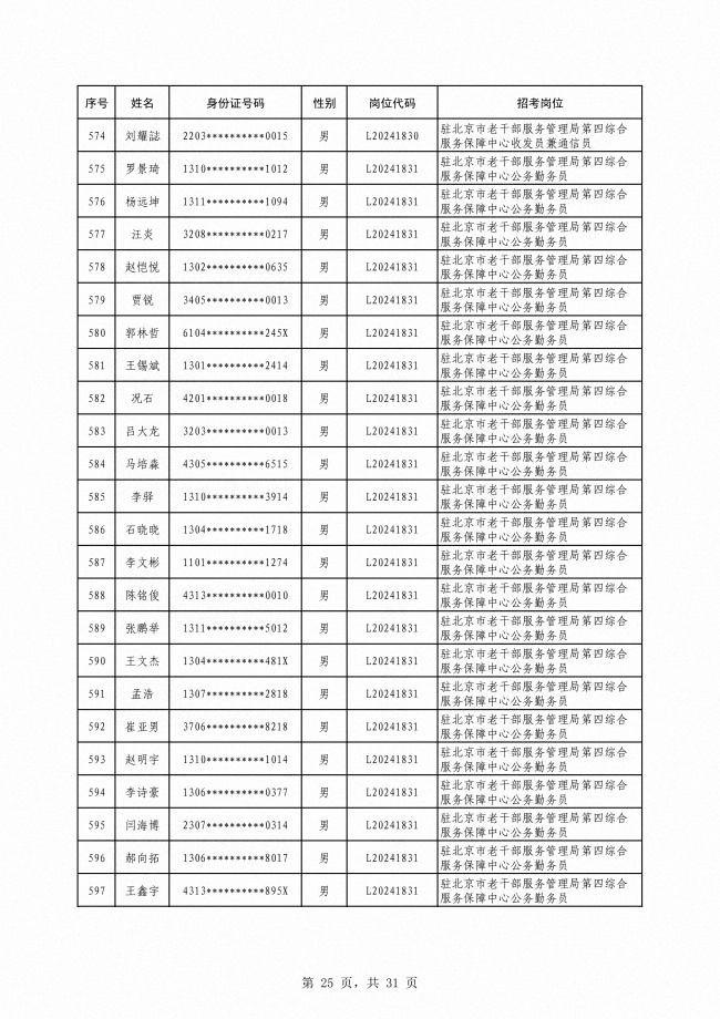 2025年武裝部文職人員擬錄用名單(含上岸分?jǐn)?shù)線) 2025-10-09