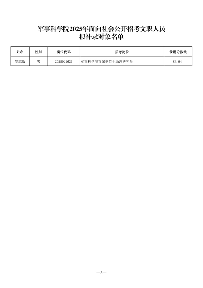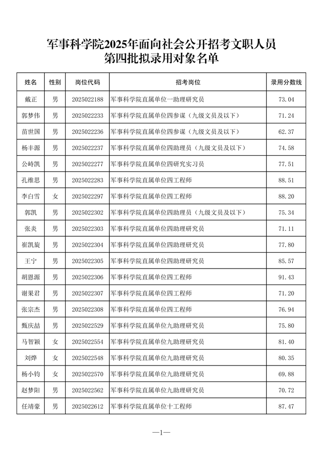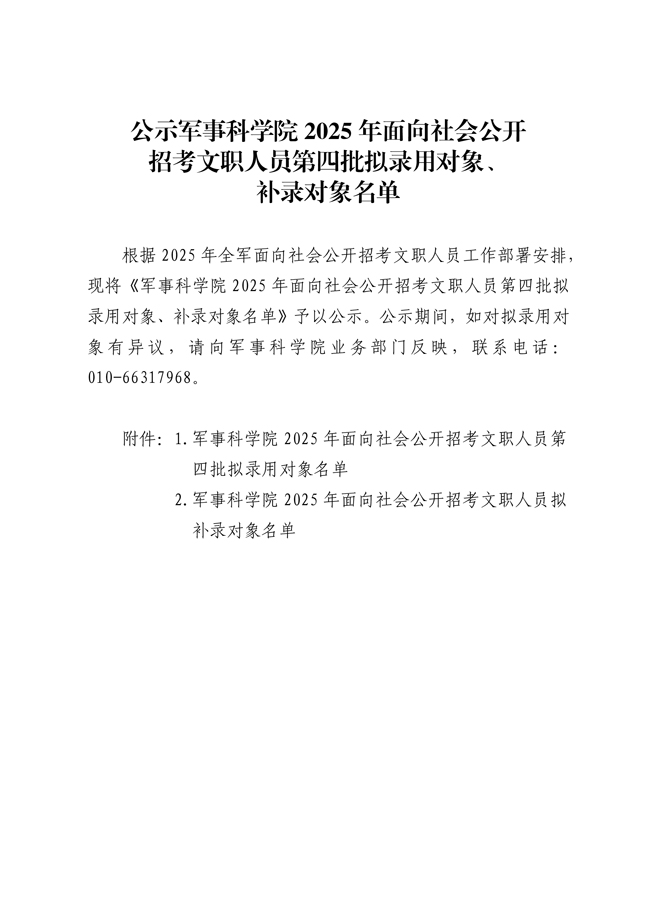 原文標(biāo)題:公示軍事科學(xué)院2025年面向社會(huì)公開(kāi)招考文職人員第四批擬錄用對(duì)象、補(bǔ)錄對(duì)象名單