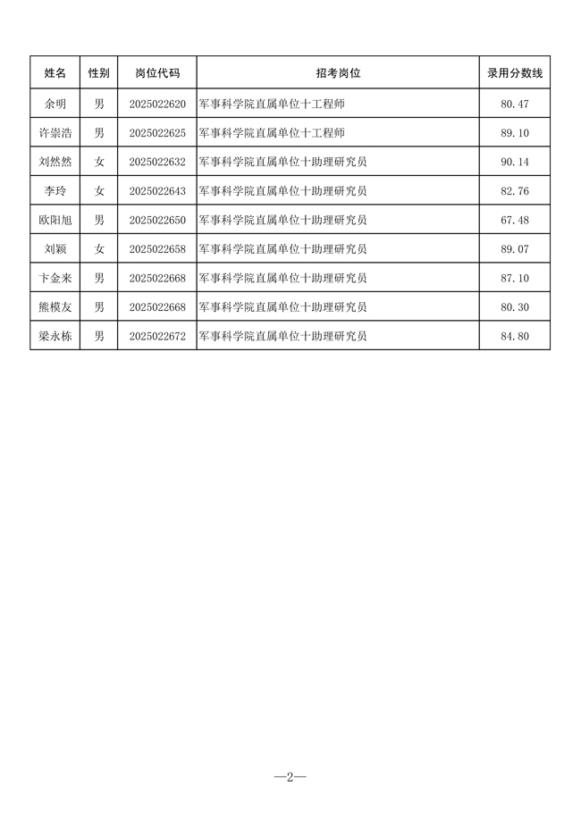 2025年武裝部文職人員擬錄用名單(含上岸分?jǐn)?shù)線) 2025-10-09
