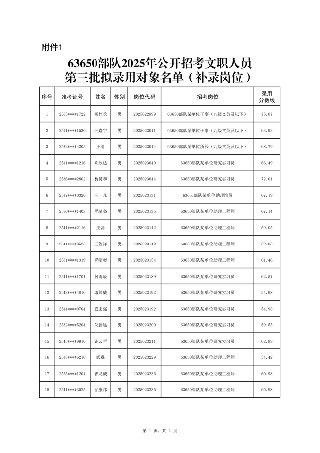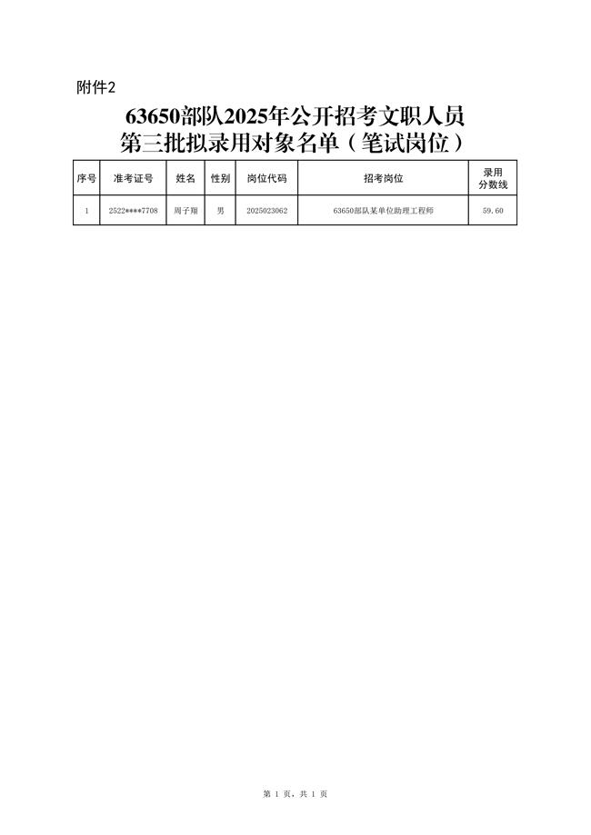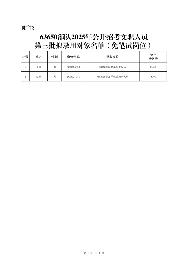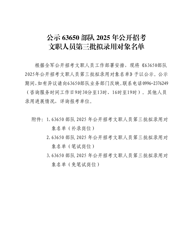 原文標(biāo)題:公示63650部隊(duì)2025年公開招考文職人員第三批擬錄用對(duì)象名單