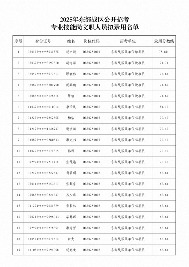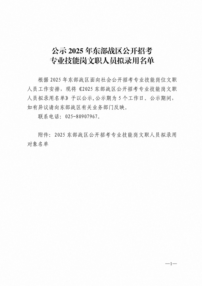 原文標(biāo)題:公示2025年東部戰(zhàn)區(qū)公開招考專業(yè)技能崗文職人員擬錄用名單