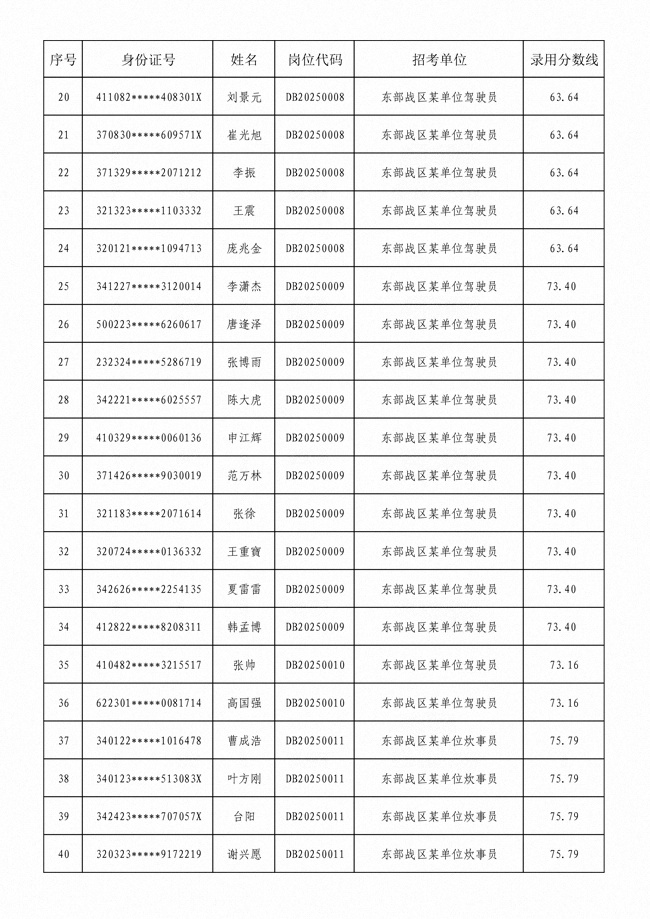 2025年武裝部文職人員擬錄用名單(含上岸分?jǐn)?shù)線) 2025-10-09